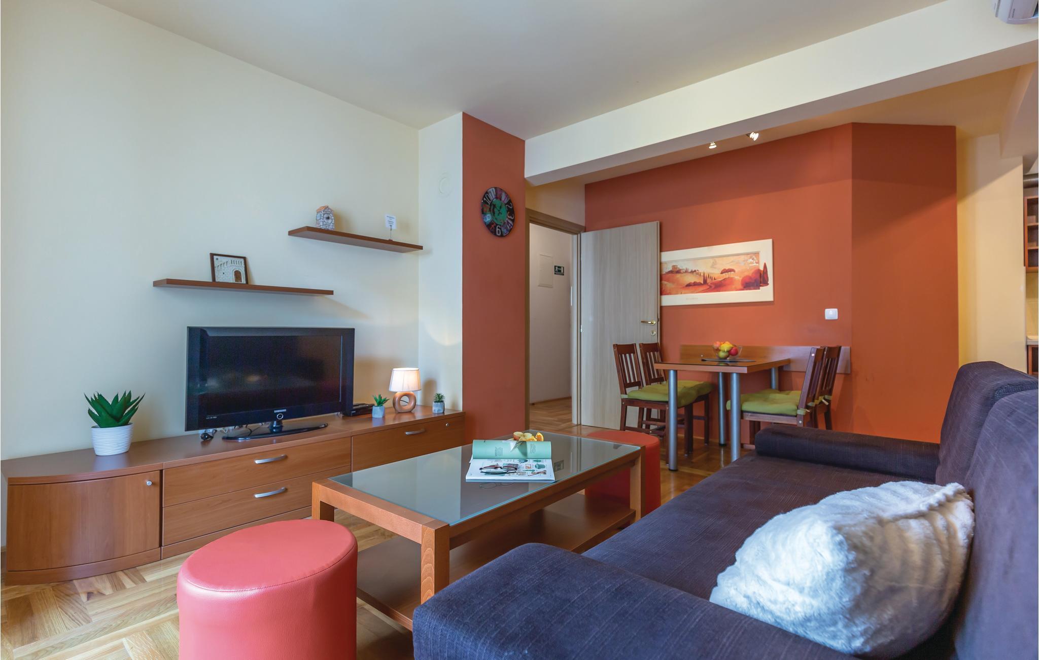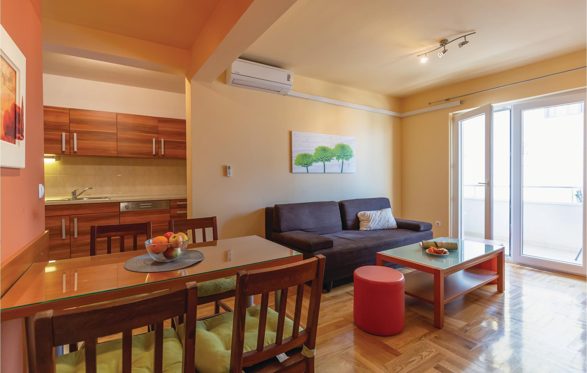 Die wunderschöne Stadt Makarska liegt in mitten der Makarska Riviera, die mit ihrer natürlichen Schönheit und angenehmen Klima ein beliebtes Reiseziel ist. Verbringen Sie einen unvergesslichen Urlaub in der unverwechselbaren Küstenstadt und wohnen dabei in dieser gemütlich eingerichteten Ferienwohnung, die sich im vierten Stock eines Wohnhauses in Zentrumsnähe befindet. Hier begrüßen Sie die Morgensonne beim Frühstück auf der Terrasse und verwöhnen sich am Nachmittag am Stand mit viel Badespaß, den Sie zu Fuß erreichen können. Die Küste bietet eine lange Strandpromenade, entlang der sich viele Freizeitmöglichkeiten, Bars, Restaurants und Souvenirstände anreihen. Hier haben Sie auch zahlreiche Möglichkeiten gut essen zu gehen, aufregendes Nachtleben oder einfach nur entlang der Promenade zu spazieren. Naturliebhabern wird der Ausflug im Naturpark Biokovo, mit herausfordernden Wandertouren und fantastischen Panoramablick auf sicherlich in schöner Erinnerung bleiben. Lassen Sie sich auch das reiche Gastronomieangebot nicht entgehen und probieren Sie eine der vielen Meeresspezialitäten bei einem Tropfen guten Weins.