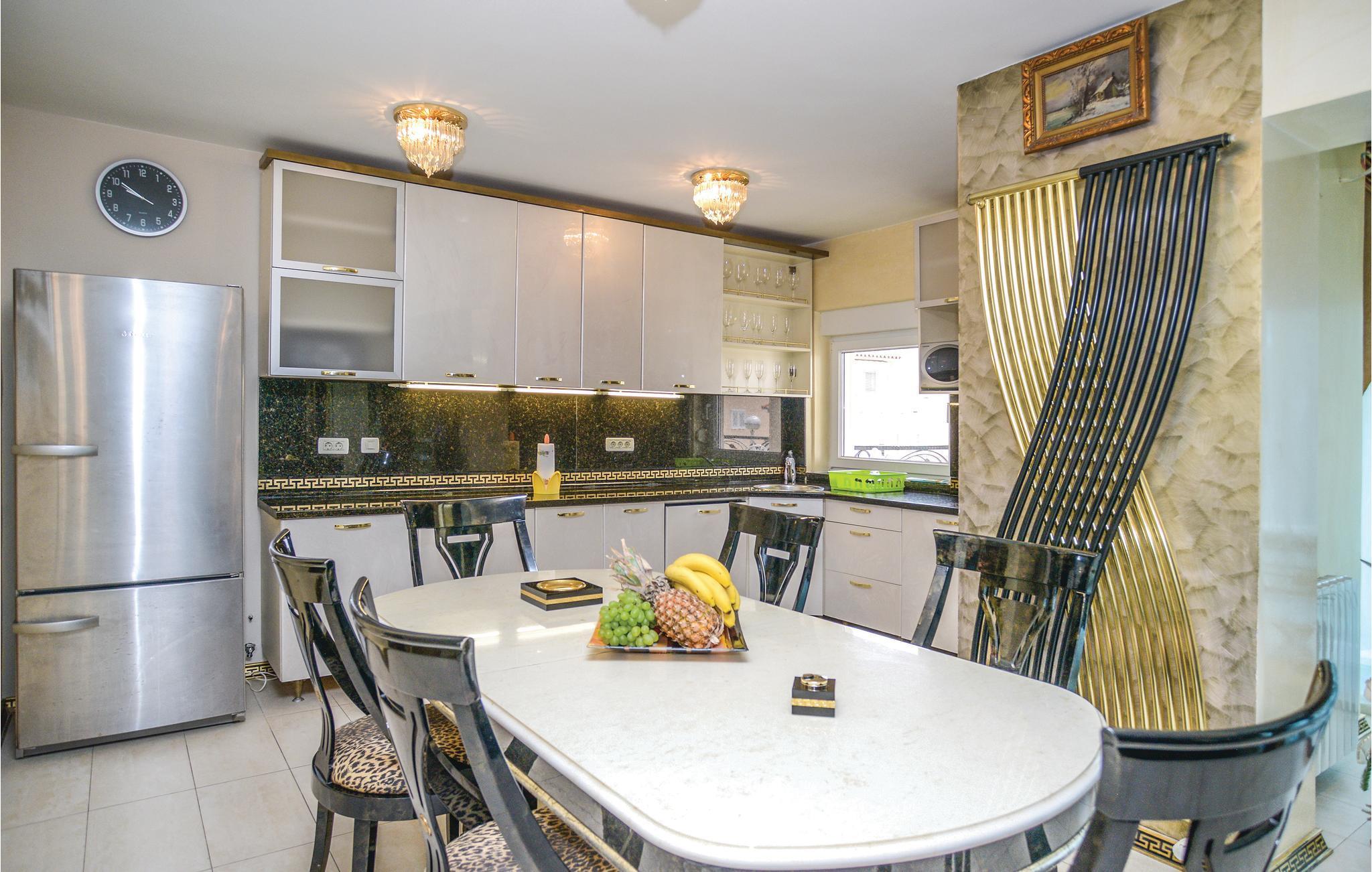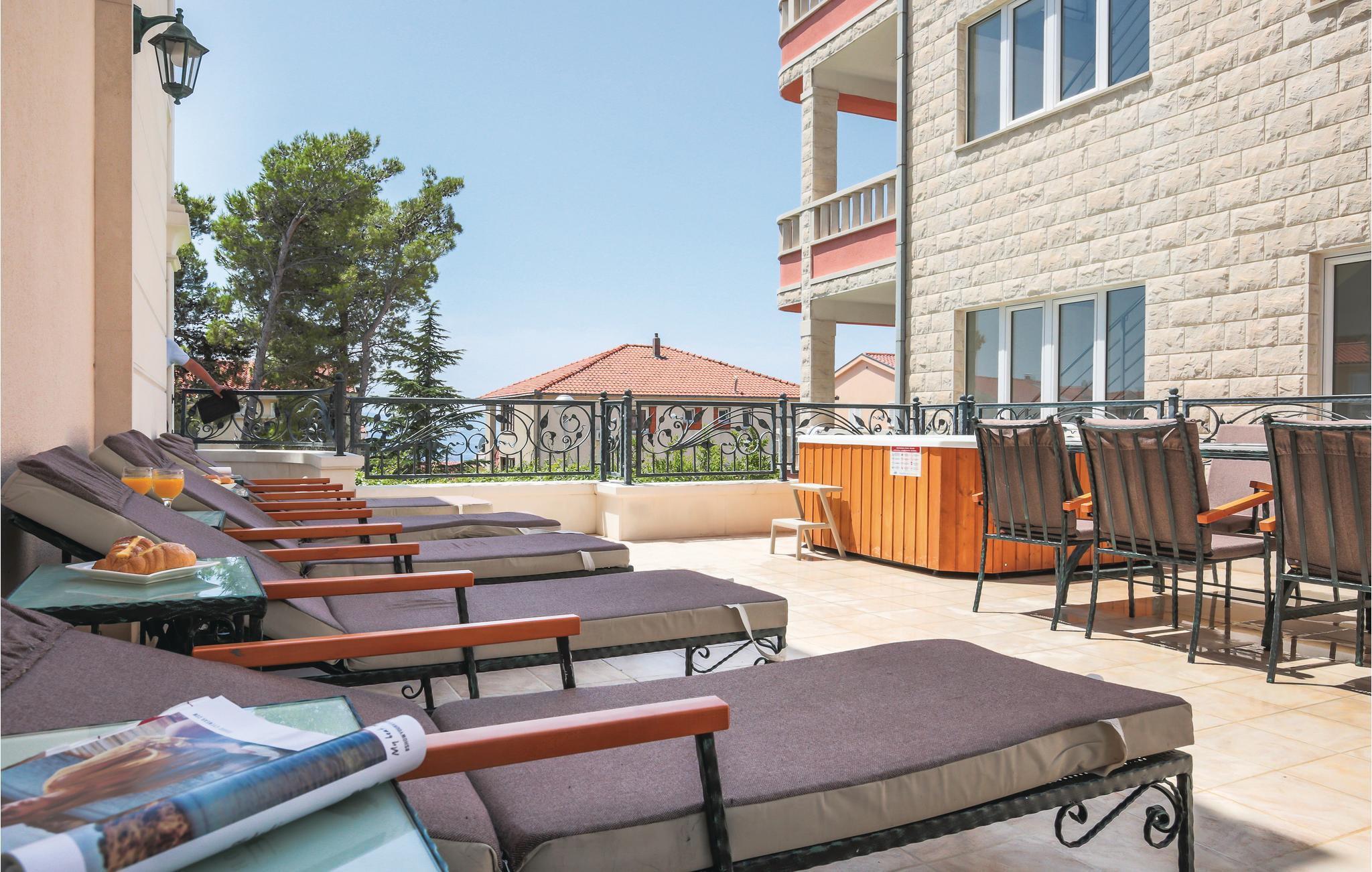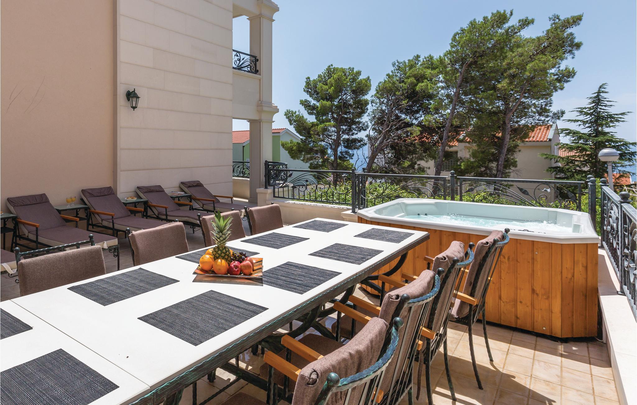 Diese außergewöhnliche Villa befindet sich über der Stadt Makarska und wird Sie begeistern. Erleben Sie die schöne Atmosphäre im Altstadtkern, nicht weit vom Ferienobjekt entfernt. Genießen Sie im Erdgeschoß den Wellnessbereich mit herrlichem,beheiztem Innenpool inklusiver Gegenstromanlage, finnischer Sauna und Dampfbad, Ruhezone mit Minibar und hochwertig ausgestattetem Fitnessraum, PS4 im Schlafzimmer 3, Spielplatz. Abwechslung vom Innenpool finden Sie am Außenpool. Um Ihre positiven Eindrücke vollkommen zu machen, verbringen Sie Ihre Zeit auf der überdachten Terrasse mit Grill, und erleben Sie gesellige Momente mit köstlichen Grillspezialitäten. Die wertvollen und sehr besonderen Designermöbel machen dieses Haus einzigartig. Es verfügt über zwei komplett ausgestattete Küchen, zwei Wohnzimmer, ein Arbeits- und Lesezimmer, neun Schlafzimmer und acht Badezimmer sowie ein zusätzliches WC, was auch den hohen Komfort dieser Ferienunterkunft widerspiegelt. Genießen Sie den herrlichen Ausblick von einer der Terrassen am Haus aus. Verbringen Sie Ihre Zeit an den herrlichen Kiesstränden mit vielen Freizeitaktivitäten. Kosten Sie die traditionellen Spezialitäten in einem der renommierten Restaurants, und unternehmen Sie Tagesausflüge auf die Inseln Brac und Hvar, was Ihren Aufenthalt unvergesslich machen wird.