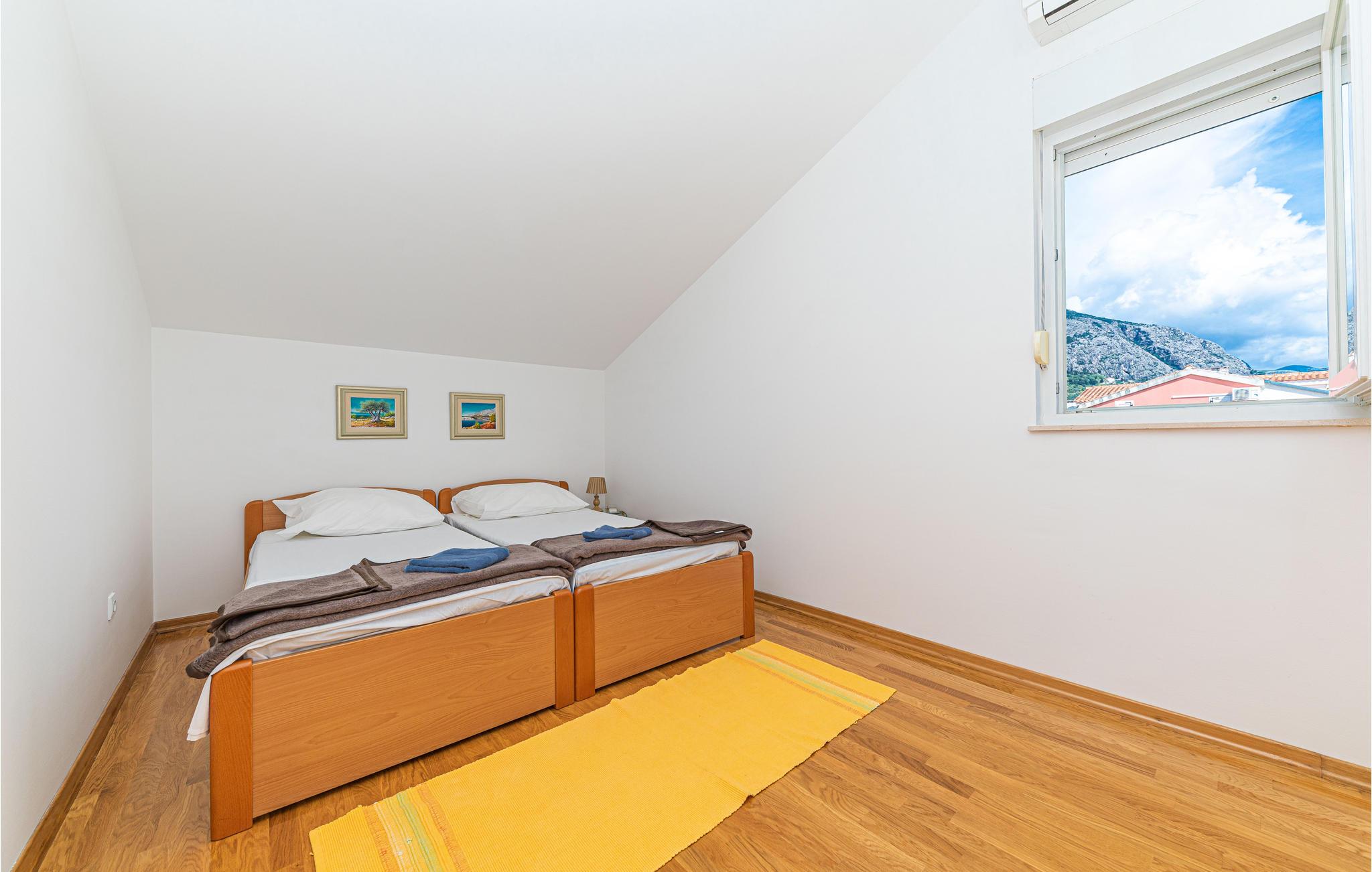 Mit einem fantastischen Ausblick auf die Berge des Biokovo-Gebirges heißt Sie diese helle und praktische Ferienwohnung mit Meerblick willkommen.