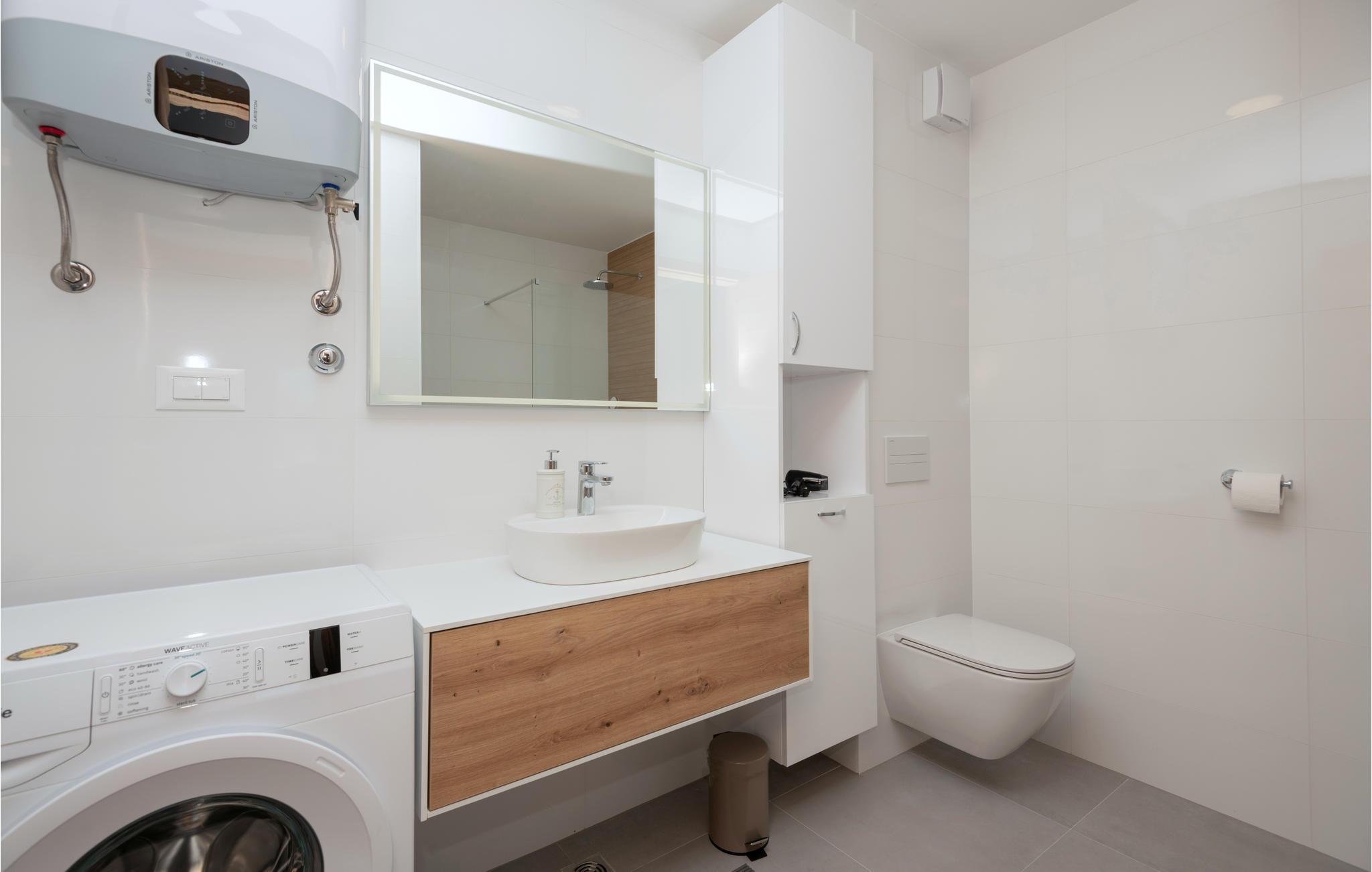 Genießen Sie mit Ihrem Lieblingsmenschen oder Ihrer kleinen Familie nach Makarska und verbringen einen erholsamen Urlaub in dieser komfortablen Wohnung in einem Apartmenthaus. Auf kompakten Raum können Sie dies moderne Einrichtung auf Holz und schlichten Farben genießen, zusammen spielen, kochen oder am Abend einen Film schauen. Am Morgen können Sie ein ausgiebiges Frühstück auf dem Balkon genießen, von dem Sie einen schönen Blick auf das Meer haben.