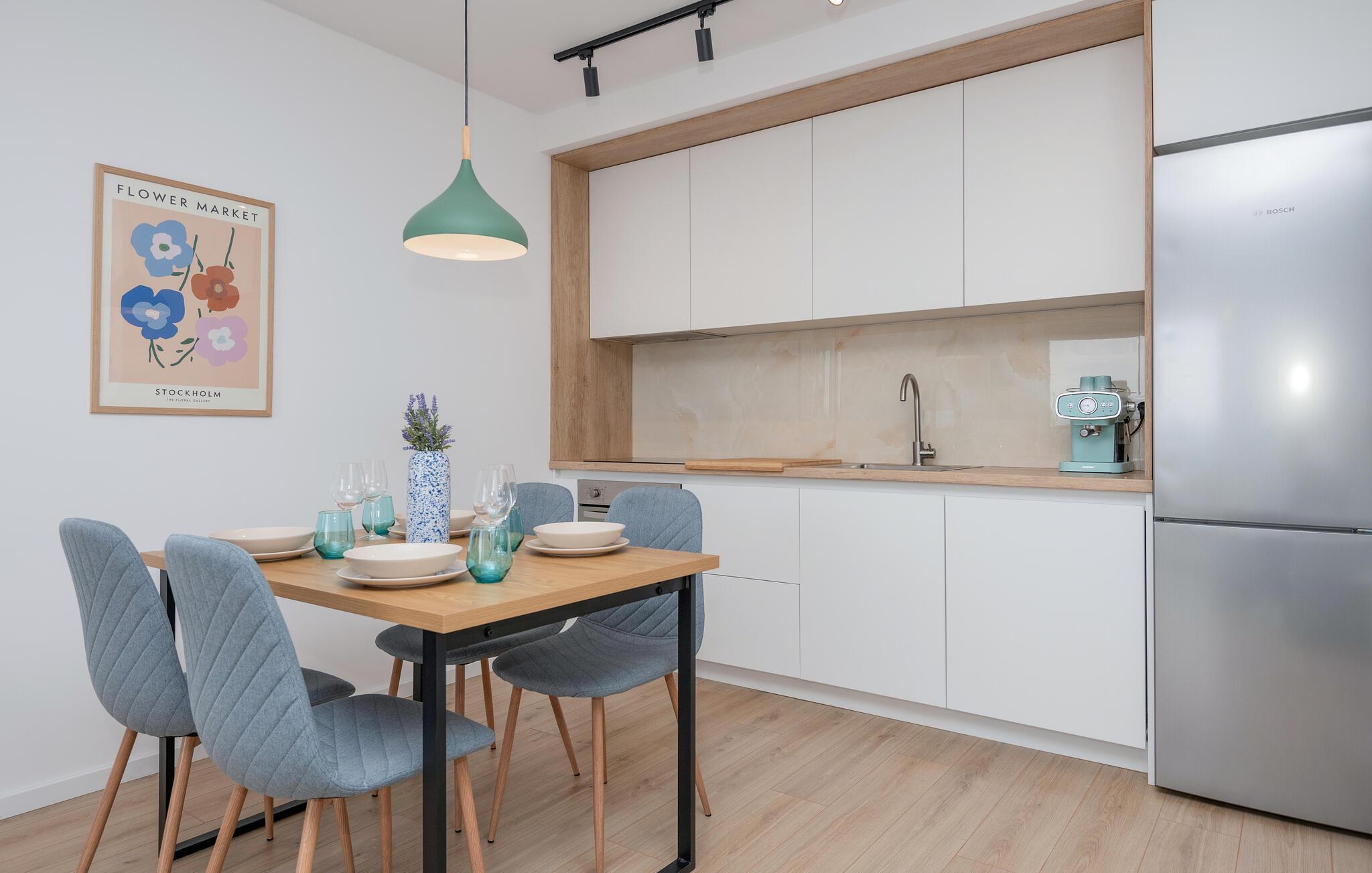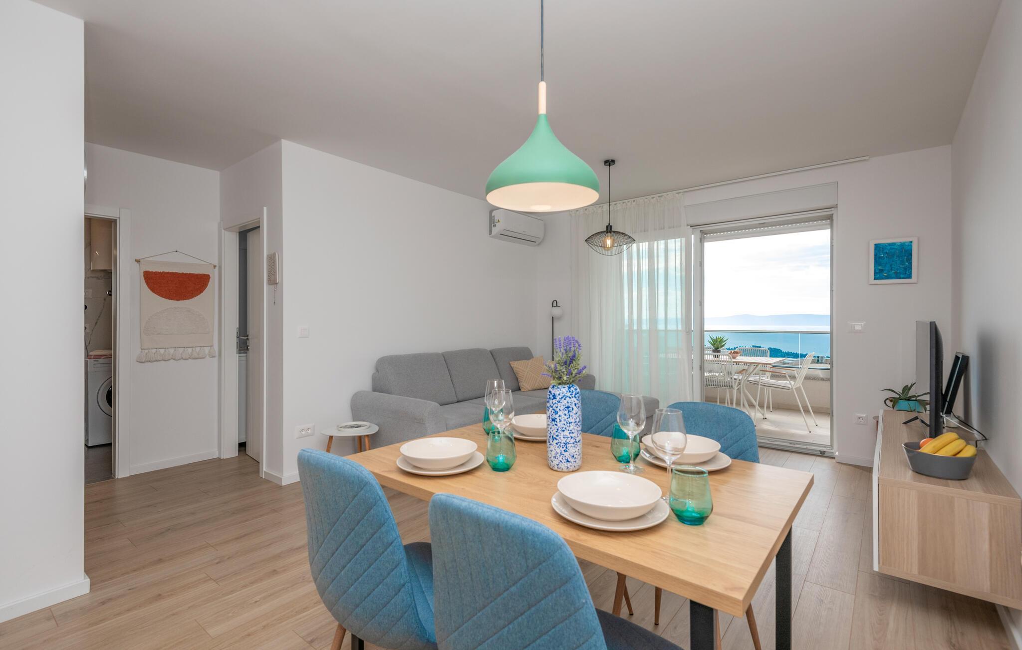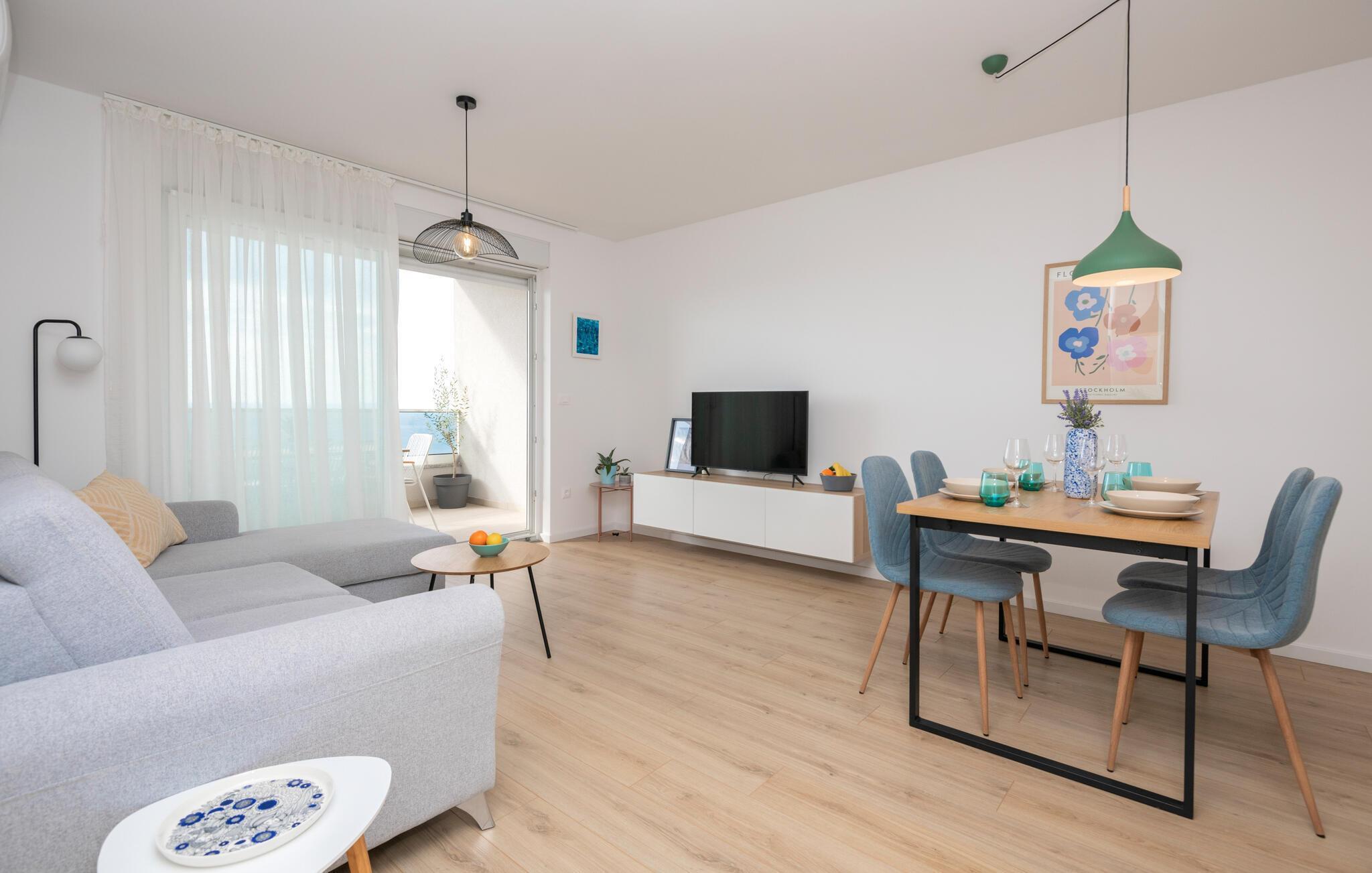 Entfliehen Sie dem Alltag in dieser attraktiven Ferienwohnung, die durch eleganten Komfort besticht. Vom ersten Sonnenstrahl, der durch die Fenster streift, bis zum Abendlicht verleben Sie hier wohltuende Urlaubstage. Erwachen Sie in dem behaglichen Schlafzimmer, das mit einem schönen Bett und einer beruhigenden Farbpalette für eine friedliche Nachtruhe sorgt. Diese Ferienwohnung verspricht Ruhe und Erholung. Beginnen Sie Ihren Morgen mit einer erfrischenden Dusche in dem elegant gestalteten Bad und bereiten Sie sich auf einen erlebnisreichen Tag vor. Genießen Sie Ihre selbst zubereiteten Mahlzeiten am großen Esstisch oder verweilen Sie bei einem Kaffee auf dem sonnigen Balkon, der einen malerischen Blick auf die Umgebung und das angrenzende Meer bietet. Auf der weichen Couch, die zum Entspannen einlädt, können Sie in einem Buch schmökern oder sich einen Film ansehen.
