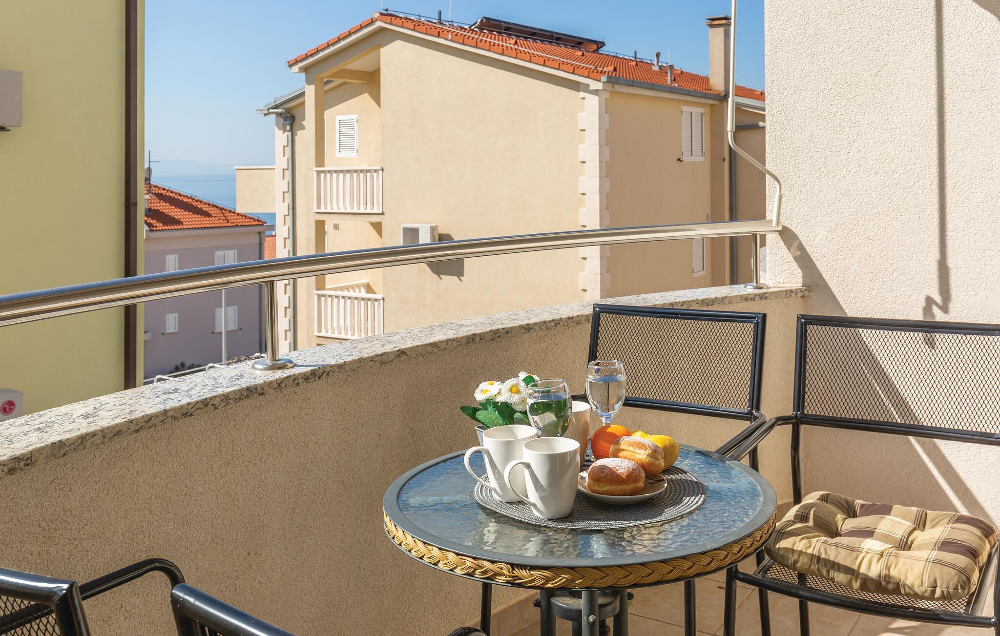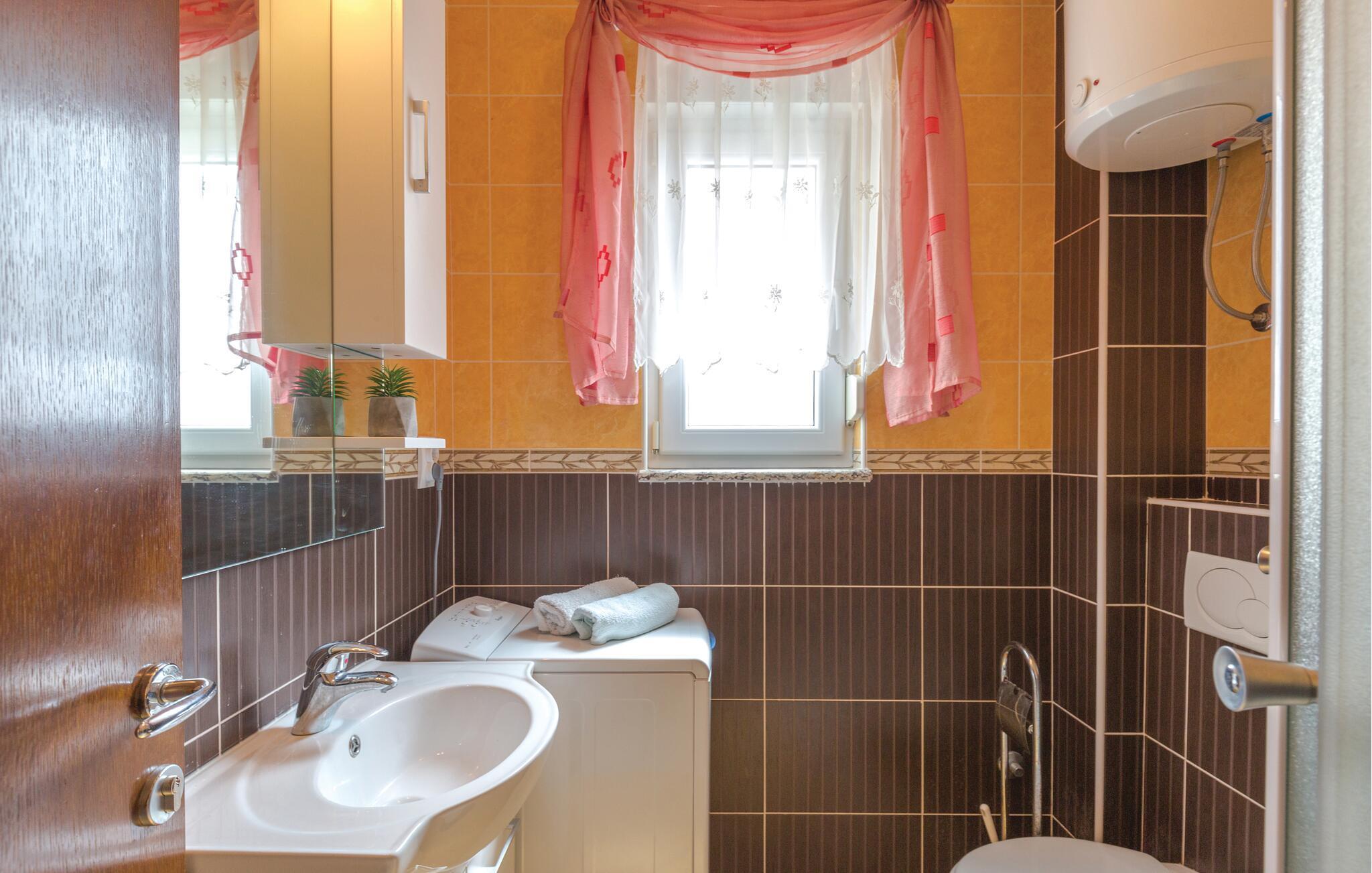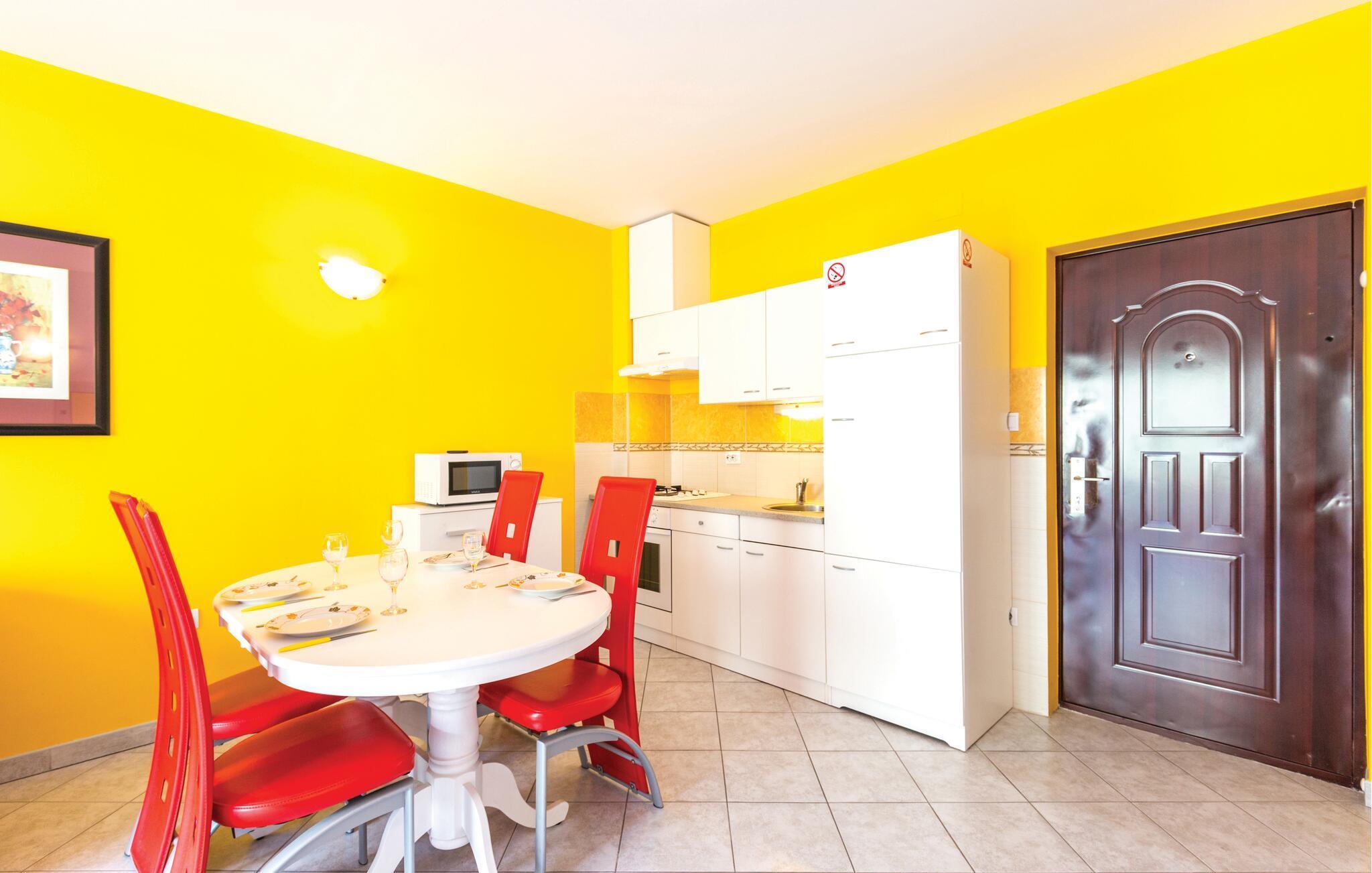 Genießen Sie entspannte Tage in dieser Ferienwohnung, die Ihnen den idealen Rahmen für eine erholsame Auszeit vom Alltag bietet. Die Ausstattung mit gemütlichen Sofas, modernem Mobiliar und einer farbenfrohen Küche schafft ein angenehmes Ambiente, in dem Sie sich sofort wie zu Hause fühlen. Starten Sie den Tag mit einem aromatischem Kaffee oder zaubern Sie gemeinsam ein leckeres Gericht, vielleicht sogar begleitet von einem Glas kroatischem Wein. Hier verbinden sich Ungezwungenheit und Genuss zu einem Urlaub, wie er sein sollte.