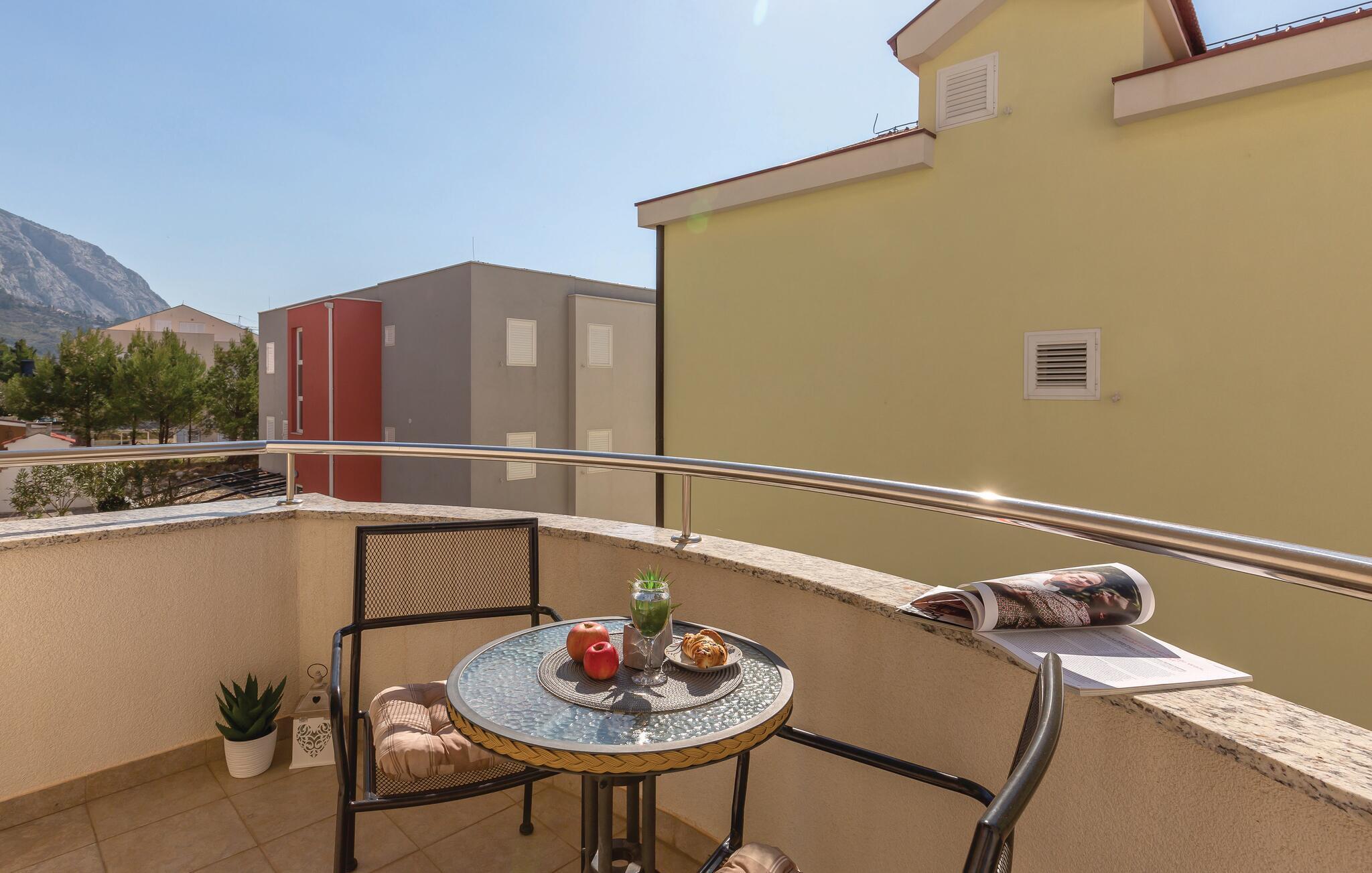 Schlendern Sie gemütlich zum Kiesstrand und genießen Sie das glasklare Wasser sowie den weiten Blick über die Adria. Die lebendige Promenade von Makarska lädt zum Bummeln, Verweilen und Genießen regionaler Spezialitäten ein. Unternehmen Sie einen Tagesausflug in die geschichtsträchtige Stadt Split, wo römische Baukunst und mediterranes Flair aufeinandertreffen. Für Naturliebhaber bietet der nahegelegene Biokovo-Naturpark eindrucksvolle Wanderrouten und spektakuläre Ausblicke auf die Küste.