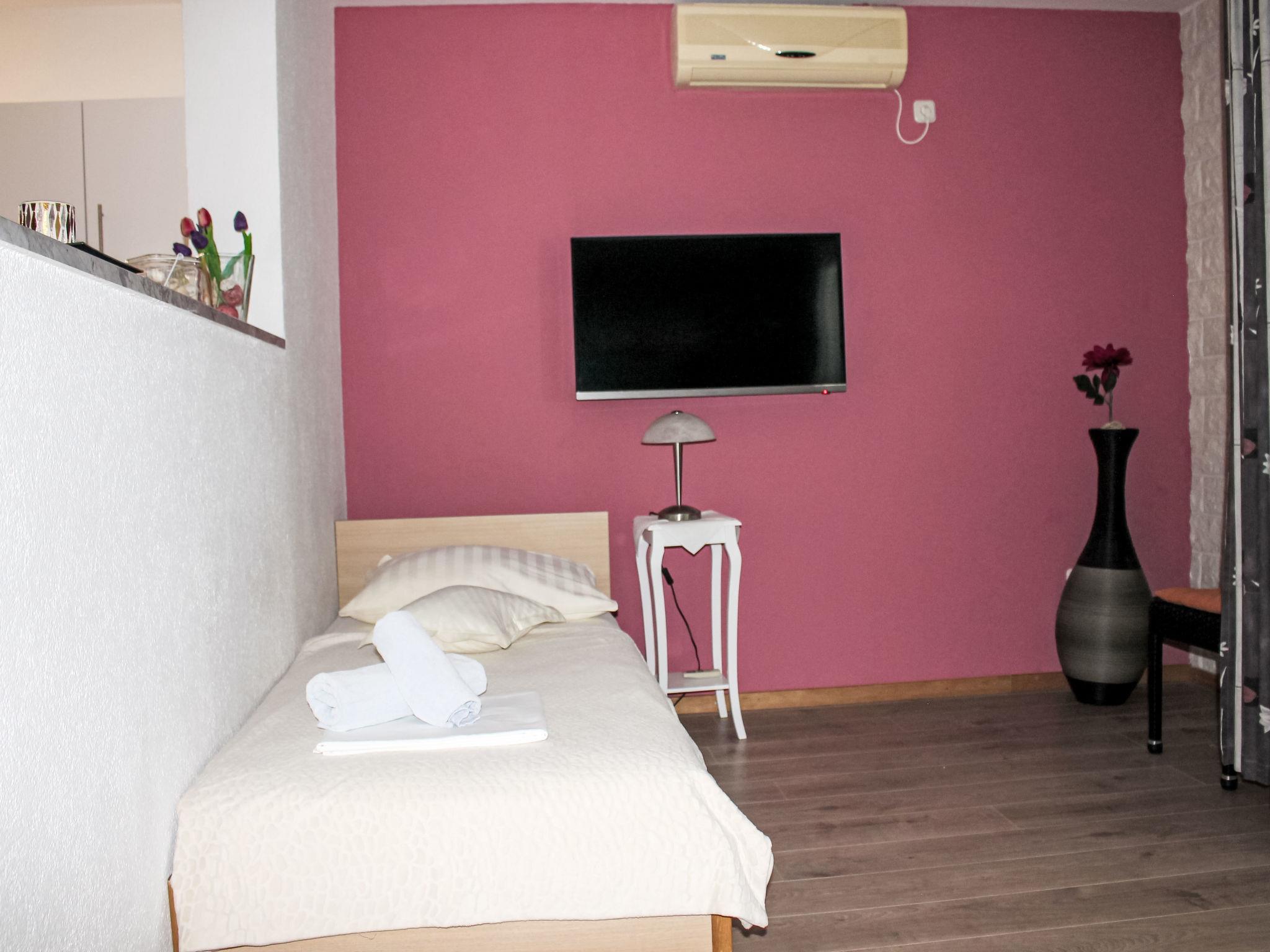 Appartementhaus "Villa Silvia", auf 3 Stockwerken. 5 Wohnungen im Ferienhaus. 750 m vom Zentrum von Makarska, ruhige, sonnige Lage, 500 m vom Meer, 500 m vom Strand, in einer Sackgasse. Zur Mitbenutzung: Grundstück 400 m2 (eingezäunt). Im Hause: Internetzugang, Waschmaschine (extra). 40 m lange schmale Zufahrt bis zum Haus. Parkplatz (beschränkte Anzahl) beim Haus. Einkaufsgeschäft 170 m, Einkaufszentrum 1.8 km, Restaurant, Café 250 m, Bushaltestelle 300 m, Kieselstrand 500 m. Es kann auf Anfrage ein Transfer ab Flughafen zum Ferienobjekt organisiert werden. Bitte beachten: Der Besitzer wohnt im selben Haus. Flugplatz 78 km vom Haus.