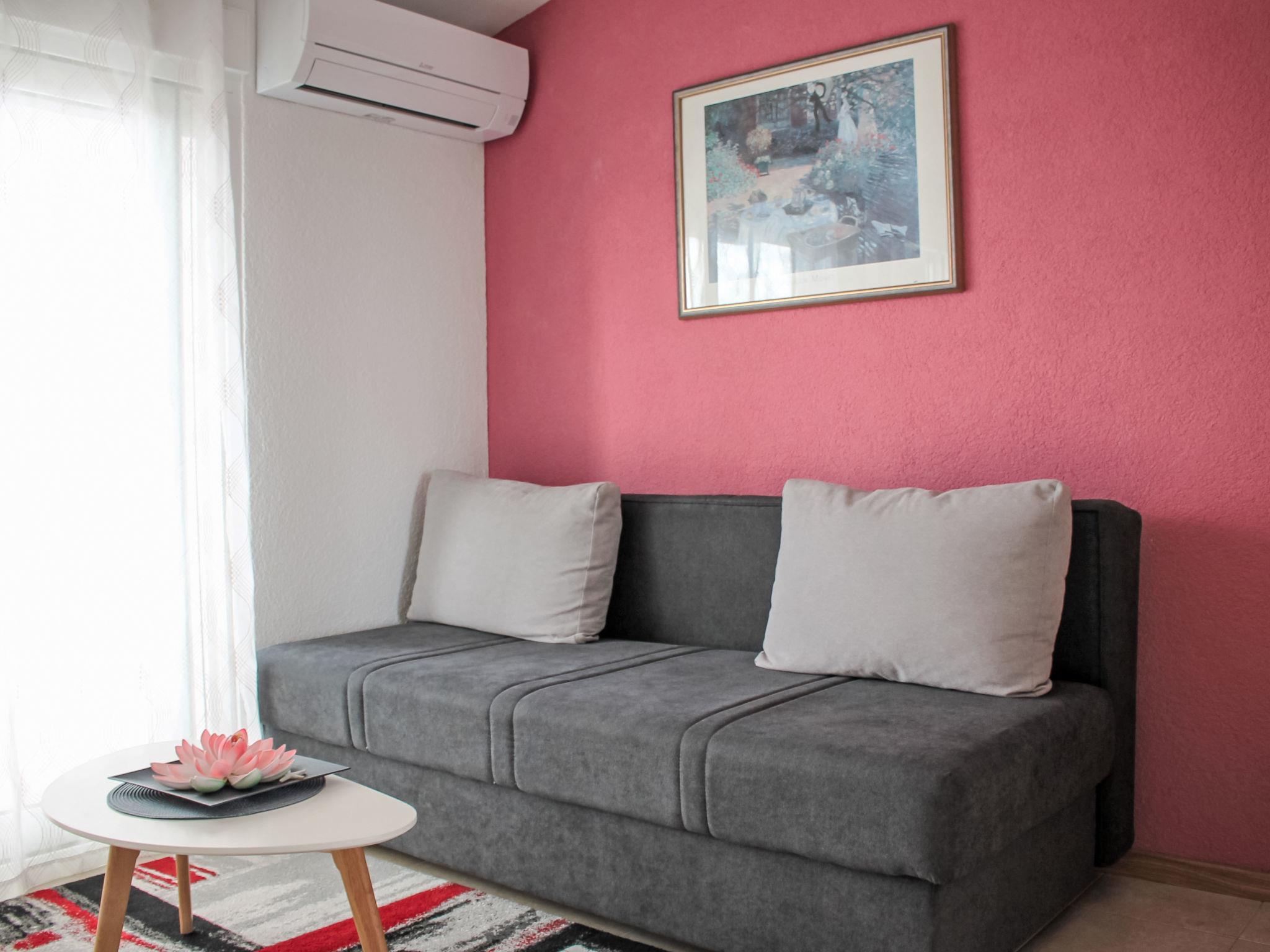 Appartementhaus "Villa Silvia", auf 3 Stockwerken. 5 Wohnungen im Ferienhaus. 750 m vom Zentrum von Makarska, ruhige, sonnige Lage, 500 m vom Meer, 500 m vom Strand, in einer Sackgasse. Zur Mitbenutzung: Grundstück 400 m2 (eingezäunt). Im Hause: Internetzugang, Waschmaschine (extra). 40 m lange schmale Zufahrt bis zum Haus. Parkplatz (beschränkte Anzahl) beim Haus. Einkaufsgeschäft 170 m, Einkaufszentrum 1.8 km, Restaurant, Café 250 m, Bushaltestelle 300 m, Kieselstrand 500 m. Es kann auf Anfrage ein Transfer ab Flughafen zum Ferienobjekt organisiert werden. Bitte beachten: Der Besitzer wohnt im selben Haus. Flugplatz 78 km vom Haus.