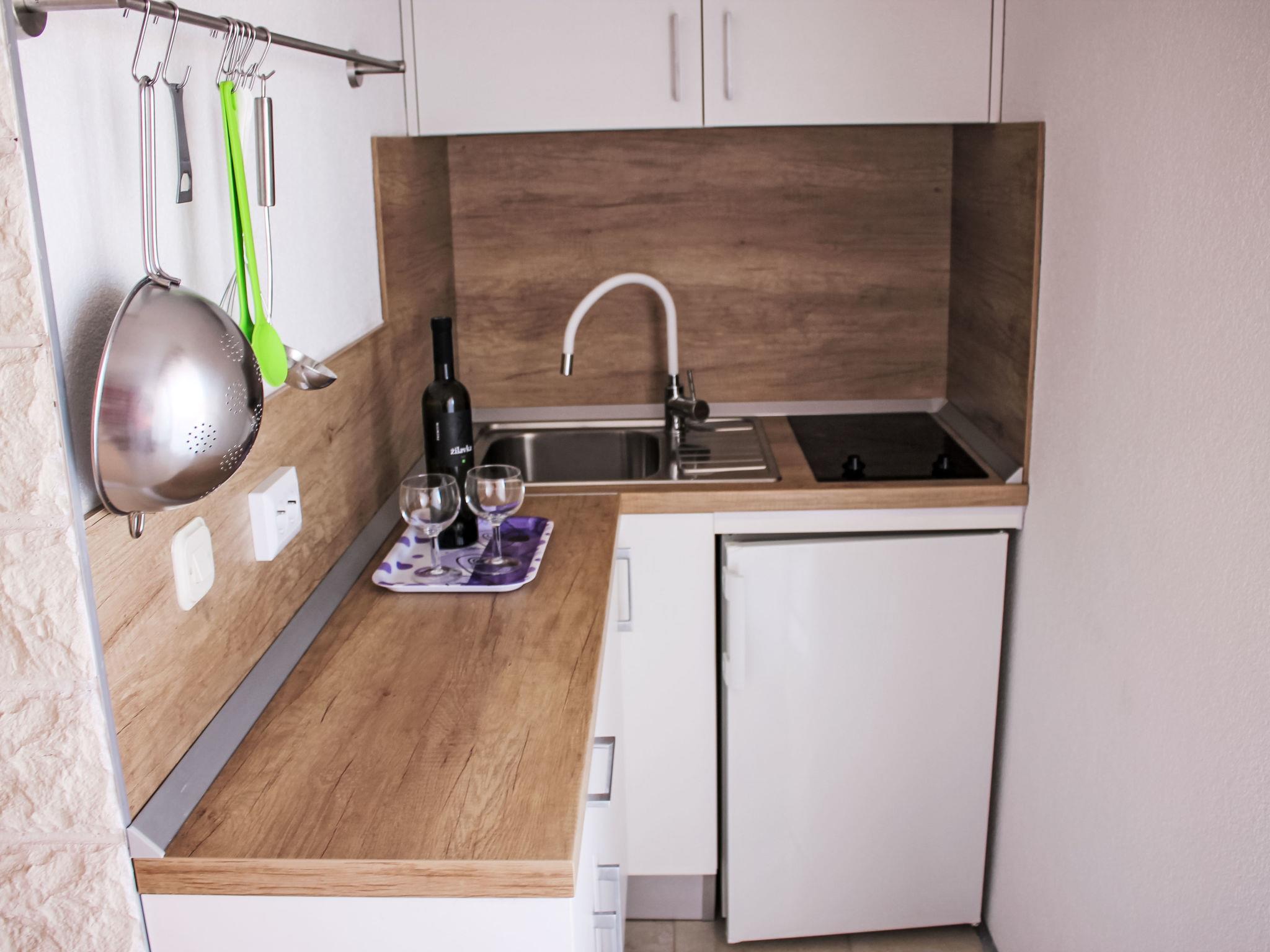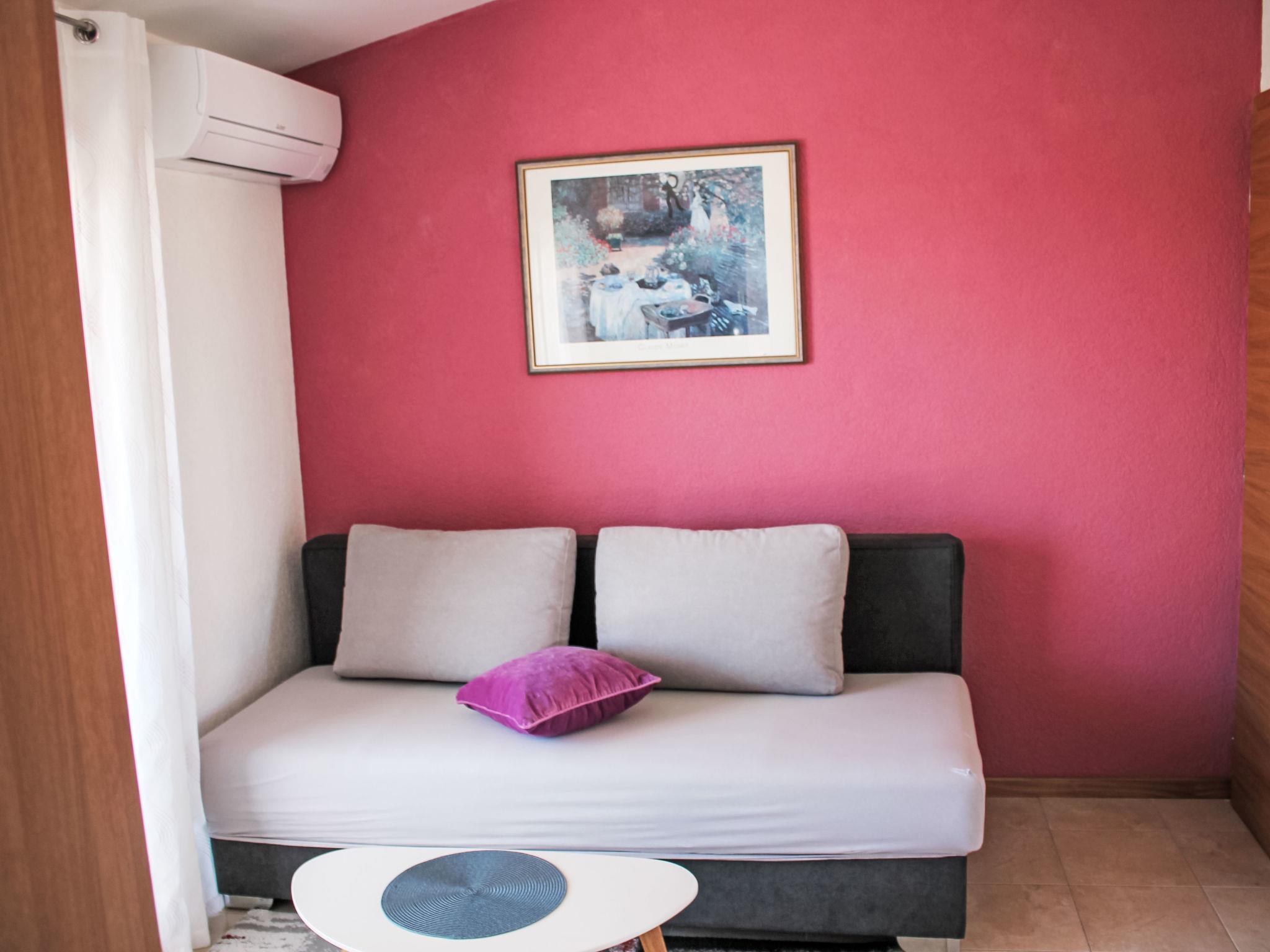 2-Zimmer-Wohnung 30 m2 im 2. Stock. Wohn-/Esszimmer mit Sat-TV und Klimaanlage. Ausgang zum Balkon. 1 Zimmer mit 1 franz. Bett (180 cm, Länge 200 cm). Offene Küche (2 Glaskeramikplatten, Wasserkocher, Tiefkühler, elektrische Kaffeemaschine) mit Esstisch. Dusche/WC. Balkon 8 m2. Balkonmöbel. Zur Verfügung: Safe, Bügeleisen, Haartrockner. Internet (Wireless LAN).