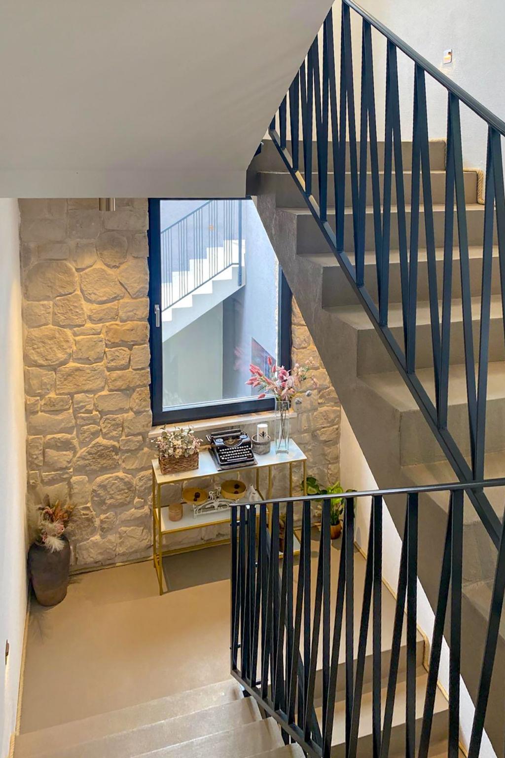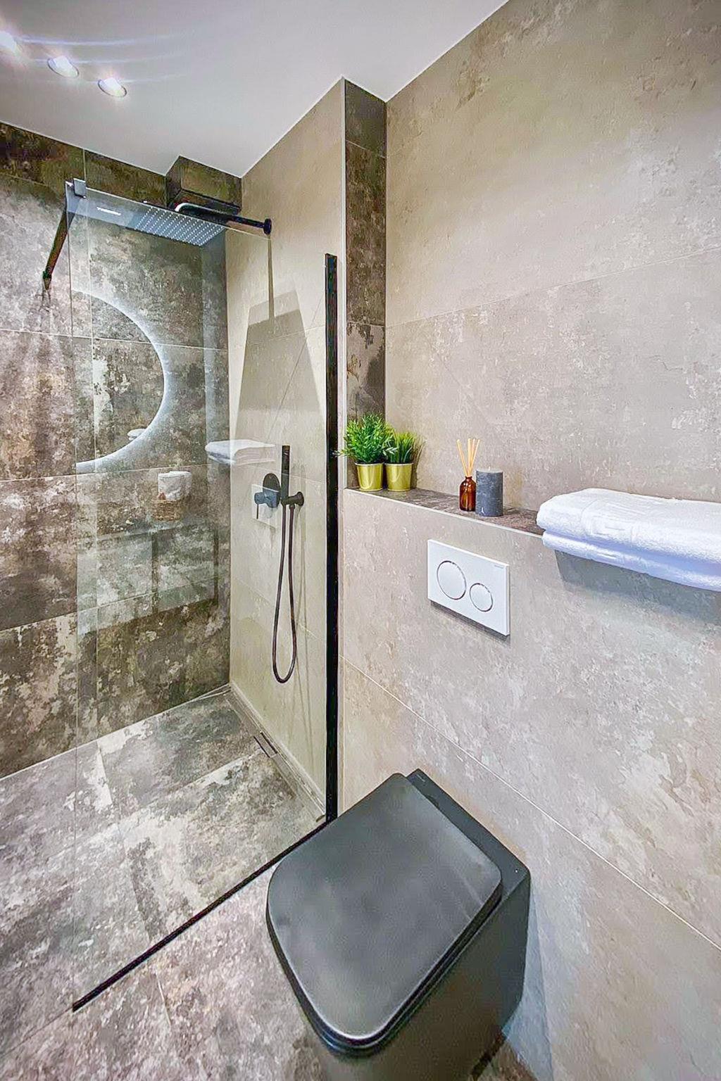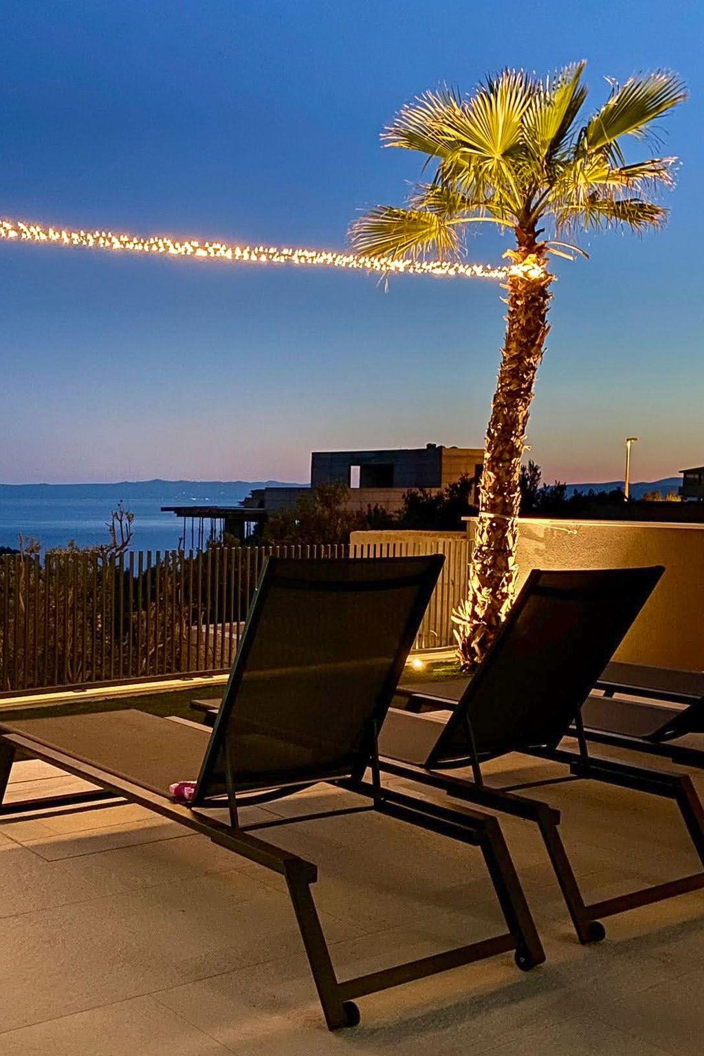 5-Zimmer-Wohnung 120 m2. Wohn-/Esszimmer mit Sat-TV und Klimaanlage. Ausgang zur Terrasse. 1 Zimmer mit 1 franz. Bett (180 cm, Länge 200 cm), Klimaanlage. Offene Küche (Backofen, Geschirrspüler, 4 Induktionskochplatten, Toaster, Wasserkocher, Mikrowelle, Tiefkühler, elektrische Kaffeemaschine). Ausgang zur Terrasse. Dusche/WC. Obergeschoss: 3 Zimmer, jedes Zimmer mit 1 franz. Bett (180 cm, Länge 200 cm), Klimaanlage. Ausgang zum Balkon. 2 Duschen/WC. Bodenheizung. Balkon 18 m2, grosse Terrasse 120 m2 teilweise überdacht. Liegestühle (4). Sehr schöne Panoramasicht auf das Meer. Zur Verfügung: Waschmaschine, Safe, Bügeleisen, Kinderhochstuhl, Babybett, Haartrockner. Internet (WLAN, gratis). Bitte beachten: Nichtraucher-Unterkunft.