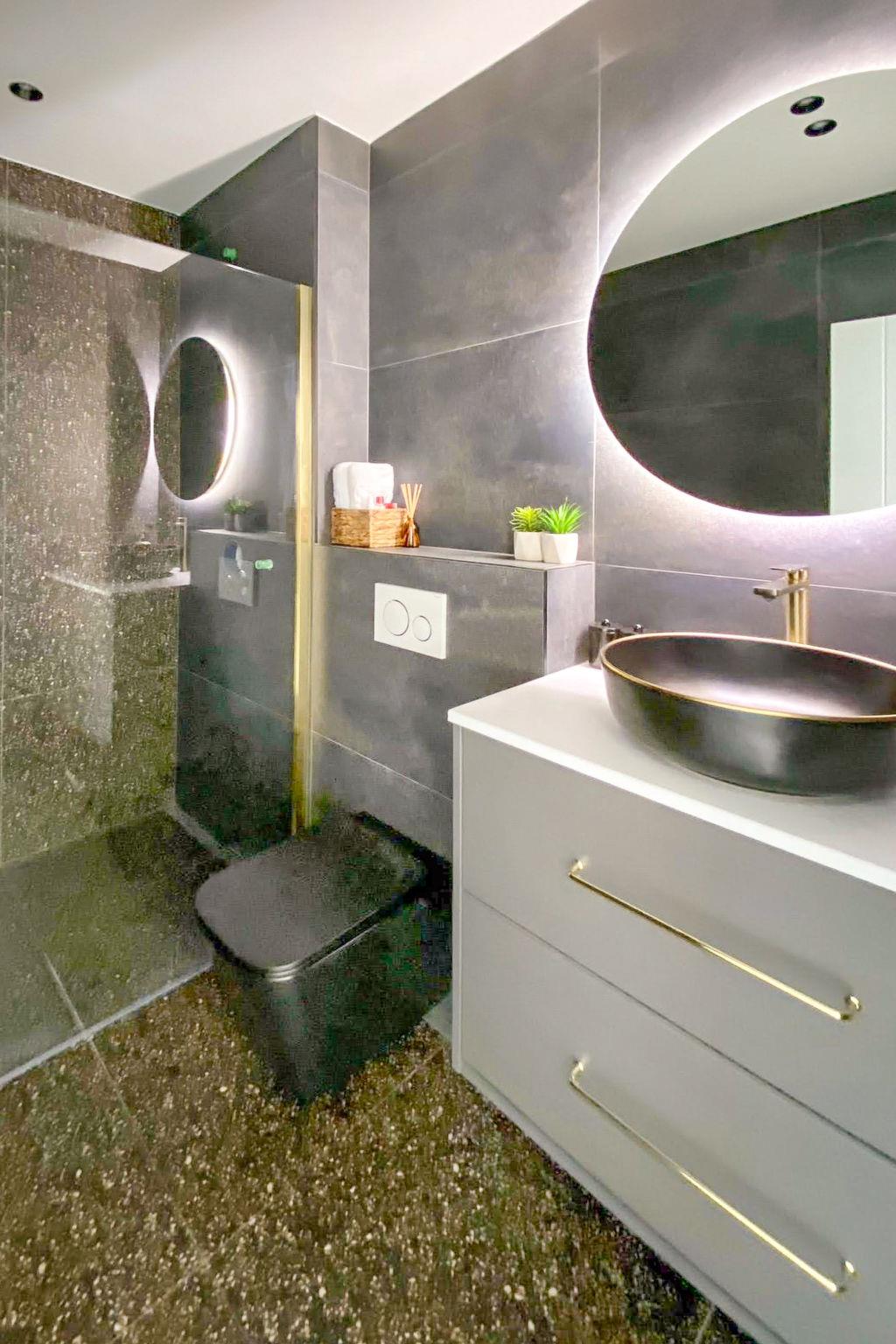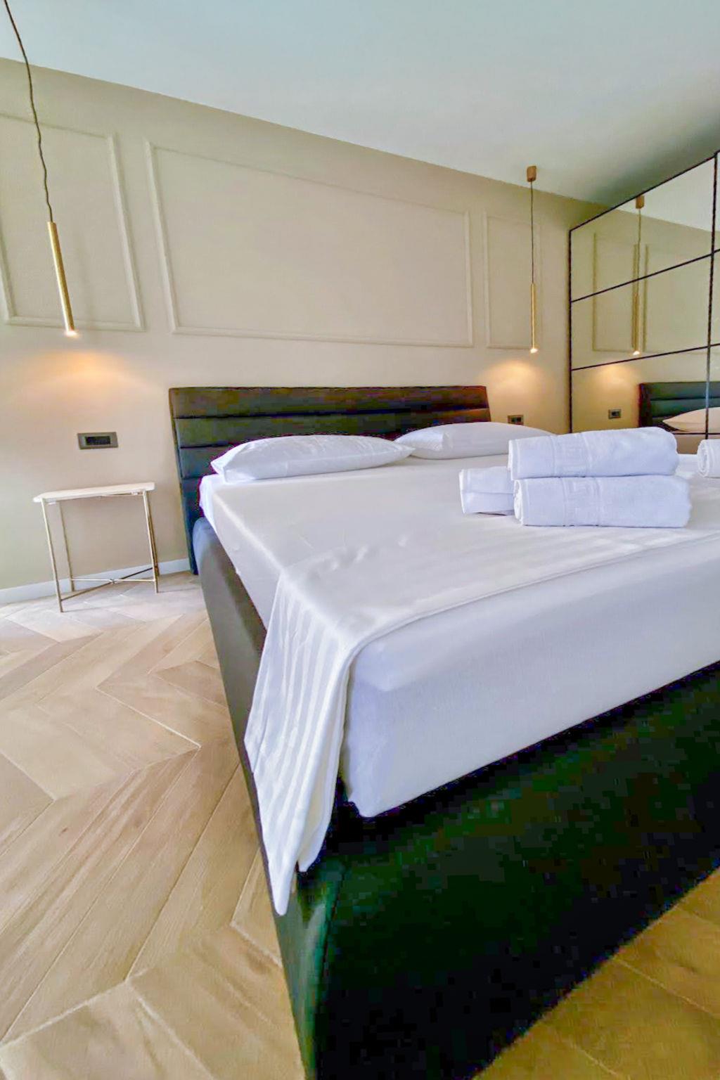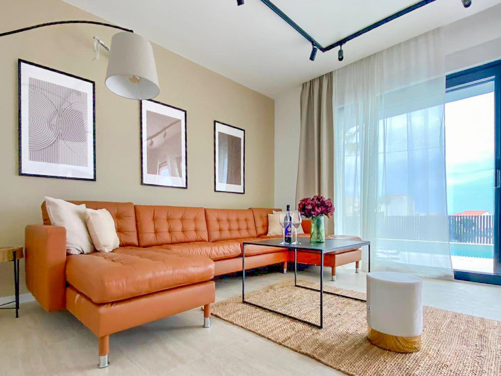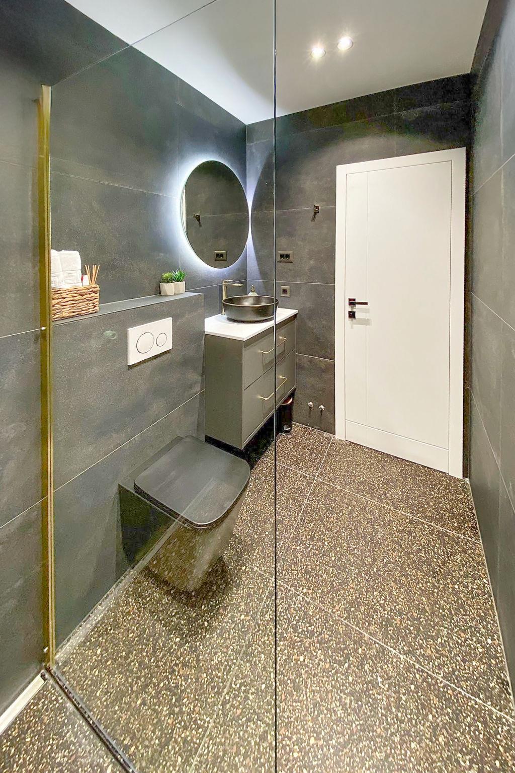 5-Zimmer-Wohnung 120 m2. Wohn-/Esszimmer mit Sat-TV und Klimaanlage. Ausgang zur Terrasse. 1 Zimmer mit 1 franz. Bett (180 cm, Länge 200 cm), Klimaanlage. Offene Küche (Backofen, Geschirrspüler, 4 Induktionskochplatten, Toaster, Wasserkocher, Mikrowelle, Tiefkühler, elektrische Kaffeemaschine). Ausgang zur Terrasse. Dusche/WC. Obergeschoss: 3 Zimmer, jedes Zimmer mit 1 franz. Bett (180 cm, Länge 200 cm), Klimaanlage. Ausgang zum Balkon. 2 Duschen/WC. Bodenheizung. Balkon 18 m2, grosse Terrasse 120 m2 teilweise überdacht. Liegestühle (4). Sehr schöne Panoramasicht auf das Meer. Zur Verfügung: Waschmaschine, Safe, Bügeleisen, Kinderhochstuhl, Babybett, Haartrockner. Internet (WLAN, gratis). Bitte beachten: Nichtraucher-Unterkunft.