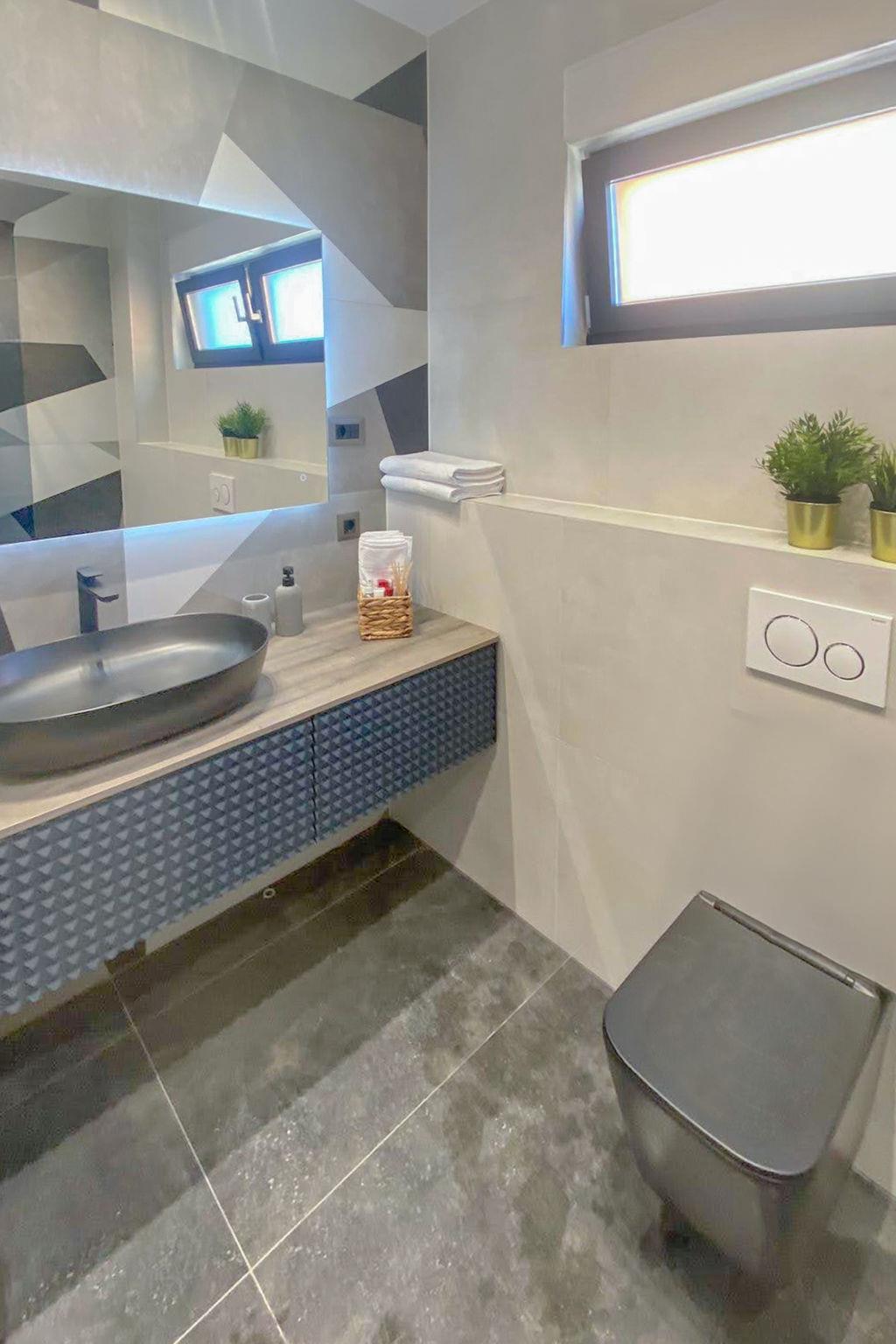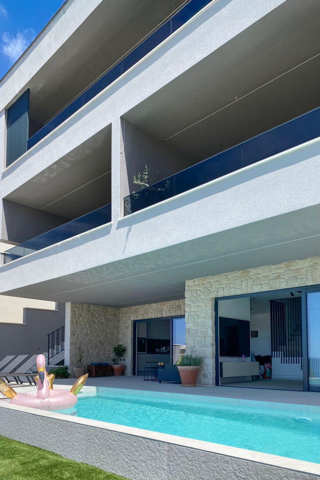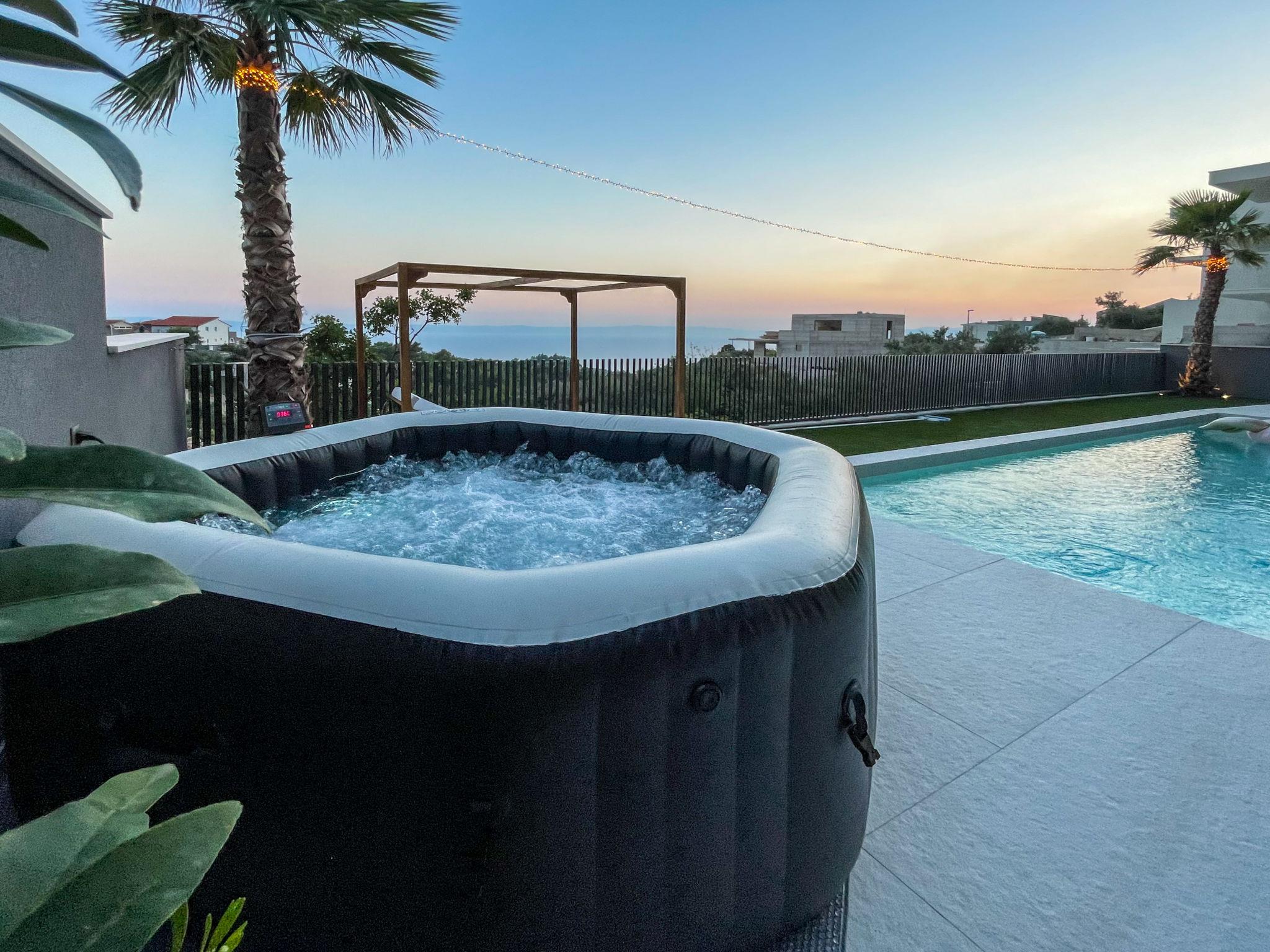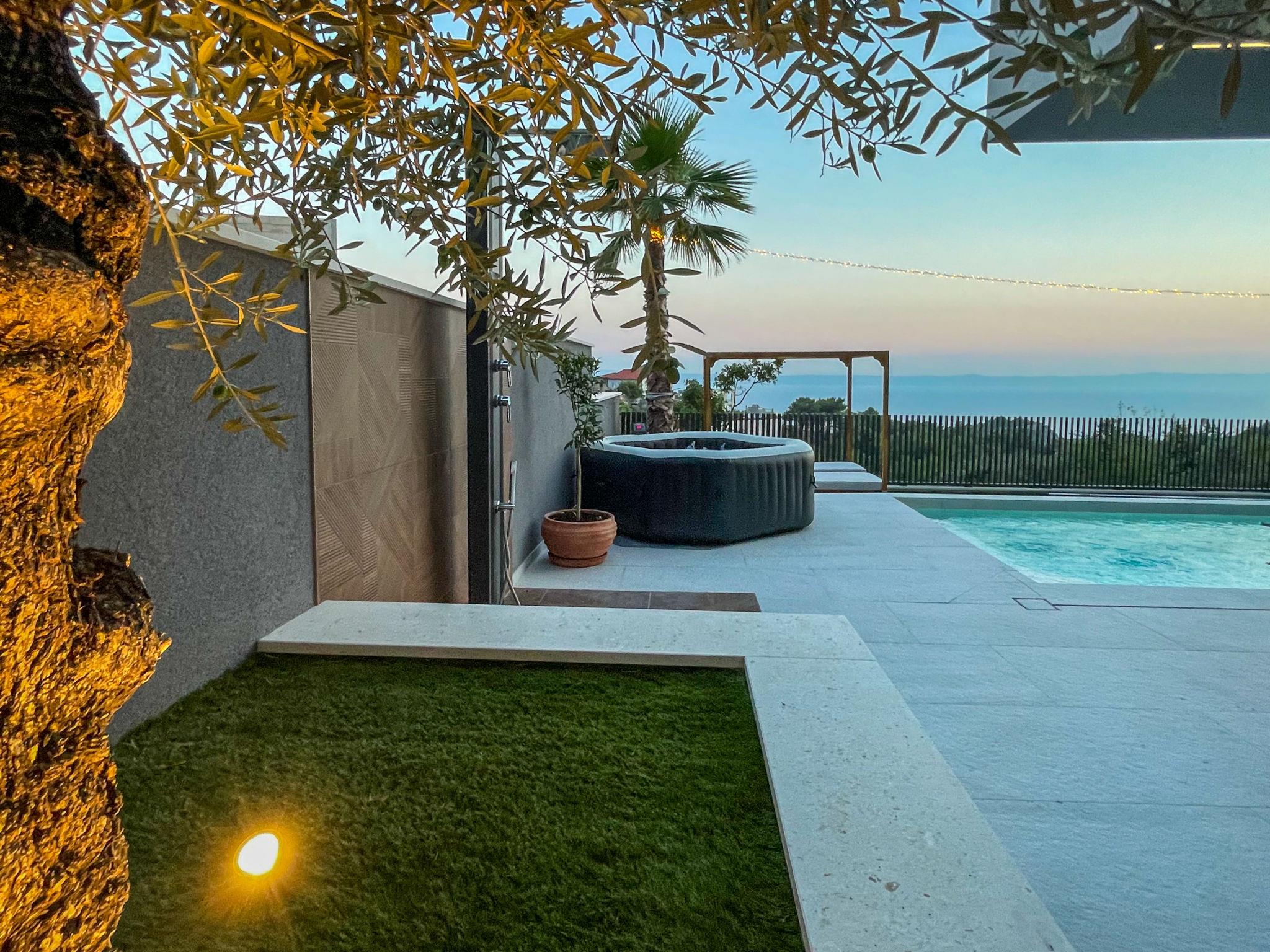 Sehr modernes Zweifamilienhaus "Villa 5". 4.2 km vom Zentrum von Makarska, ruhige, sonnige Lage am Hang, 2.5 km vom Meer, 2.5 km vom Strand. Zur Alleinbenutzung: Grundstück 400 m2 (eingezäunt), Schwimmbad eckig, beheizt (24 m2, saisonale Verfügbarkeit: 01.Apr. - 01.Nov.) mit Innentreppe und Salzelektrolyse-Reinigungssystem. Aussendusche, Sprudelbad, Poolpflege durch den Besitzer/Gärtner. Im Hause: Internetzugang. Parkplatz (für 3 Autos) beim Haus auf dem Grundstück. Supermarkt 1.6 km, Restaurant 800 m, Bushaltestelle 3.8 km, Kieselstrand 2.5 km. Es kann auf Anfrage ein Transfer ab Flughafen zum Ferienobjekt organisiert werden. Bitte beachten: Besitzer wohnt in separatem Hausteil. Flugplatz 78 km vom Haus. Die Nachbarschaft ist sehr lärmempfindlich. Ruhe und gutes Benehmen wird erwartet.