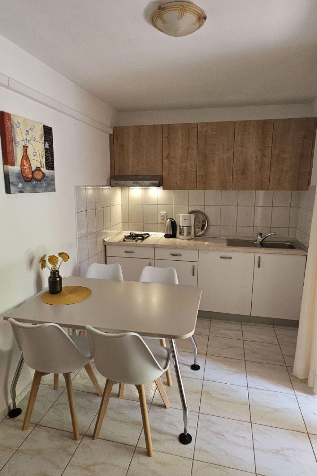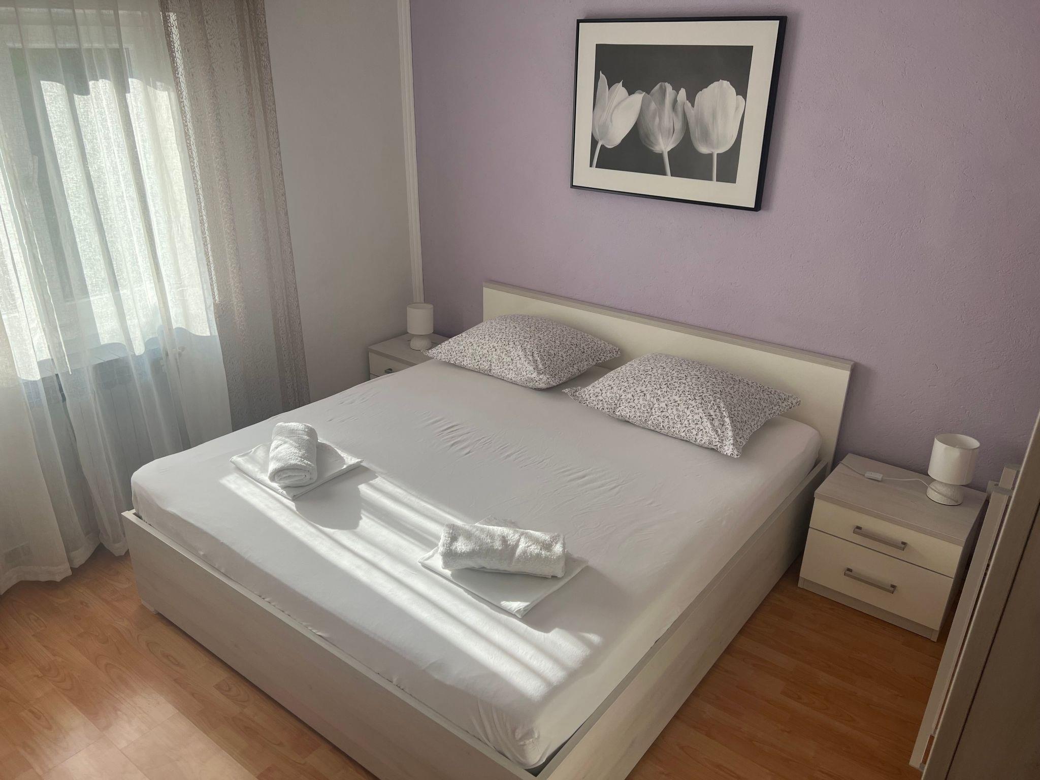 Neue, moderne, schöne Ferienwohnung, oberhalb von Makarska, im Ortsteil Veliko brdo, 2.5 km vom Zentrum von Makarska, ruhige, sonnige Lage am Hang, 2 km vom Strand, im Grünen, Richtung Süden. Ruhige Lage und herllicher Ausblick auf Stadt, Insel und das Meer. Zur Mitbenutzung: Grundstück 1300 m2 (eingezäunt), ein grosser mediterraner Garten mit Grill, Aussendusche. Gartenmöbel. Parkplatz beim Haus auf dem Grundstück. Einkaufsgeschäft 1.0 km, Restaurant 200 m, Kieselstrand 2 km. Das Haus befindet sich am Rande eines Olivenhains. Herzlich wilkommen ! Unterkunft: 2-Zimmer-Wohnung 90 m2, im 1.Stock, schön eingerichtet, sehr bequem: Wohn-/Esszimmer (die Küche), Ausgang zur Terrasse (12m2) aus der Küche (Ost), 1. Zimmer mit einem doppel Bett + Sofabett und Klimaanlage , 2. Zimmer mit einem doppel Bett + Sofabett und Klimaanlage , 2 Badzimmer+ Waschmaschine, Veranda im Sueden mit Satv. Zur Verfügung: Internet (Wireless LAN), Gartenmitbenutzung mit eigenem Tisch (getrennt), Grill, Parkplatz. Ideal für alle die einen entspannten Urlaub, weg vom Lärm und Massentourismus.