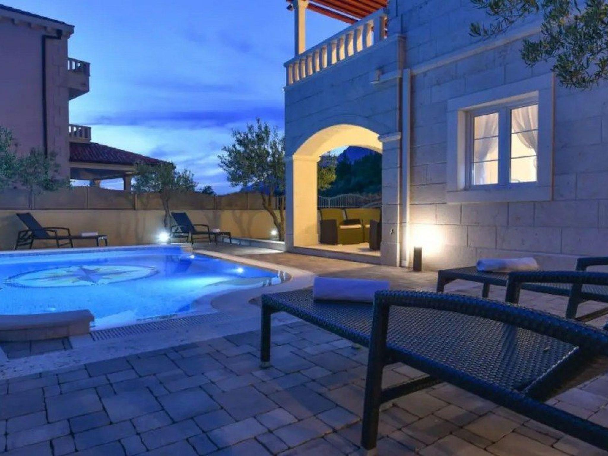 Der Außenbereich lädt mit seinem Pool zur alleinigen Nutzung zum Entspannen und Erfrischen ein. Umgeben von einem gepflegten Garten, der ebenfalls zur alleinigen Nutzung steht, bietet die Villa ausreichend Raum für Outdoor-Aktivitäten oder einfach zum Genießen der dalmatinischen Sonne. Sowohl die Terrasse als auch der Balkon sind perfekte Orte, um bei einem Getränk zusammenzukommen und die Gemeinschaft zu pflegen.