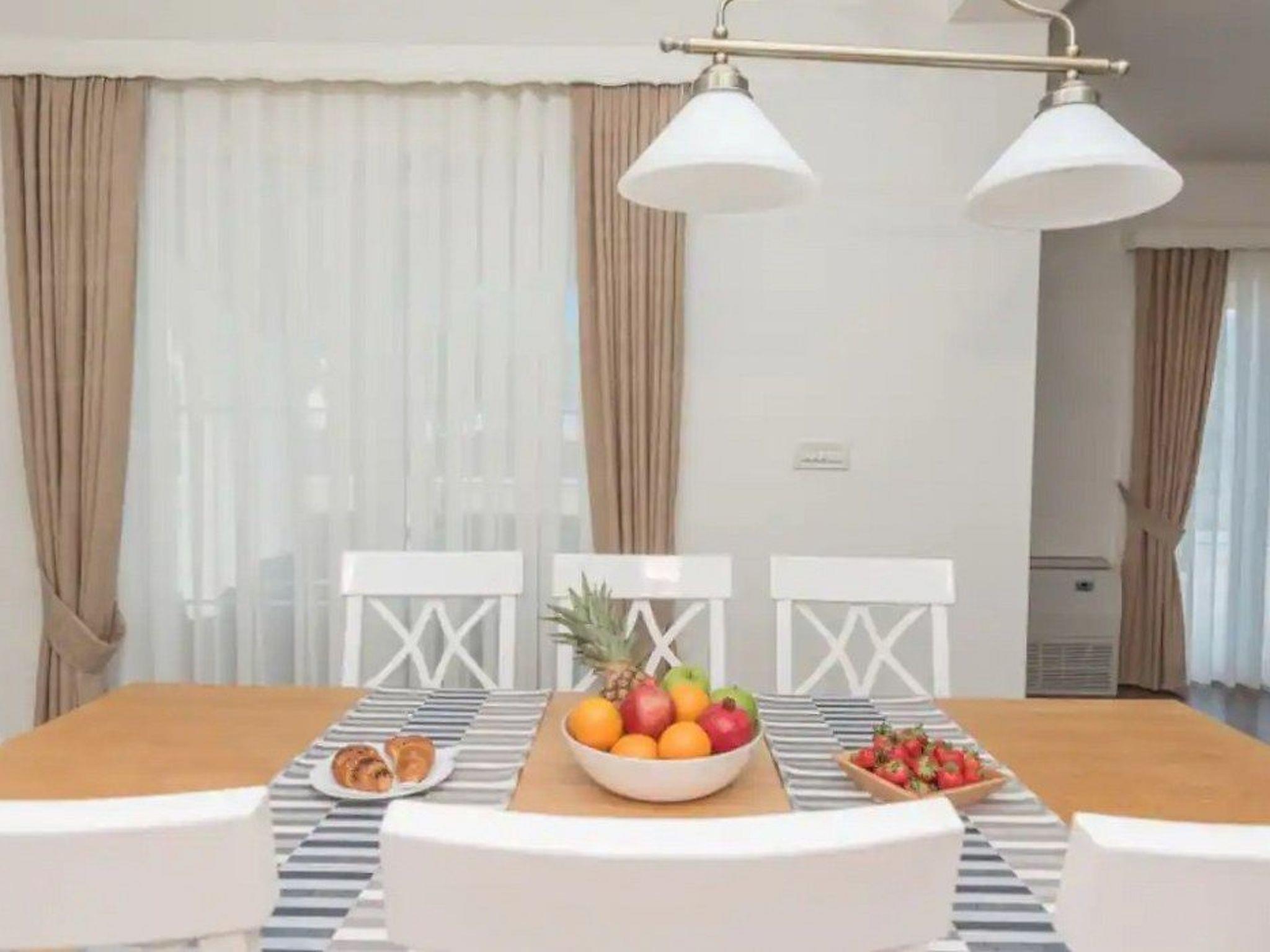 Im Innenbereich bietet jedes der 4 Schlafzimmer zusammen mit den jeweiligen Bädern Privatsphäre und Komfort für alle Gäste. Ausgestattet mit Klimaanlage, sorgt die Villa für eine angenehme Atmosphäre zu jeder Jahreszeit. Für zusätzlichen Komfort sorgen eine Spülmaschine und ein Wasserkocher, die Ihnen den Alltag erleichtern. Die Aufteilung in zwei Appartements, jeweils mit 95 m², umfasst außerdem einen gemütlichen Ess-und Wohnbereich – ideal für gemeinsame Stunden.
