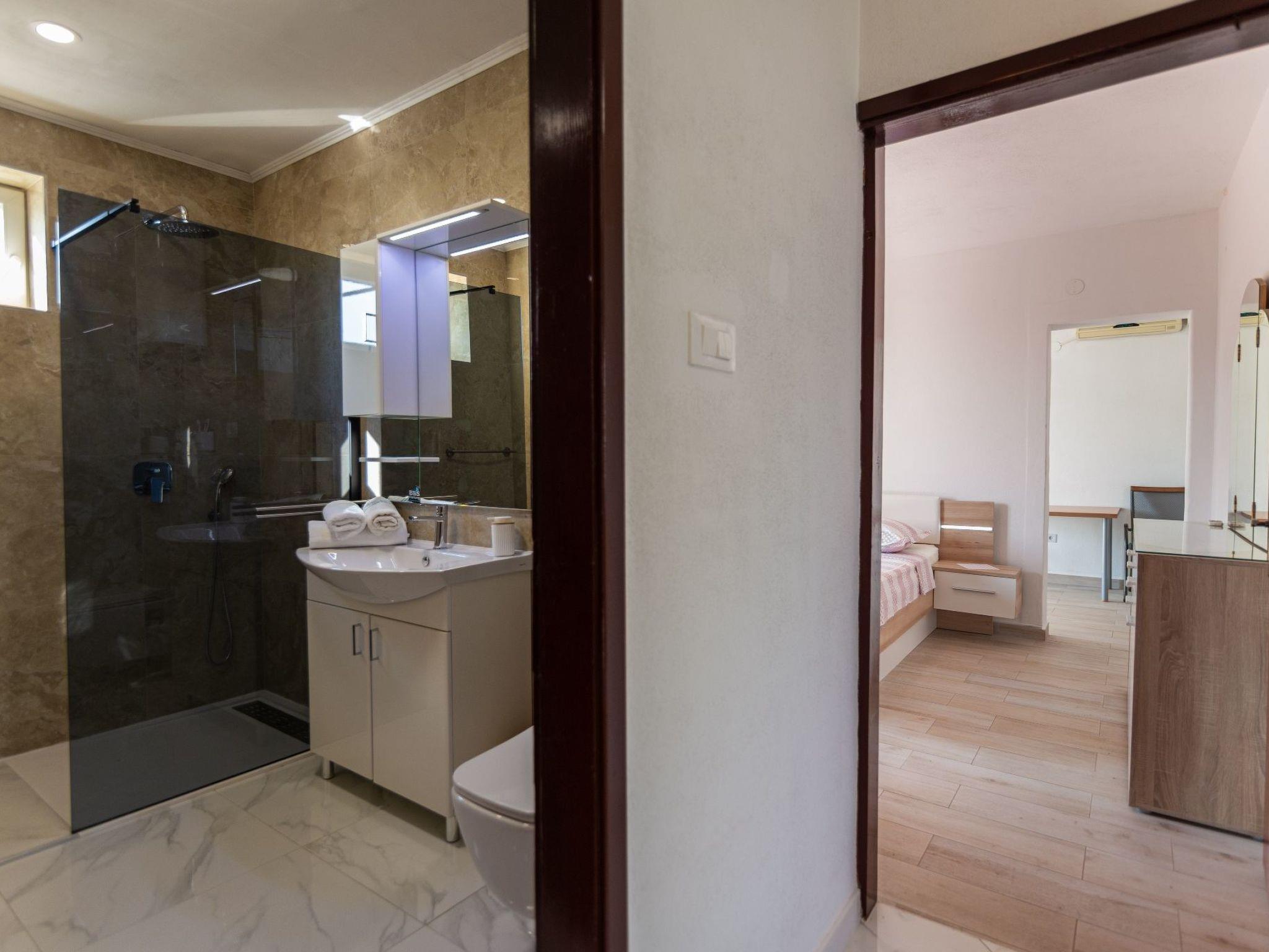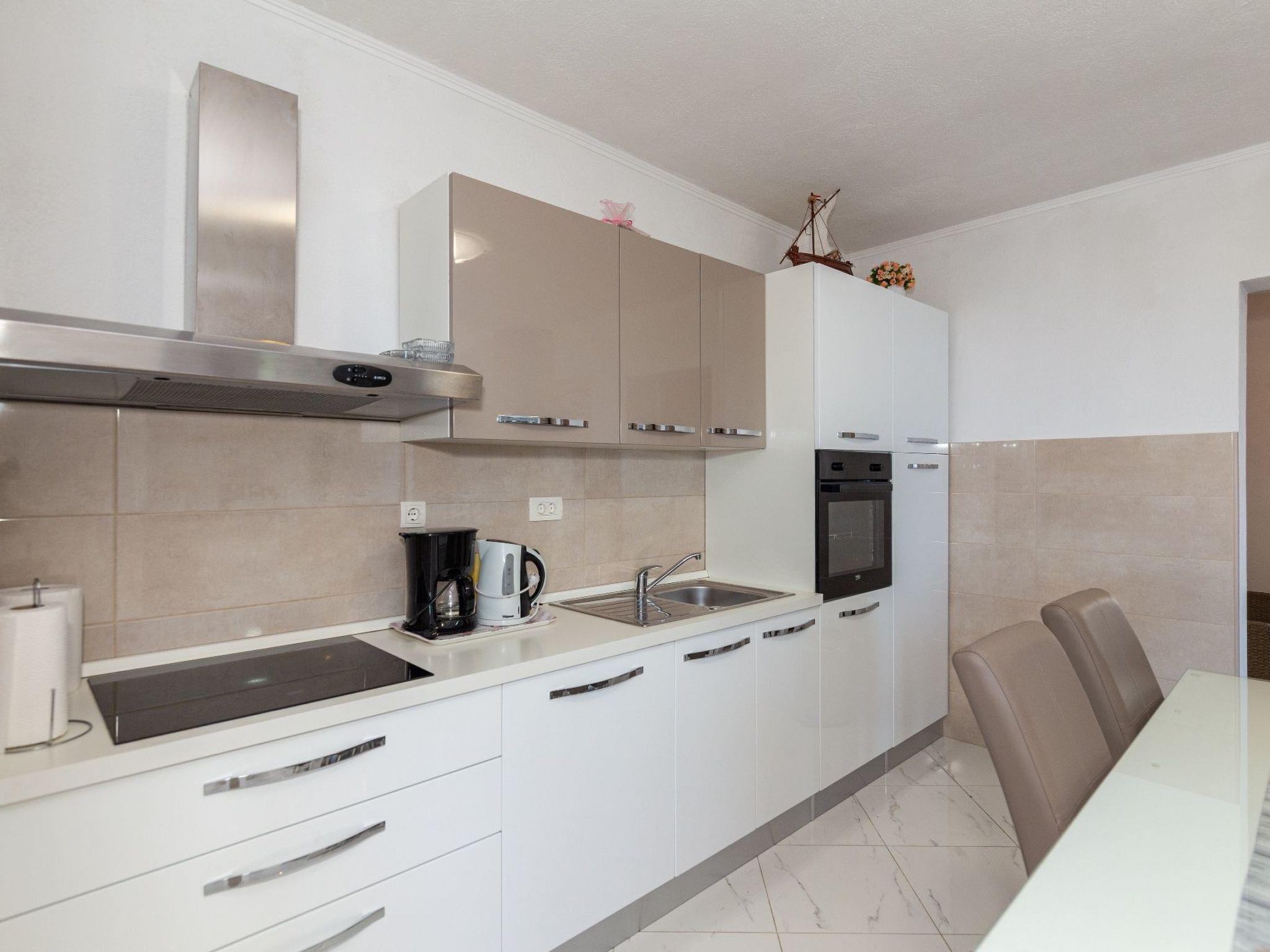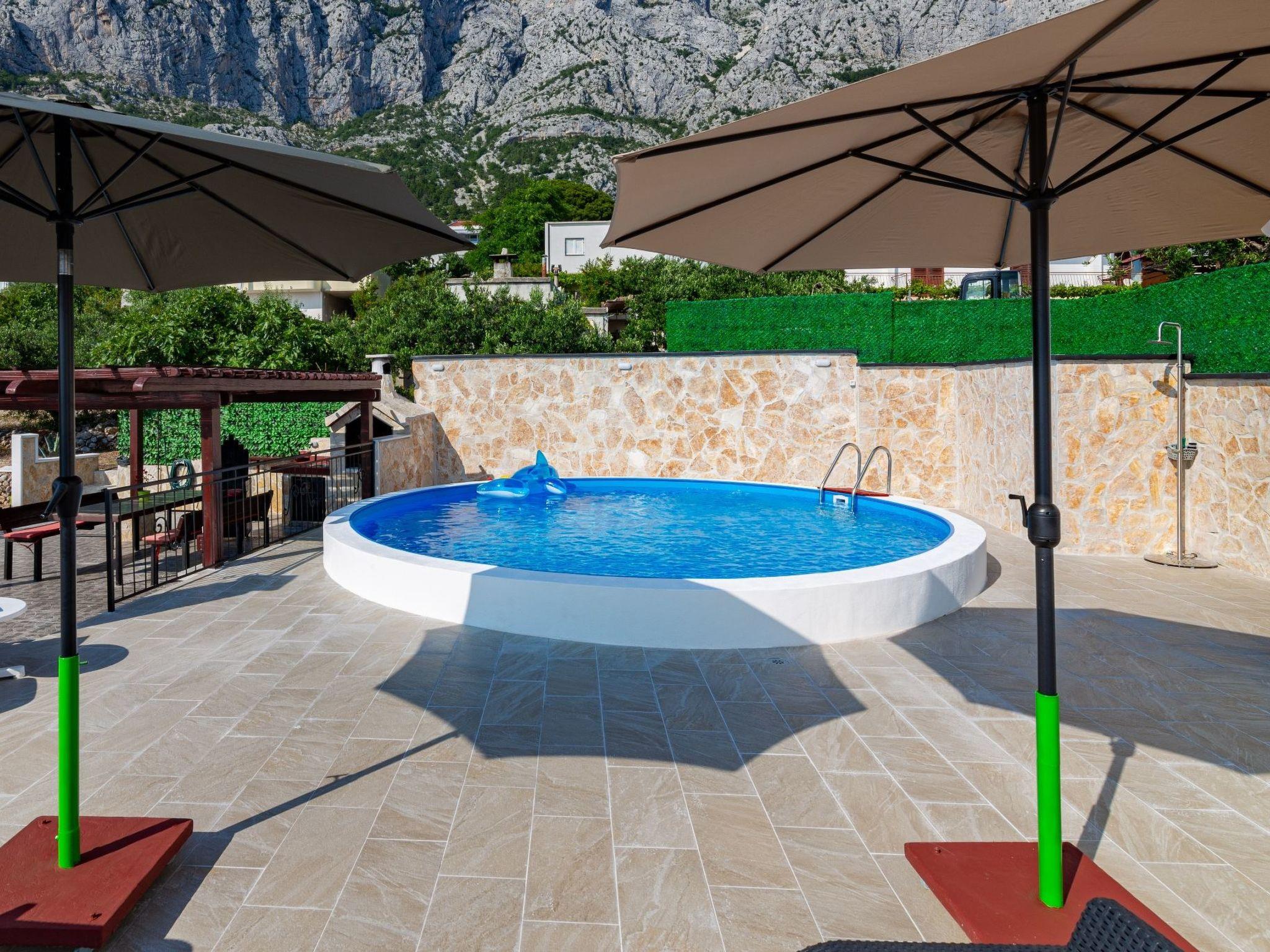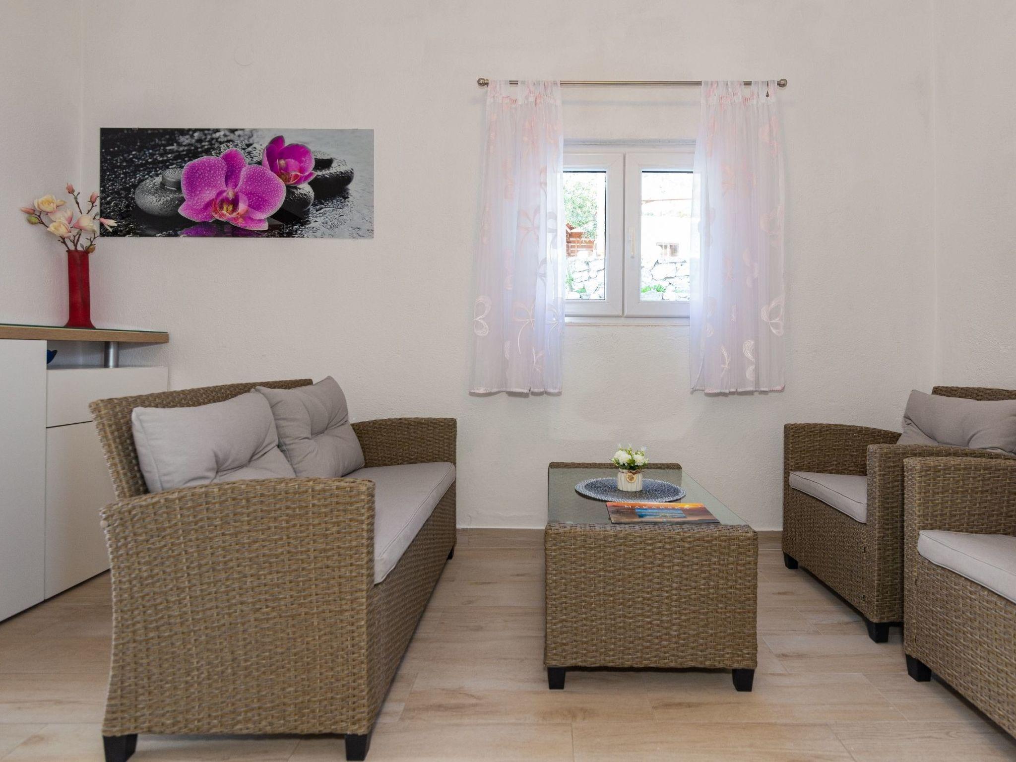 Außerhalb der Stadt in ruhiger und reizvoller Lage, 2 km von der Stadt entfernt. In der Nähe von schönen Stränden, oberhalb von Makarska, in einem kleinen und ruhigen Weiler gelegen, bietet es Ruhe, Entspannung und einen angenehmen Urlaub, umgeben von Oliven, einheimischem mediterranem Gemüse, das in unserem Garten angebaut wird, und Blumen.