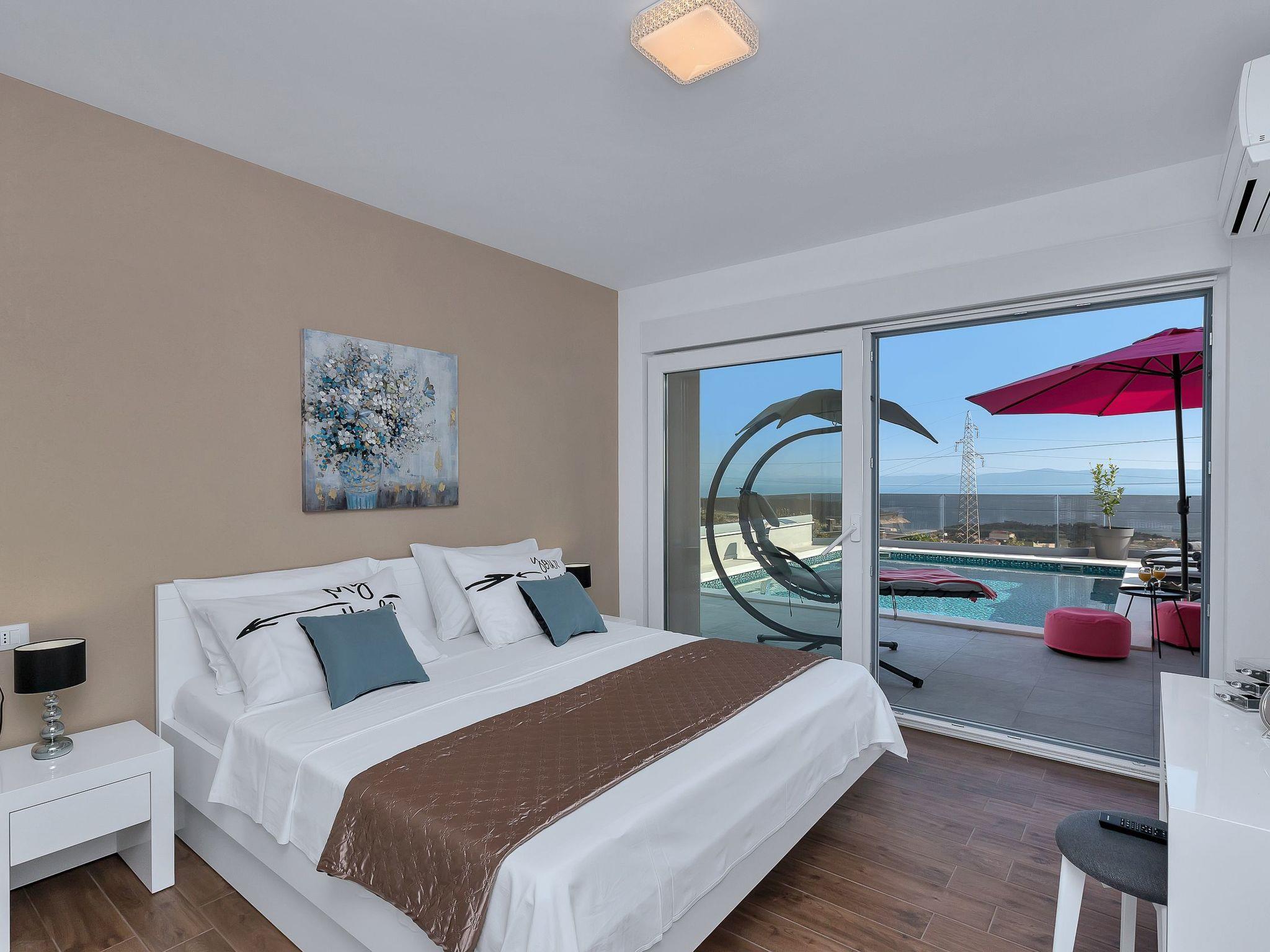 Das neue Ferienhaus Villa Astra wird jeden Besucher begeistern. Ruhig gelegen, umgeben von Olivenplantagen und Pinienbäumen in einer Hanglage oberhalb der Stadt Makarska. Das Ferienhaus ist sehr modern und hell eingerichtet. Verfügt über fünf Doppelbett-Schlafzimmer, Betten 180x200, sechs Badezimmer mit Dusche. Im Erdgeschoß befinder sich das geräumige Wohnbereich mit offenen Küche und Ausgang auf die Terrasse mit beheiztem Pool( 5.00 x 6.00 x 1.5 ), Sonnenliegen, Außendusche und Meerblick. Ein Doppelbett Schlafzimmer mit Terrassenausgang und Badezimmer.
