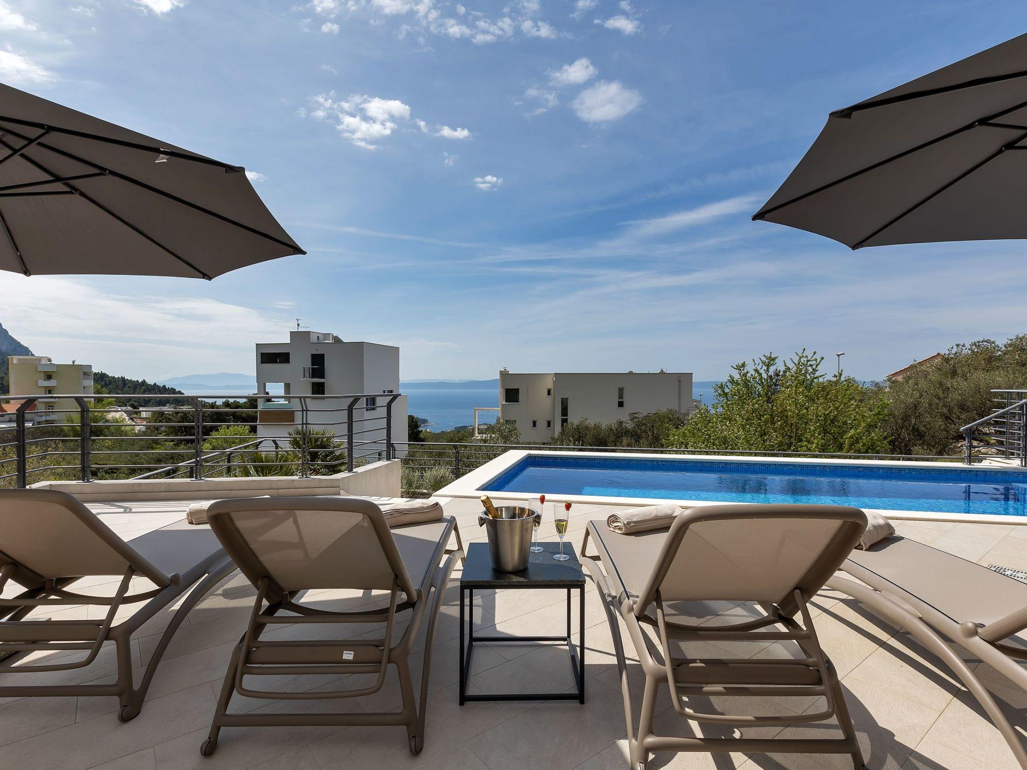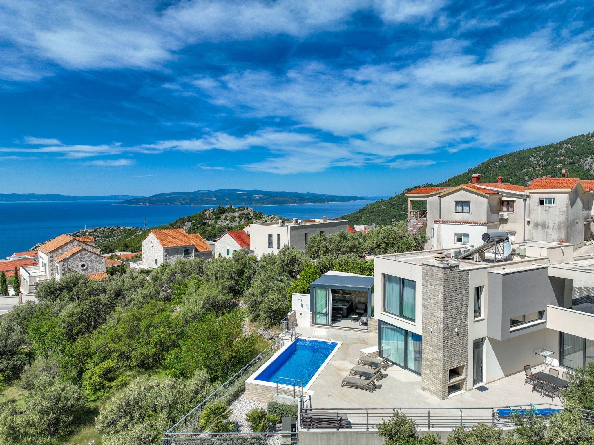 Mit einem atemberaubenden Blick auf das Meer, verfügt das Ferienhaus mit drei Doppelbett Schlafzimmer, jedes mit eigenem Badezimmer mit Dusche und bietet ausreichend Komfort für 6 Personen. Im Erdgeschoss gibt es ein modernes Wohnzimmer mit dem Ausgang zum Pool(beheizt) und Terrasse mit Meerblick, eine offene Küche. Ein Schlafzimmer mit Doppelbett und das Badezimmer. Auf der ersten Etage befinden sich zwei Schlafzimmer, beide mit Doppelbett und Badezimmer mit Dusche. Alle Zimmer im Haus sind klimatisiert und voll mit kostenlosem WiFi-Internet abgedeckt. Aussenpool mit Liegen, Terrasse und Grillplatz.