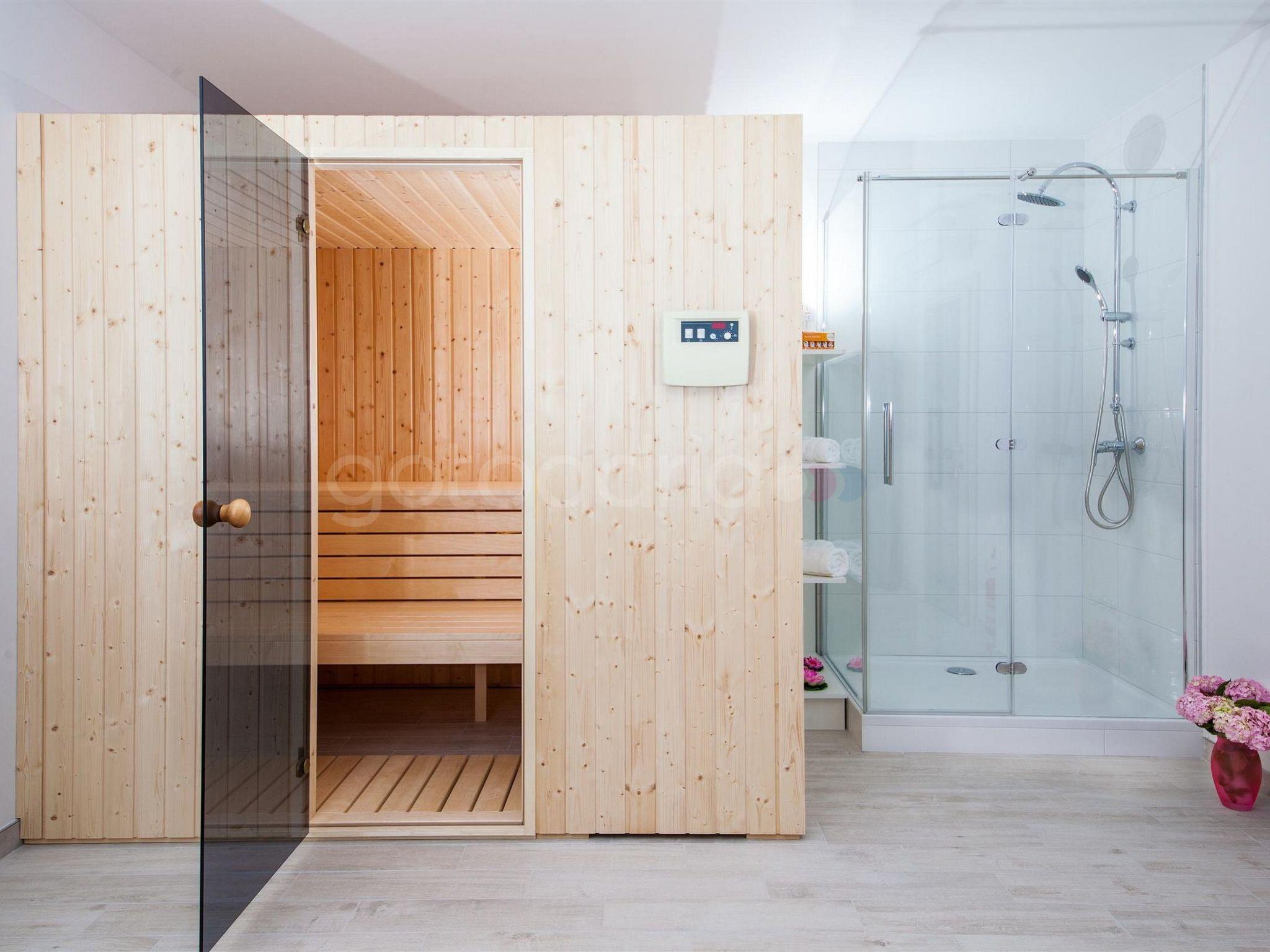 Im Inneren ist die Villa Ivizza eine Oase des Komforts und des Luxus, mit einem geräumigen Wohnzimmer und einer großen Küche, die mit einem Essbereich ausgestattet ist. Für Entspannung und Unterhaltung sorgen fünf elegante Schlafzimmer mit Doppelbetten, sechs gut ausgestattete Badezimmer, ein Fitnessraum, eine Sauna und ein Spielzimmer mit Darts und Tischfußball. Die Villa ist voll klimatisiert, damit Sie sich jederzeit wohlfühlen, und verfügt über Annehmlichkeiten wie eine Waschmaschine, eine Kaffeemaschine, einen Geschirrspüler und einen Wasserkocher, die Sie exklusiv nutzen können.