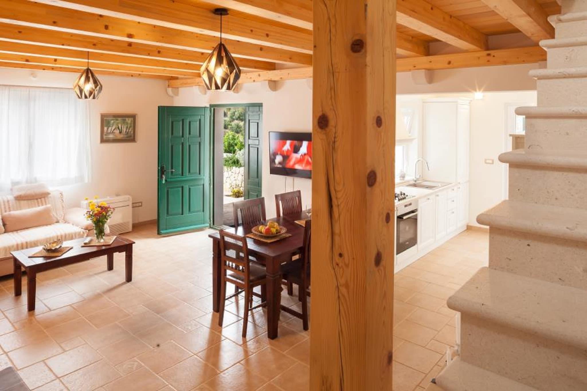 Parterre: (offene Küche(Wasserkocher, Toaster, Kochherd, Kaffeemaschine(Espresso), Backofen, Spülmaschine, Kühl-/Gefrierkombination), Wohn/Esszimmer(Doppelschlafcouch(200 x 200 cm), TV(Flatscreen, Satellit), Esstisch, Stereoanlage), Toilette, Klimaanlage) In der 1. Etage: (Schlafzimmer mit Badezimmer(Etagenbett), Balkon, Klimaanlage) Whirlwanne, Patio, Dachterasse, Garten, Außenkamin