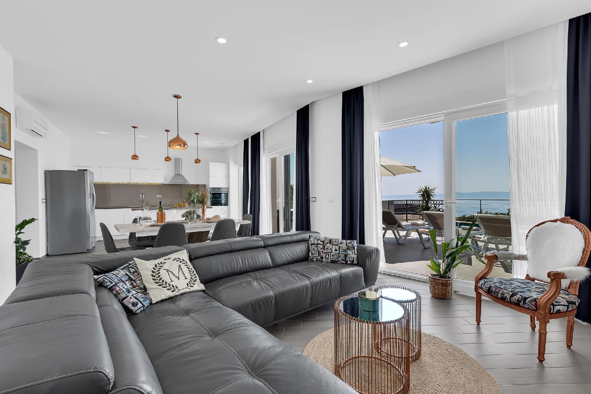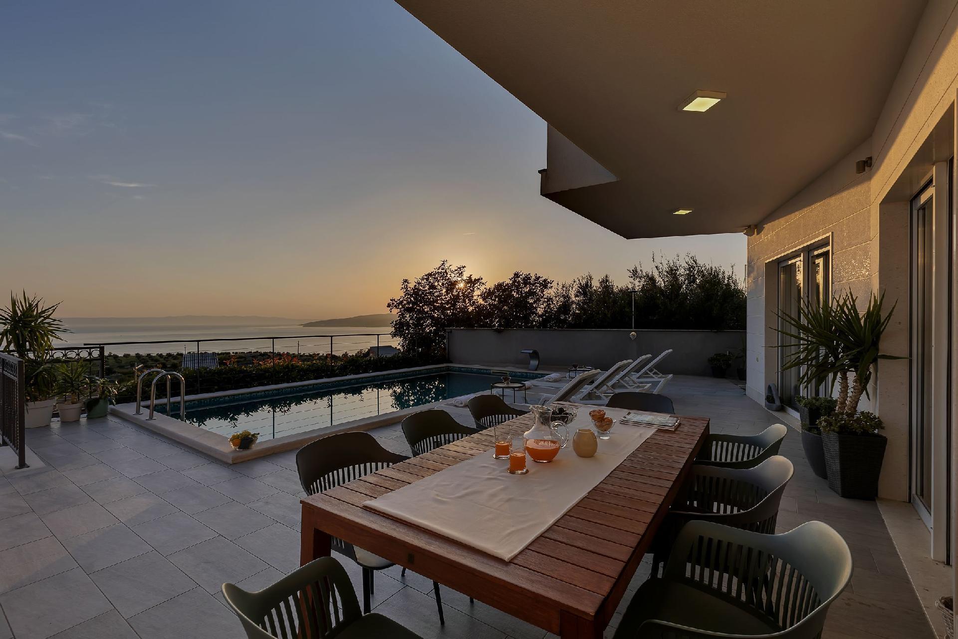 Villa M- umgeben von Natur mit beheiztem Pool & Sportplatz Die charmante & luxuriöse Familienvilla in Makarska (6+2) ist perfekt für Familienurlaub. Mit einem schönen Panorama über die Adria und die Inseln Hvar und Brac, und doch nur eine kurze 5 Minuten Fahrt vom Zentrum von Makarska im Osten und Baška Voda und Brela im Westen, ist die Villa das herausragende zeitgenössische und moderne Haus über 4 Etagen, und die Einrichtung wurde von den Elementen des Meeres inspiriert. Beruhigende Farben, Steine und Elemente der alten Geschichte schaffen eine entspannende Atmosphäre. Mit privatem Pool und Sportplatz, können Sie Ihren Tag mit Sonne und Lachen füllen. Umgeben von Natur und geschützt durch den Berg Biokovo werden Sie sich sicher und geschützt fühlen und wir werden sicherstellen, dass alle Ihre Bedürfnisse zu erfüllen.6 + 2 Personen.