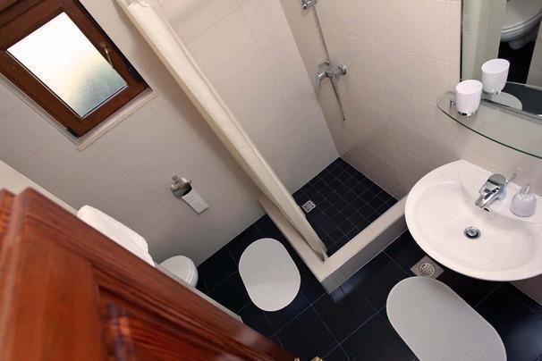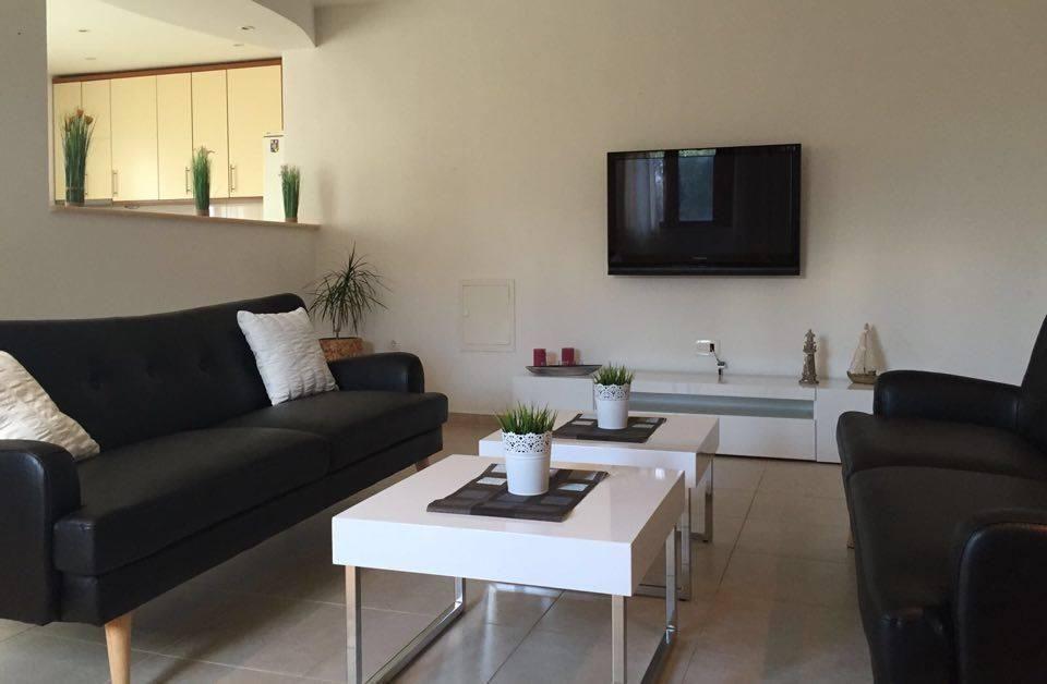Das Haus verfügt im Erdgeschoss über ein großes Schlafzimmer, ein großes Wohnzimmer mit angrenzender Küche und über zwei Bäder mit Dusche und WC. Die Küche ist ausgestattet mit Herd, Backofen, Kaffeemaschine, Spülmaschine und Kühlschrank mit Gefrierfach. Im oberen Geschoss befinden sich vier Schlafzimmer für jeweils zwei Personen und zwei Bäder mit Dusche und WC. Sämtliche Schlafzimmer bieten ein Doppelbett mit einer Breite von 1,60 m und einer Länge von 2,00 m. Es sind mehrere Fernseher mit Kabel-TV (kroatisches Fernsehen) sowie Sat.-TV auf zwei Satelliten (alle gängigen deutschen, englischen, französischen Sender und noch mehr) vorhanden. Klimaanlage und WLAN sind im ganzen Haus vorhanden. In einem speziellen Waschraum stehen eine Waschmaschine und ein Trockner bereit.