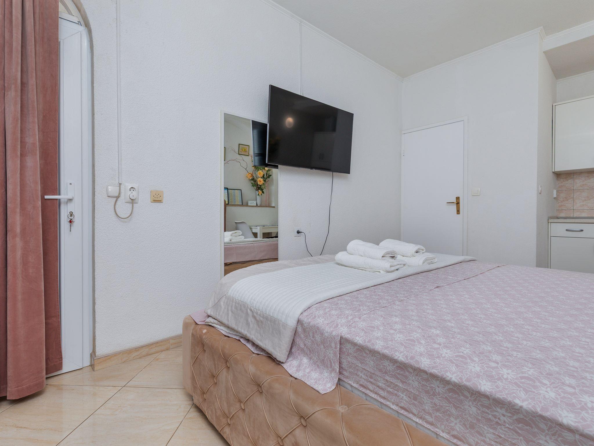 Studio bietet Platz für 2 Gäste. Die Betten sind in Schlafzimmern, die es 1 gibt, innerhalb einer Gesamtfläche von 18m2, angeordnet. Es ist erlaubt, Speisen auf dem Gemeinschafts-Grill vorzubereiten. Die reservierte Unterkunftseinheit hat keinen Balkon und keine Terrasse. IM PREIS INBEGRIFFEN: Kurtaxe, Endreinigung, Klimatisierung, Parkplatz, Internet, Wäschewaschen, Kinderbett, Bügeleisen, Bügelbrett, Föhn. VERBINDLICHE ZUSÄTZLICHE KOSTEN: Aufzahlung für Kurzaufenthalte (prozentualer Zuschlag pro Nächtigungsanzahl: 30% - 1, 20% - 2, 10% - 3). Die Verfügbarkeit zusätzlicher Dienstleistungen in Ihrem reservierten Termin und die Preise derselben (falls nicht aufgeführt) müssen im Voraus überprüft werden. Zusätzliche Dienstleistungen die in der Zahlungsaufforderung nicht aufgeführt sind werden direkt beim Vermieter bezahlt, angenommen der Gast nutzt auch diese. Ermäßigung auf den Grundpreis: Gratistag 14=13 (bei einem Aufenthalt von 14 Tagen oder mehr erhalten Sie einen Gratistag für den Aufenthalt bis 31.12.26).