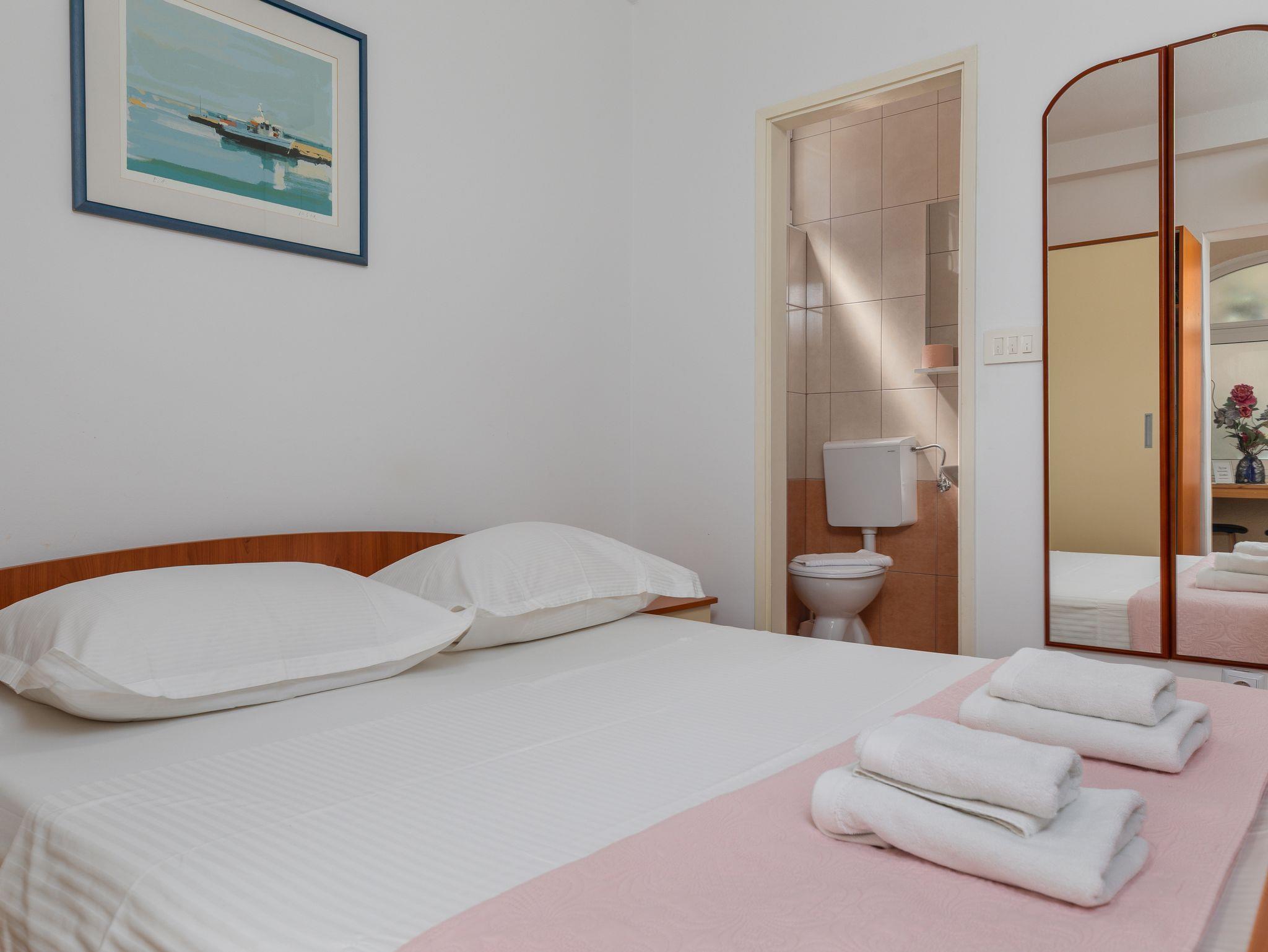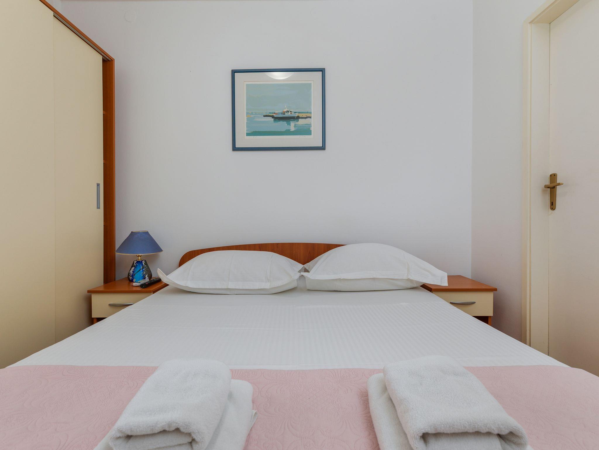 Studio bietet Platz für 2 Gäste. Die Betten sind in Schlafzimmern, die es 1 gibt, innerhalb einer Gesamtfläche von 20m2, angeordnet. Es ist erlaubt, Speisen auf dem Gemeinschafts-Grill vorzubereiten. Die reservierte Unterkunftseinheit hat keinen Balkon und keine Terrasse. IM PREIS INBEGRIFFEN: Kurtaxe, Endreinigung, Klimatisierung, Parkplatz, Internet, Wäschewaschen, Kinderbett, Bügeleisen, Bügelbrett, Föhn. VERBINDLICHE ZUSÄTZLICHE KOSTEN: Aufzahlung für Kurzaufenthalte (prozentualer Zuschlag pro Nächtigungsanzahl: 30% - 1, 20% - 2, 10% - 3). Die Verfügbarkeit zusätzlicher Dienstleistungen in Ihrem reservierten Termin und die Preise derselben (falls nicht aufgeführt) müssen im Voraus überprüft werden. Zusätzliche Dienstleistungen die in der Zahlungsaufforderung nicht aufgeführt sind werden direkt beim Vermieter bezahlt, angenommen der Gast nutzt auch diese. Ermäßigung auf den Grundpreis: Gratistag 14=13 (bei einem Aufenthalt von 14 Tagen oder mehr erhalten Sie einen Gratistag für den Aufenthalt bis 31.12.26).