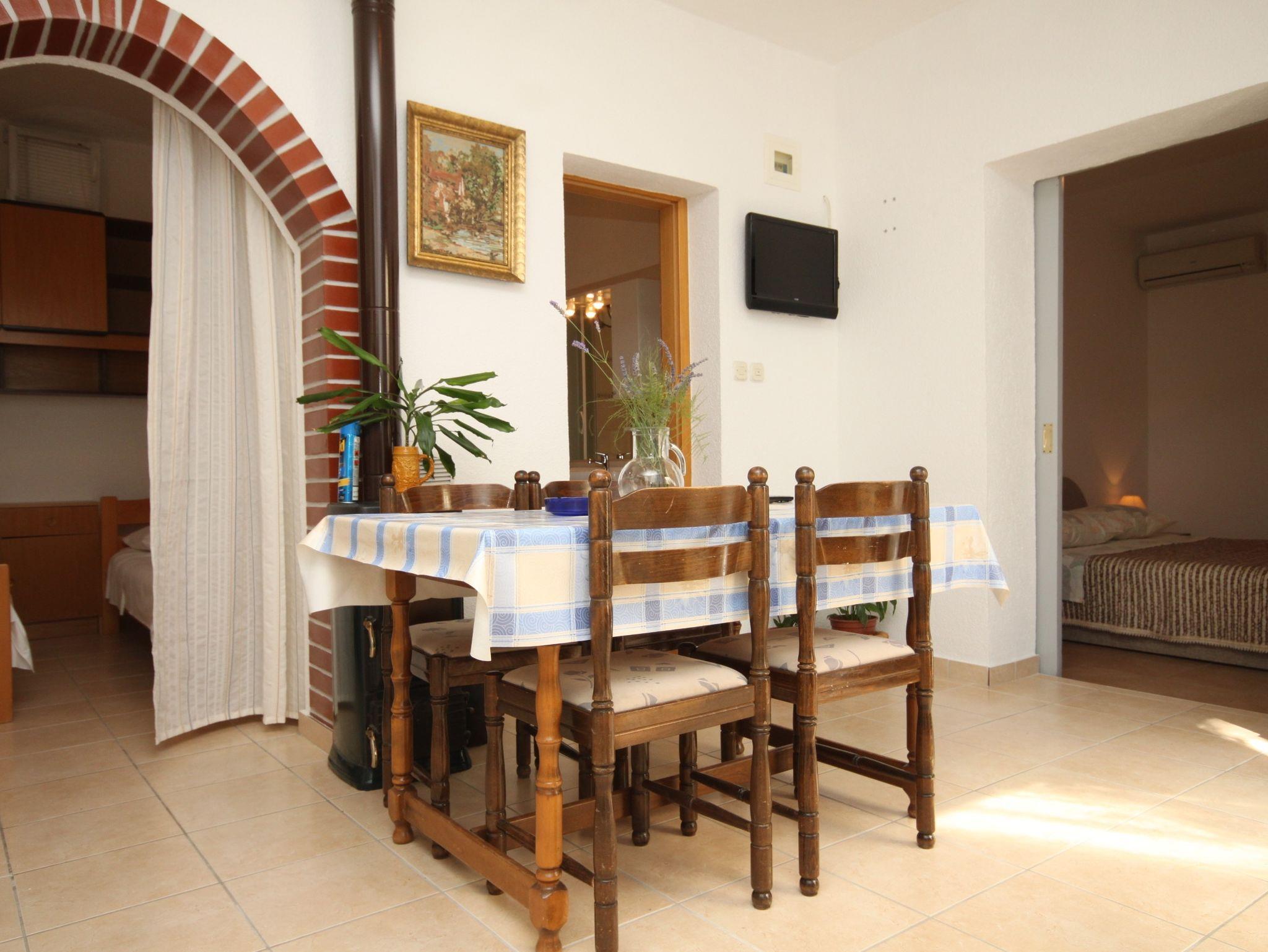 Ferienwohnung bietet Platz für 4 Gäste. Die Betten sind in Schlafzimmern, die es 1 gibt, und in Wohnzimmer, innerhalb einer Gesamtfläche von 37m2, angeordnet. Die Gäste haben eine eigene Terrasse zur Verfügung, auf der sie in warmen Sommernächten genießen können. Das Apartment bietet Meerblick. Es ist erlaubt, Speisen auf dem Gemeinschafts-Grill vorzubereiten. IM PREIS INBEGRIFFEN: Kurtaxe, Endreinigung, Klimatisierung, Parkplatz, Internet, Bügeleisen. VERBINDLICHE ZUSÄTZLICHE KOSTEN: Aufzahlung für Kurzaufenthalte (prozentualer Zuschlag pro Nächtigungsanzahl: 30% - 1, 20% - 2, 10% - 3). Die Verfügbarkeit zusätzlicher Dienstleistungen in Ihrem reservierten Termin und die Preise derselben (falls nicht aufgeführt) müssen im Voraus überprüft werden. Zusätzliche Dienstleistungen die in der Zahlungsaufforderung nicht aufgeführt sind werden direkt beim Vermieter bezahlt, angenommen der Gast nutzt auch diese.