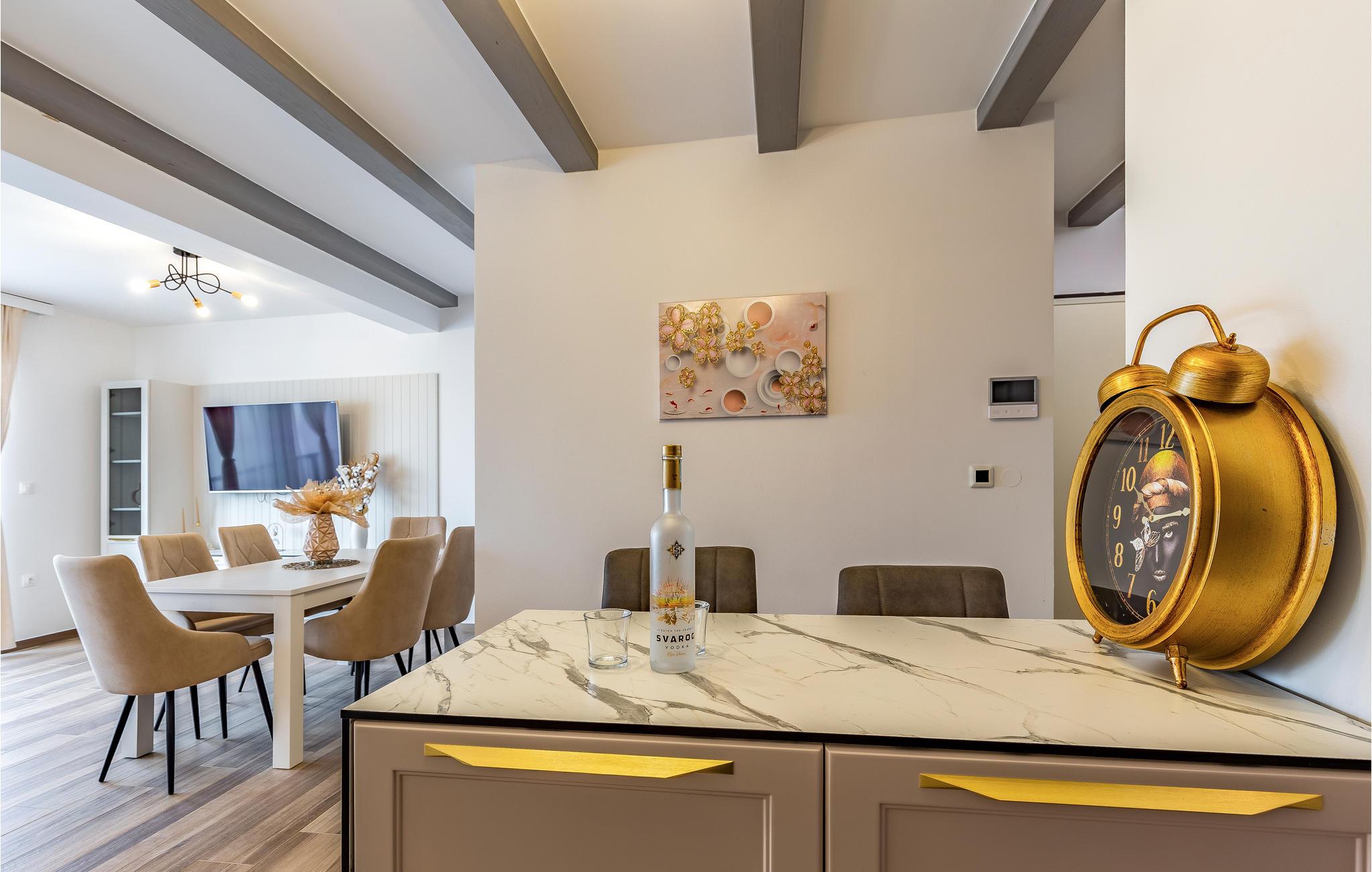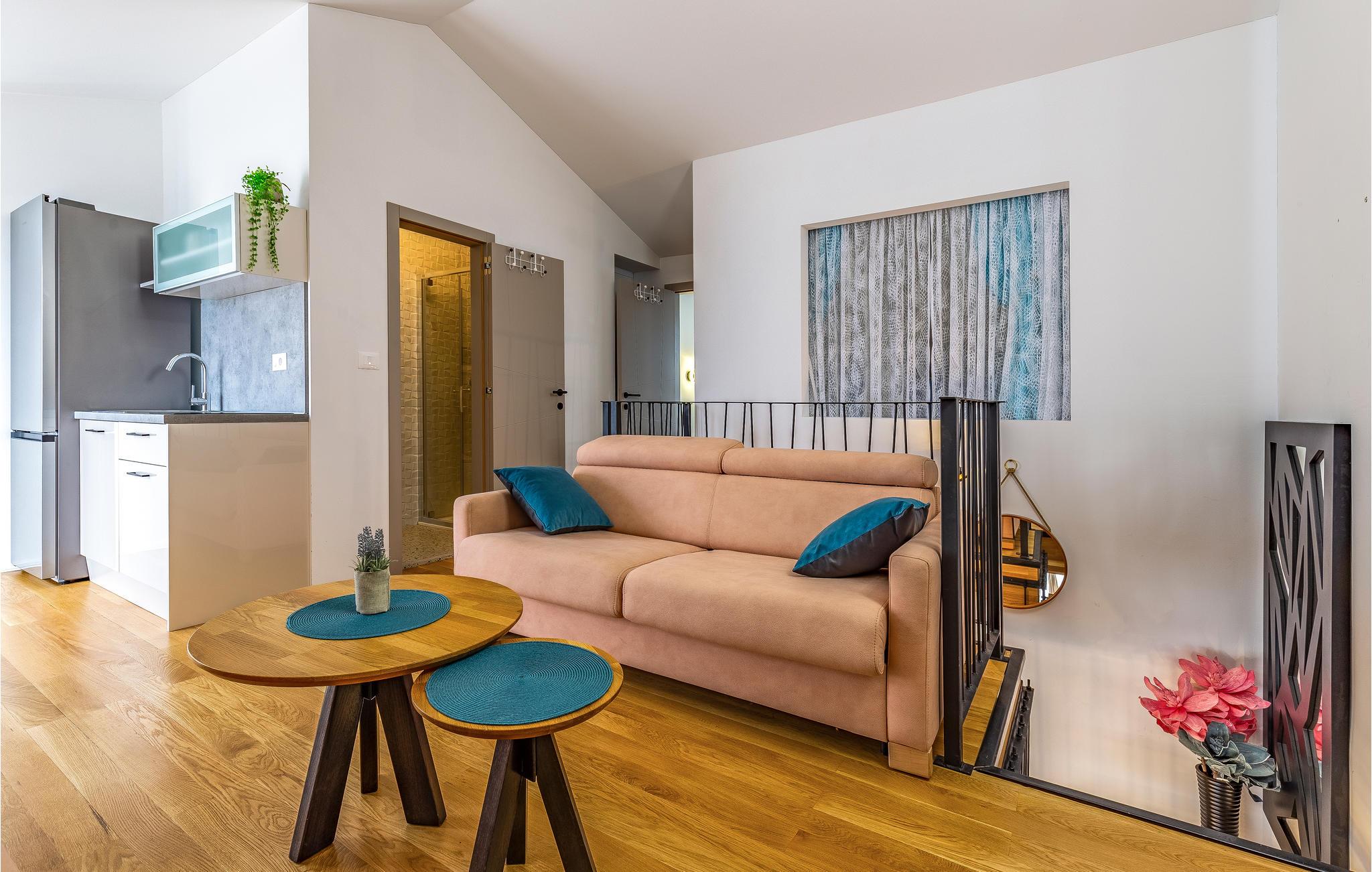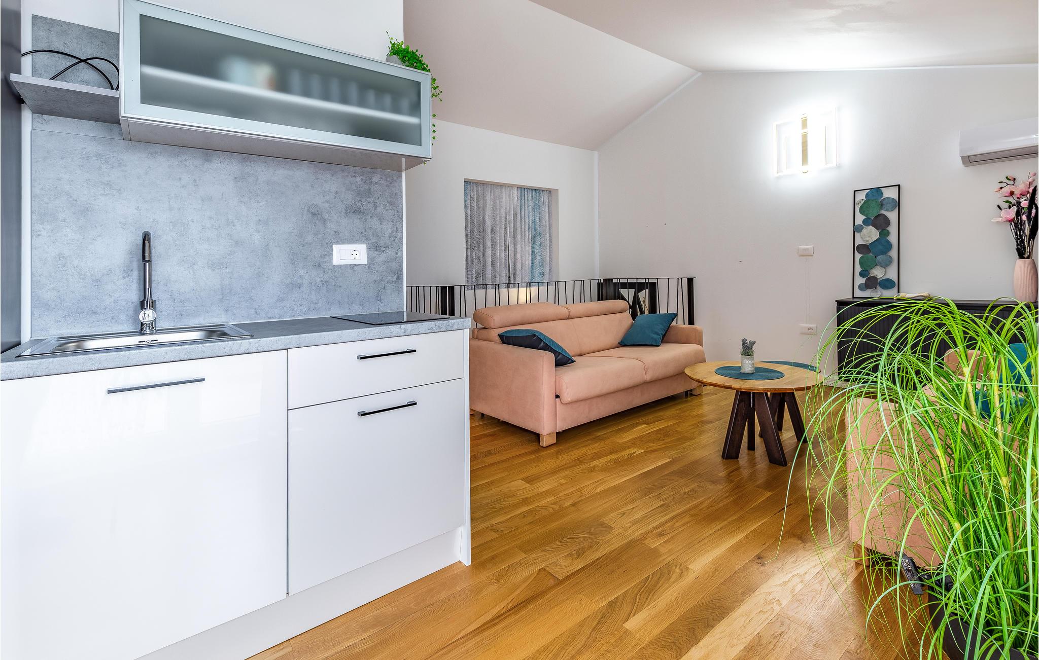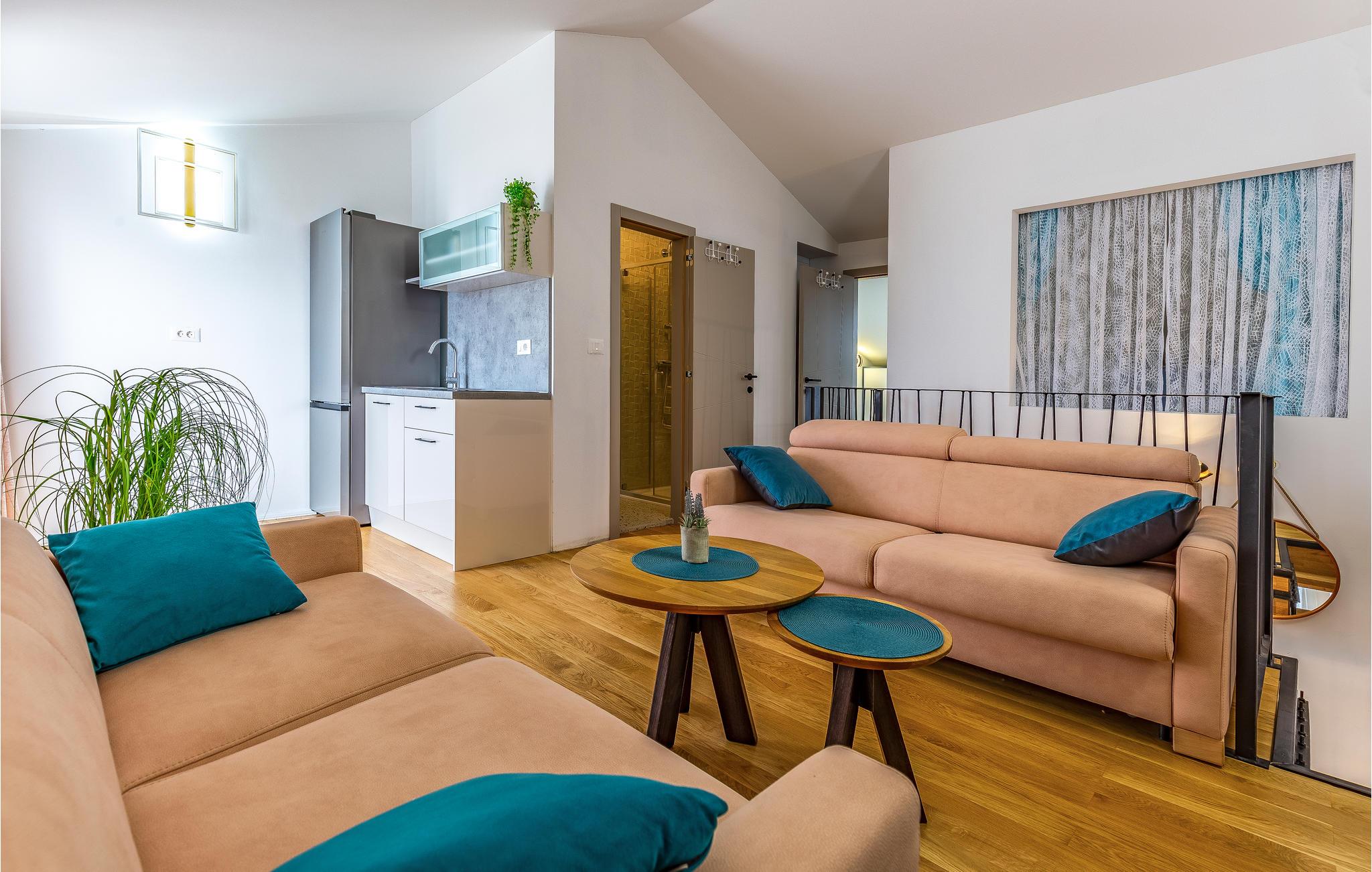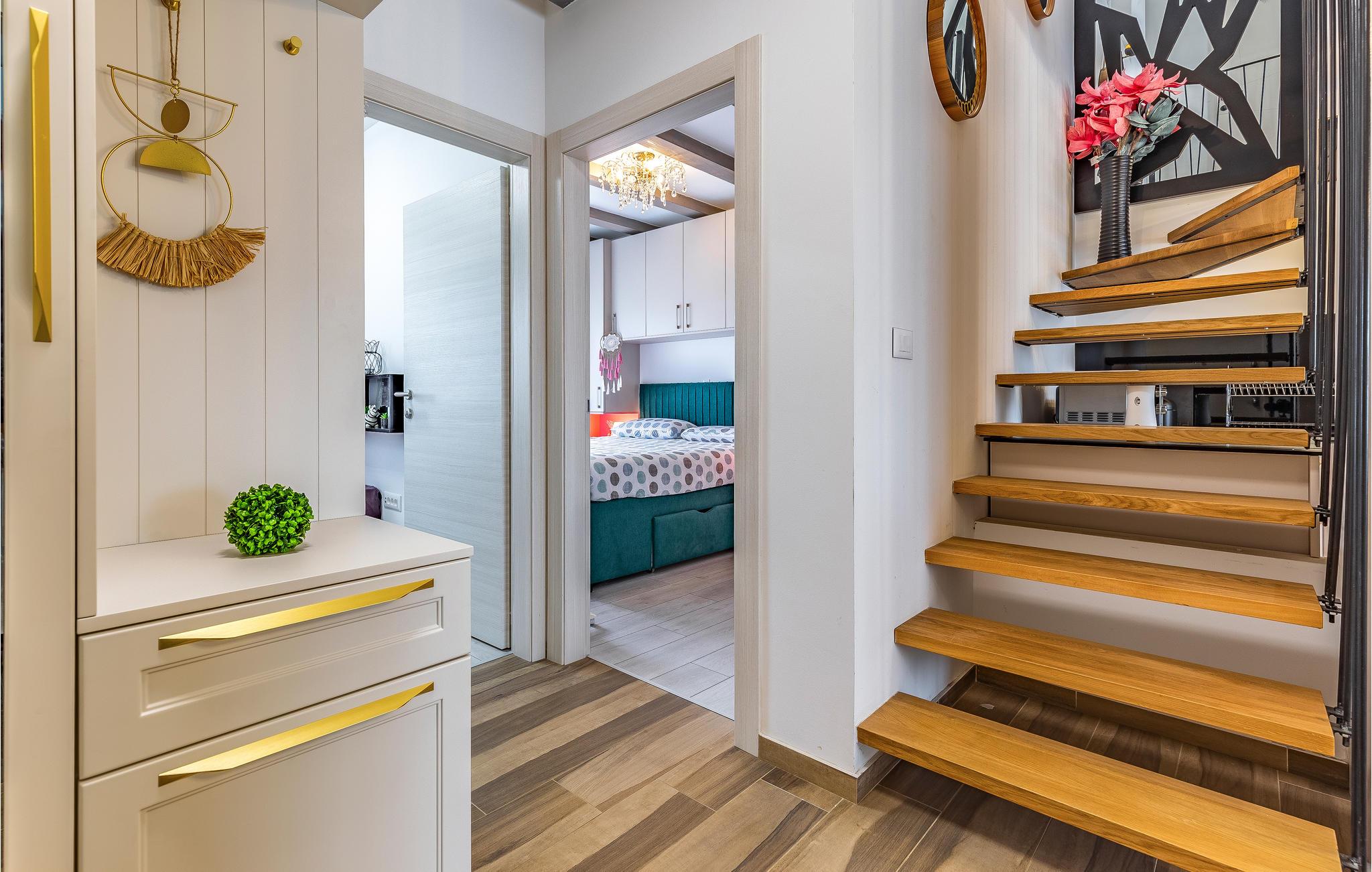 Freuen Sie sich mit Ihrer Großfamilie auf Ihren Urlaub in dieser modernen und komfortablen Wohnung. Auf zwei Etagen können Sie es sich gutgehen lassen und eine entspannte Atmosphäre in der Unterkunft genießen. Erholen Sie sich hier von Ihrem hektischen Alltag und lassen Ihre Alltagssorgen hinter sich und entspannen sich beim gemeinsamen Kochen, Spielen und Filmschauen. Ein Balkon und eine Dachterrasse bieten Ihnen optimale Bedingungen die Zeit bei einer Tasse Kaffee, einem außergewöhnlicher Meerblick und in der Sonne zu genießen.