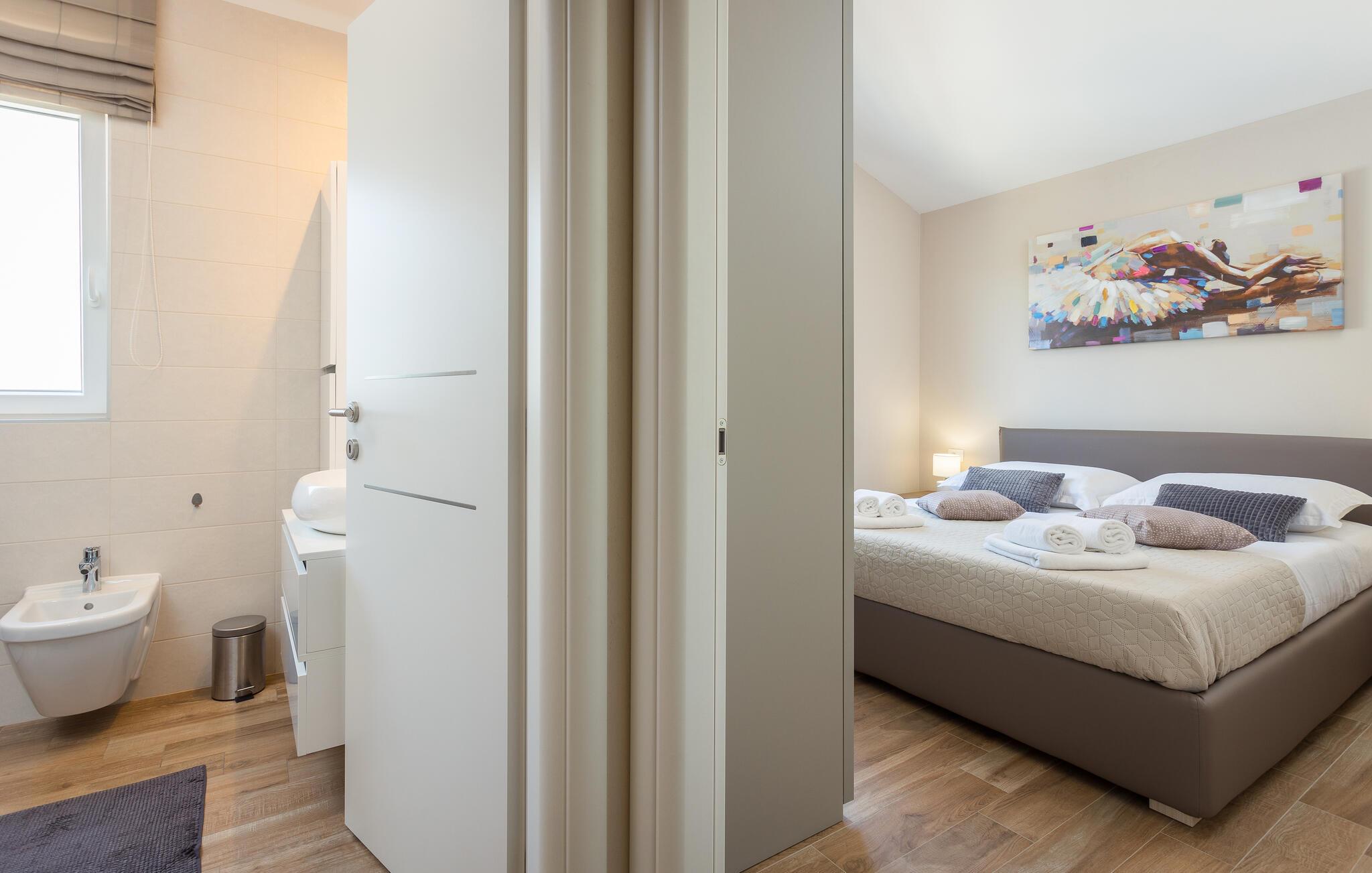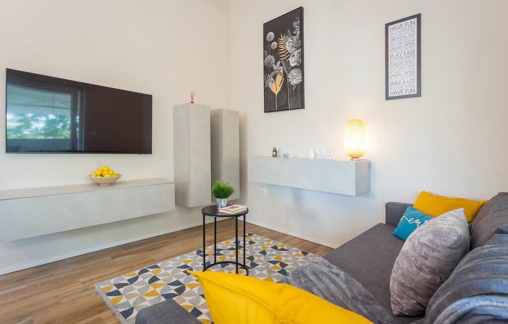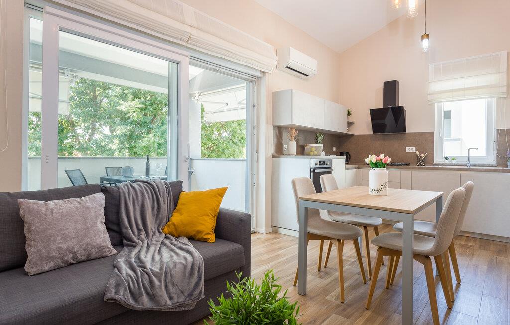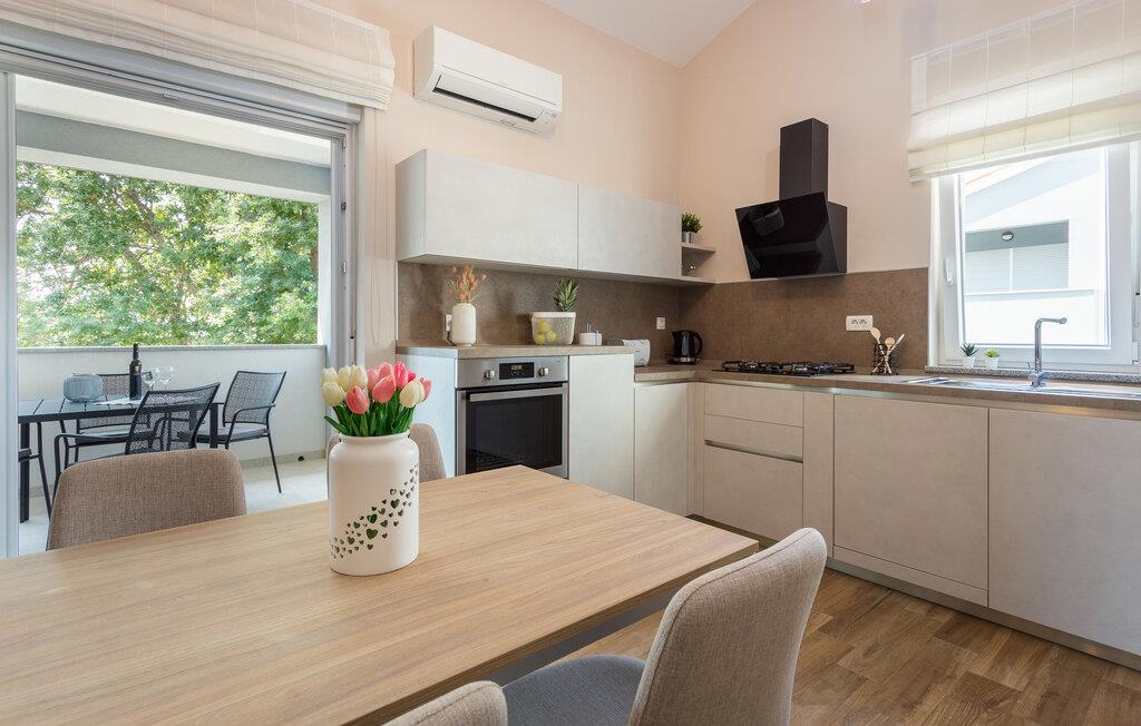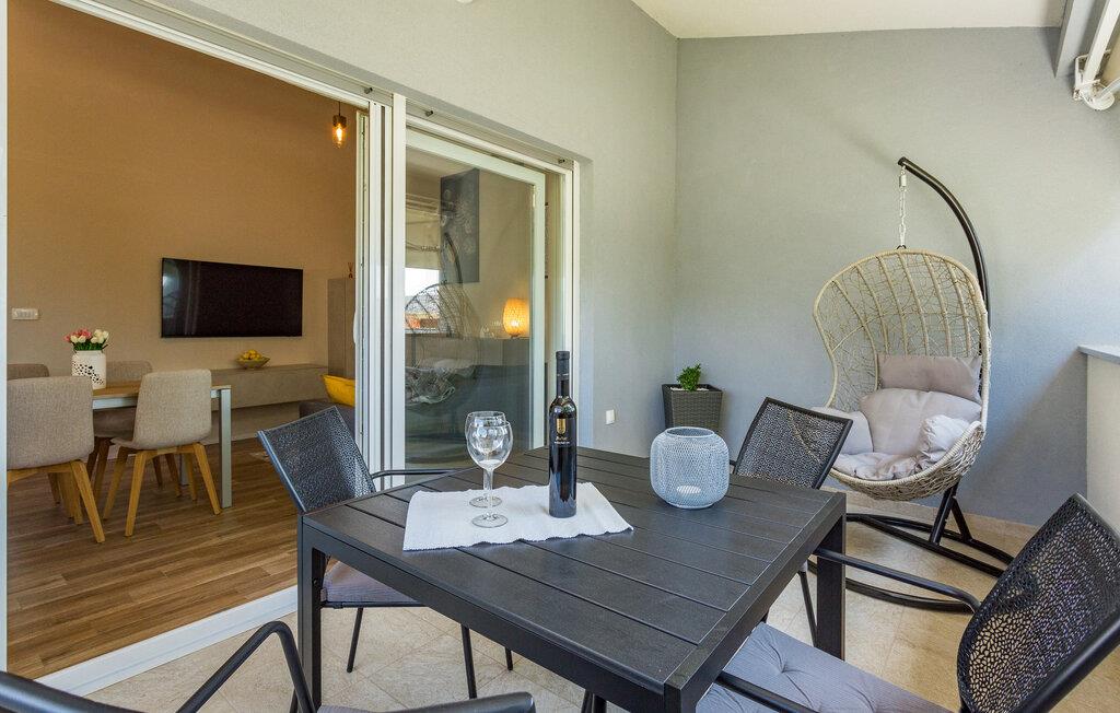 Erleben Sie in dieser hochwertig eingerichteten Ferienwohnung in Medulin Komfort und Stil in perfekter Harmonie. Die ruhige Lage und die große, einladende Terrasse bieten Ihnen ideale Bedingungen, um den Alltag hinter sich zu lassen. Die moderne und geschmackvolle Einrichtung kombiniert Eleganz mit Funktionalität, sodass Sie sich sofort wohlfühlen. Helle Räume, hochwertige Möbel und durchdachte Details schaffen eine entspannte, familiäre Atmosphäre, die besonders für Familien ein behagliches Urlaubsgefühl vermittelt.