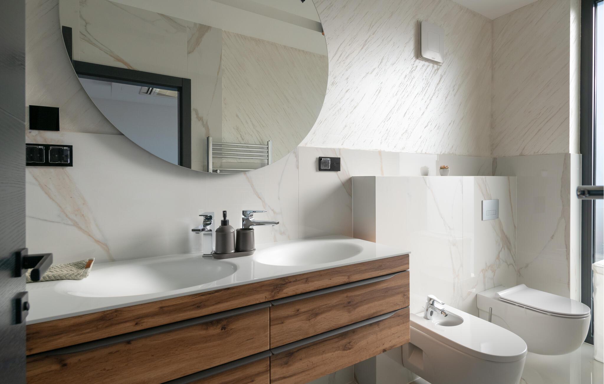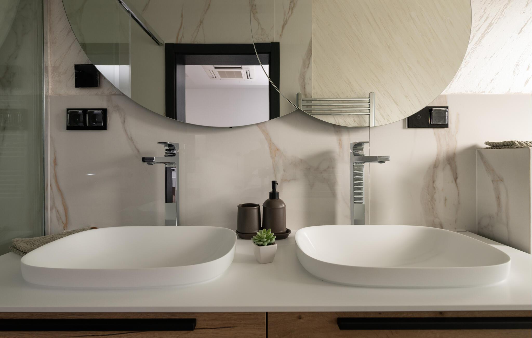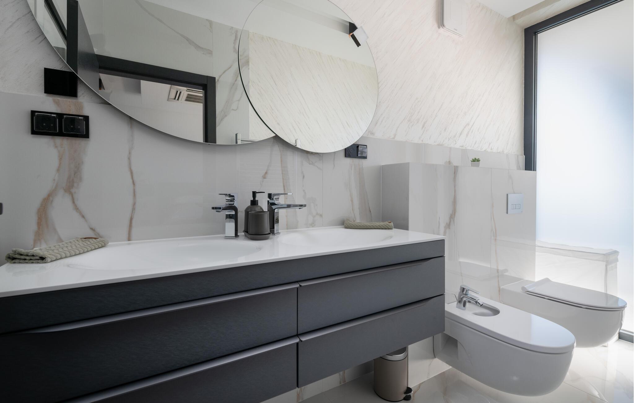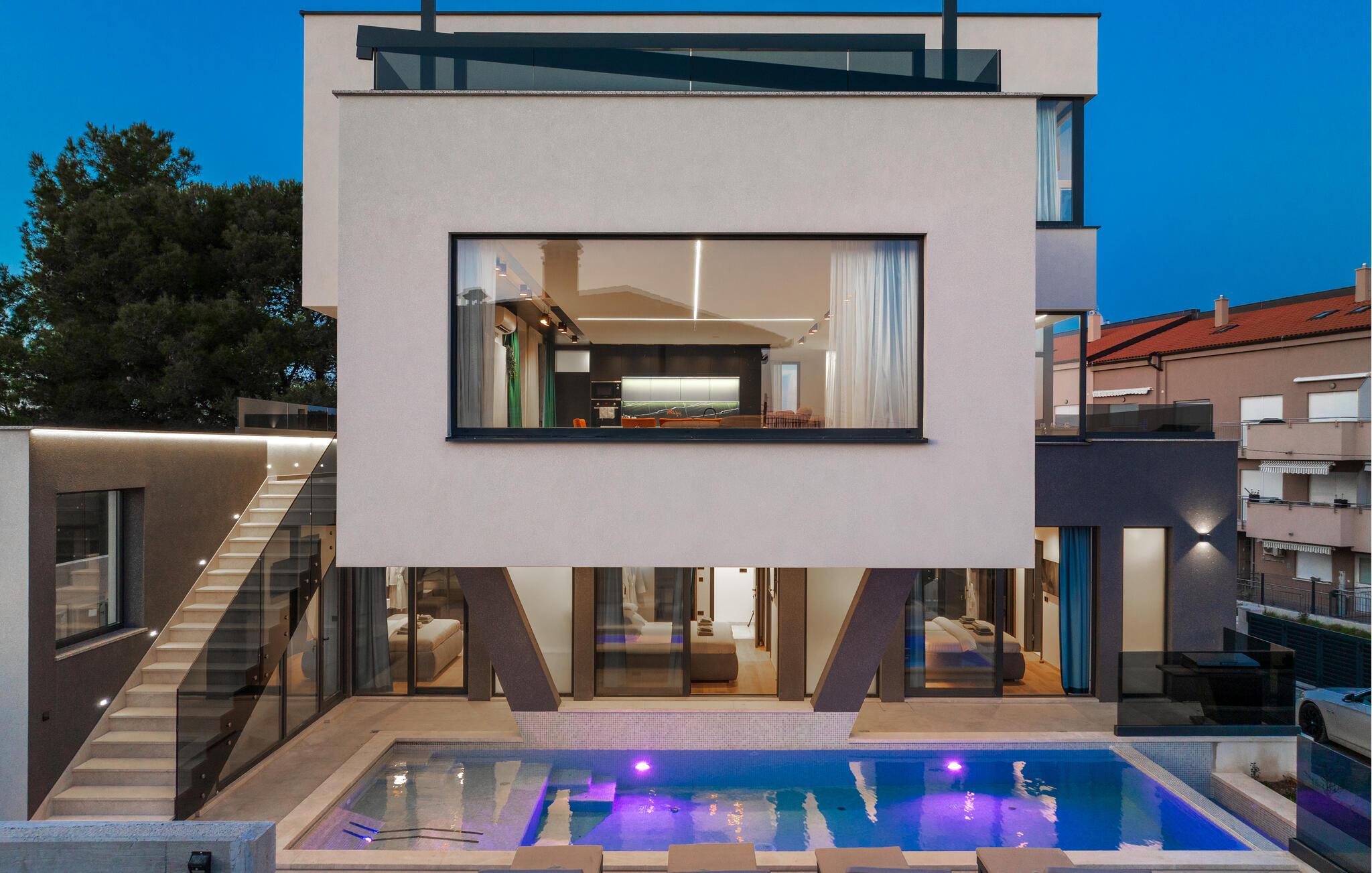 Tanken Sie neue Energie in dieser stilvollen Villa, die modernes Ambiente mit zeitloser Eleganz verbindet. Dank der bodentiefen Fenster fällt der Blick immer wieder auf das Meer, die mediterrane Umgebung und den fantastischen Poolbereich. Machen Sie es sich auf den hochwertigen Sofas gemütlich, schmökern Sie in einem spannenden Buch, genießen Sie einen Film oder entspannen Sie ganz in Ruhe bei einem Glas Wein. In der geschmackvollen Designküche lassen sich kulinarische Highlights zaubern – ideal für genussvolle Abende im kleinen oder großen Kreis.