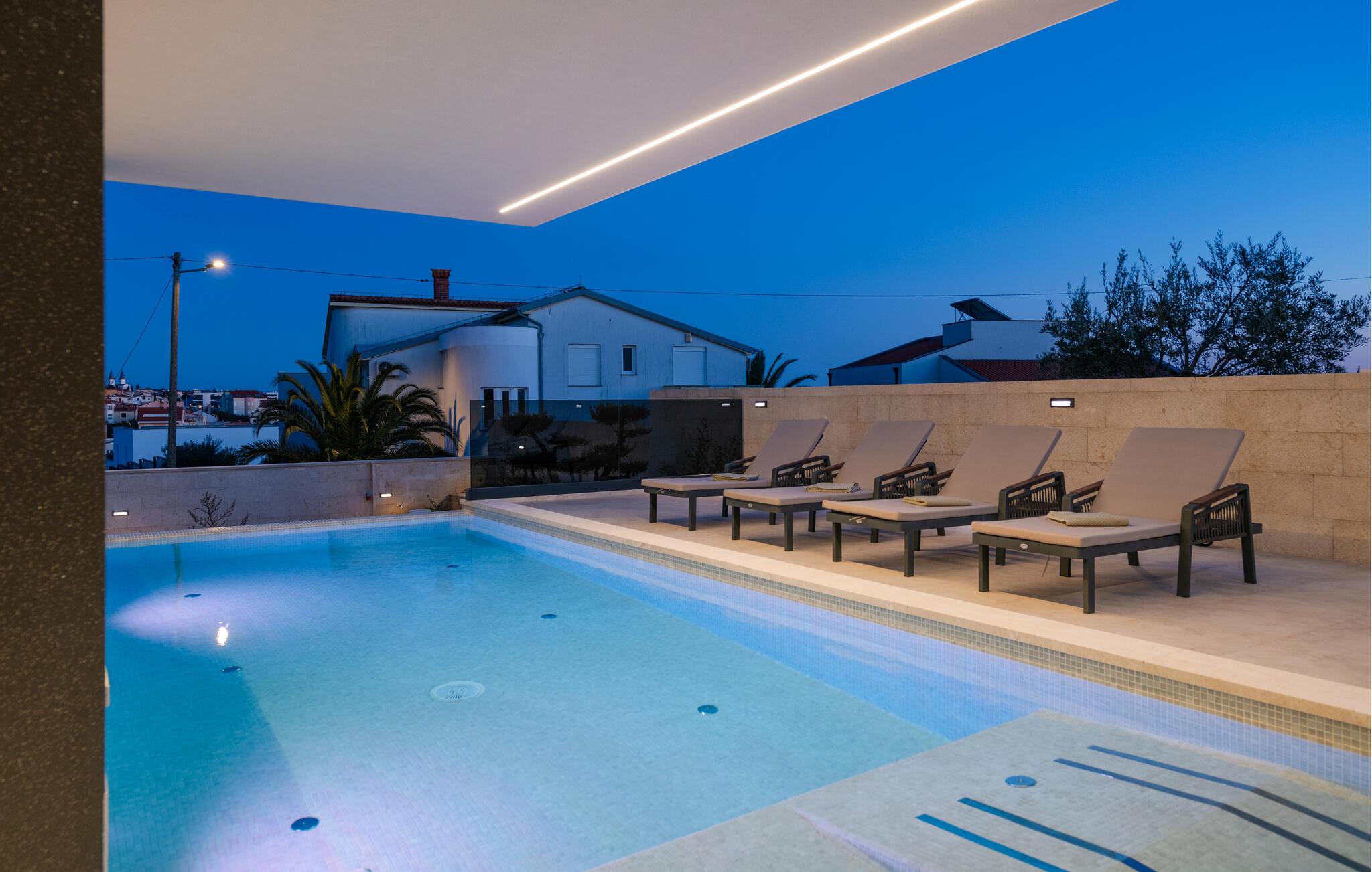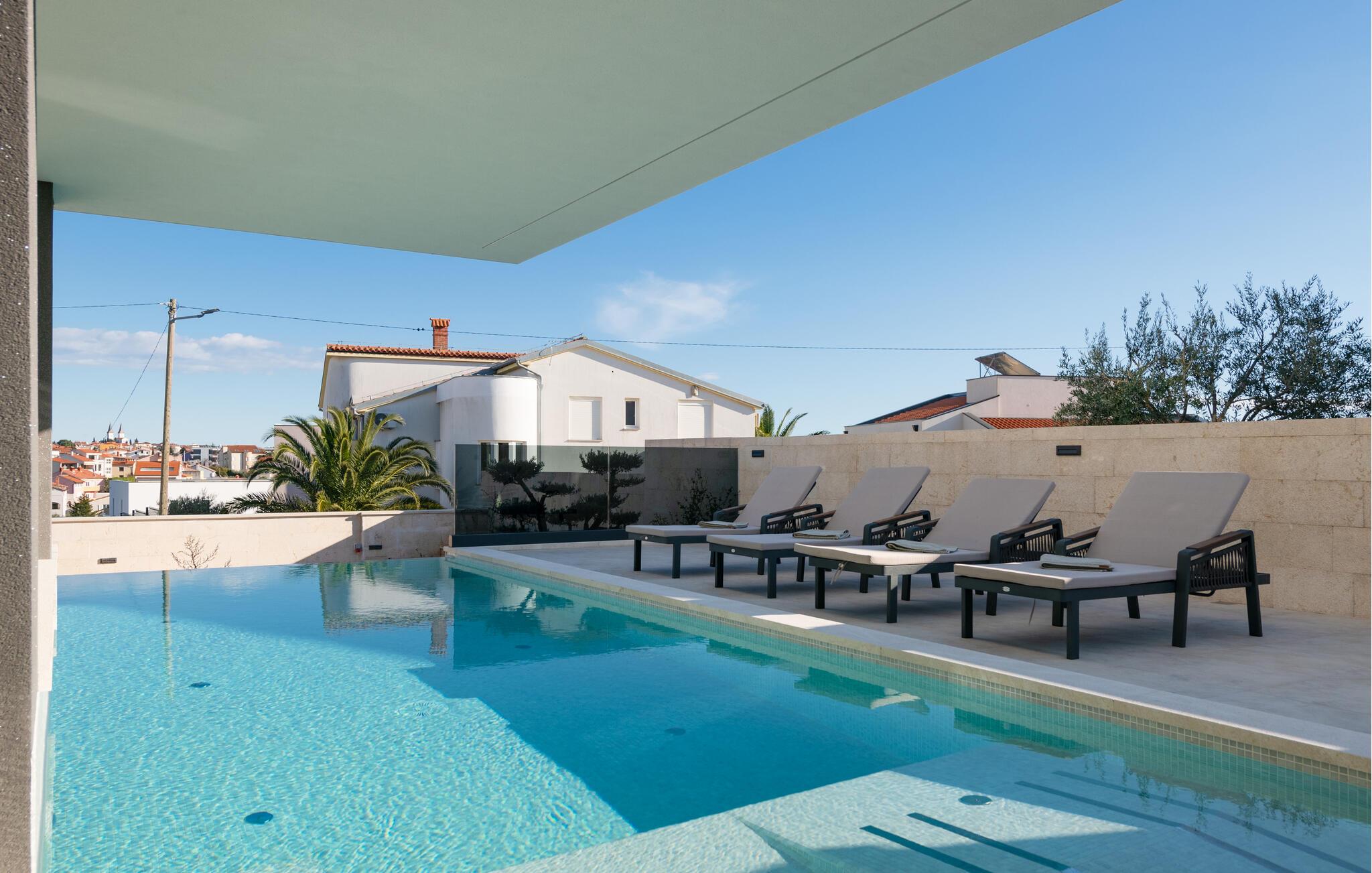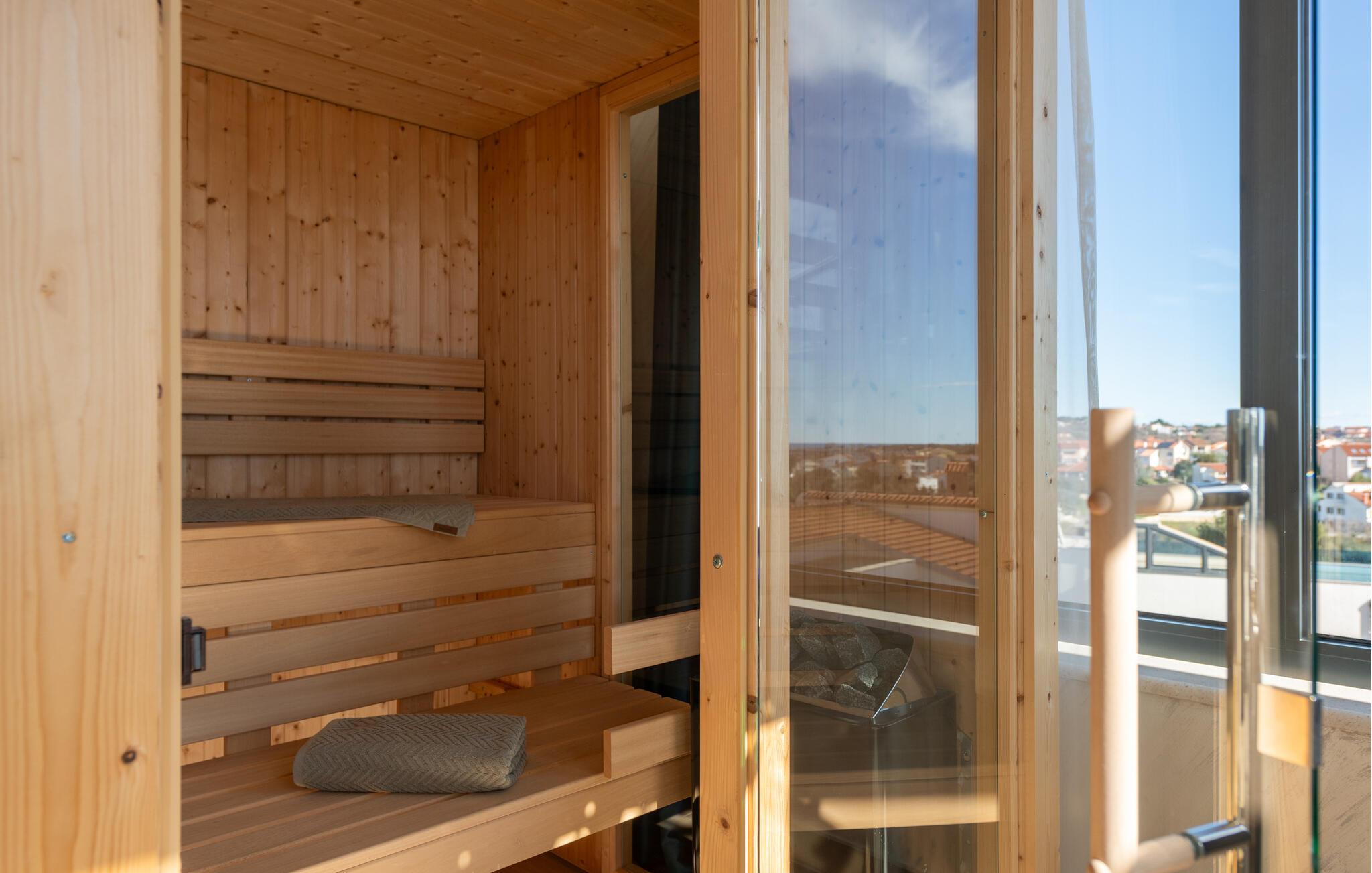 Gönnen Sie sich eine erfrischende Abkühlung im Pool oder entspannen Sie auf einer der Sonnenliegen unter Kroatiens Himmel. Genießen Sie Ruhe und Entspannung in der Sauna oder im Whirlpool. Wenn Sie aktiver sein möchten, kommen Sie im Fitnessraum in Bewegung. Lassen Sie anschließend den Tag bei guten Gesprächen und mit Blick in den Sonnenuntergang über dem Meer ausklingen.