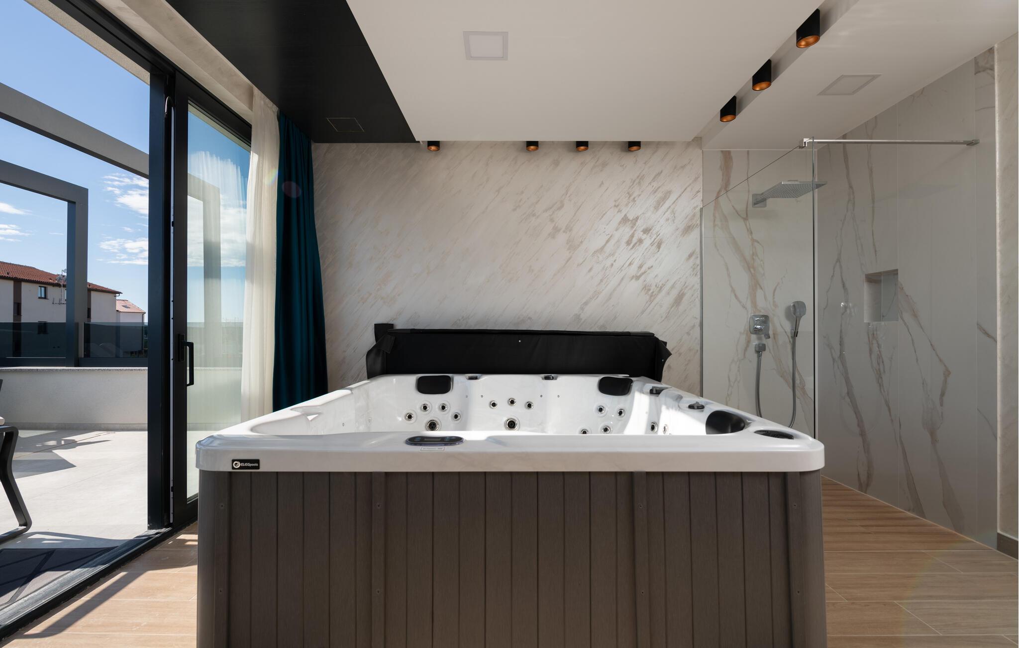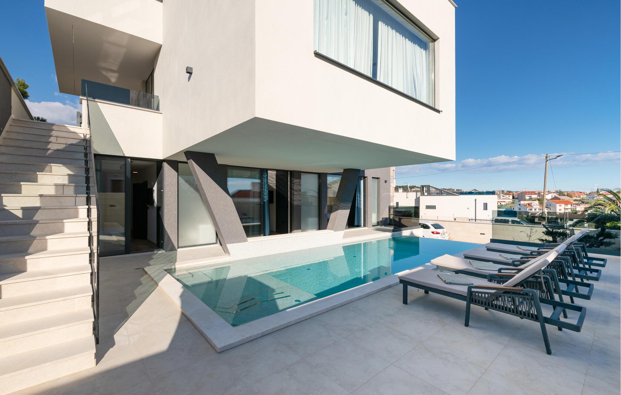 Verbringen Sie traumhafte Urlaubstage in dieser Luxusvilla am Meer und entspannen Sie sich im Pool, Whirlpool und in der Sauna.