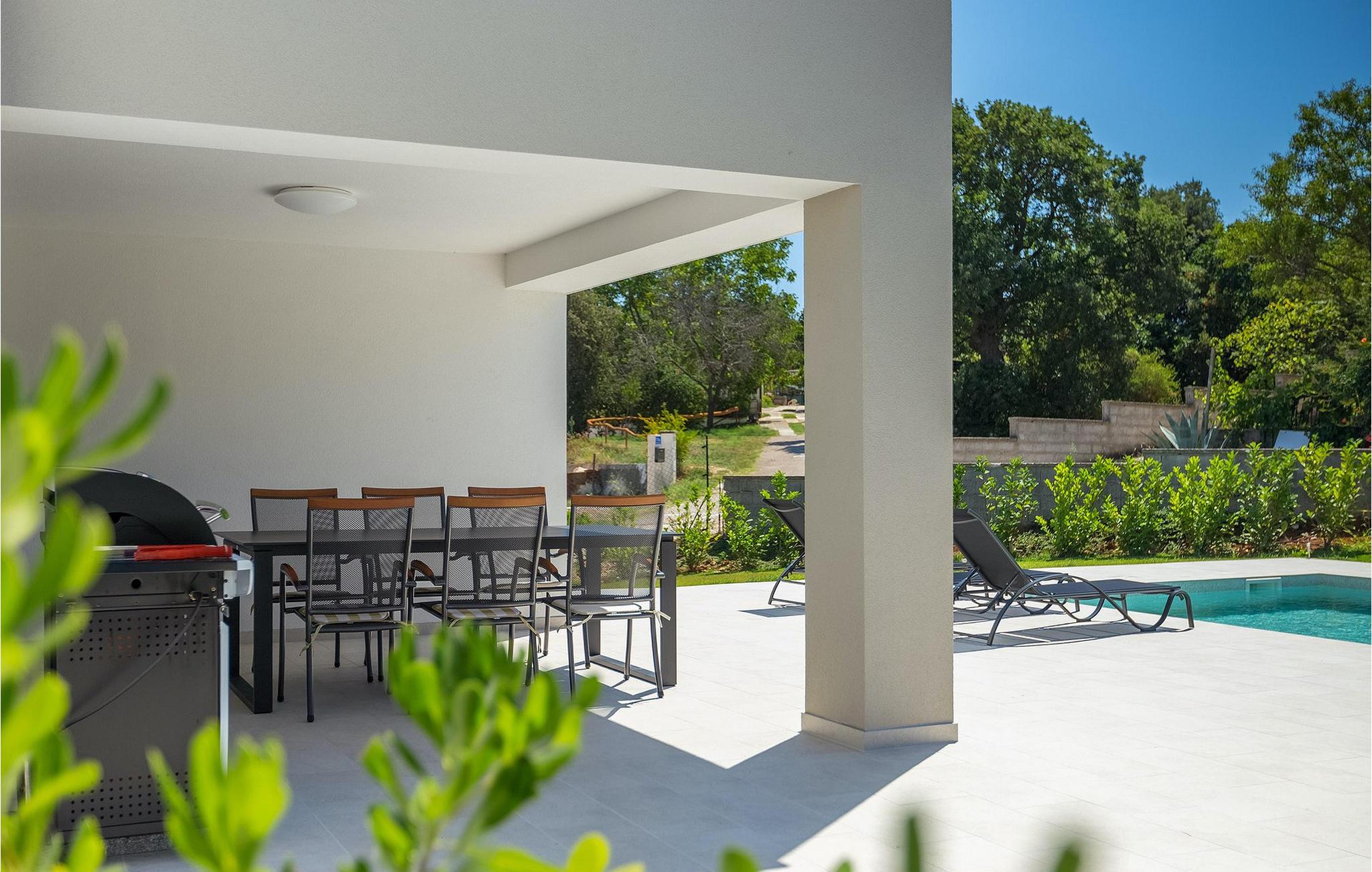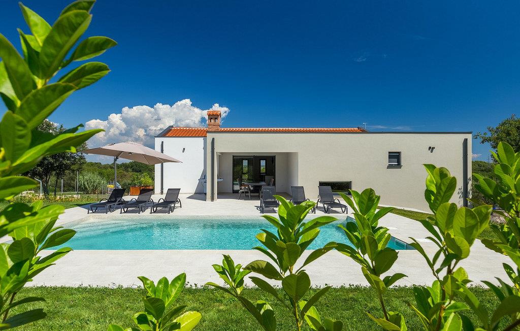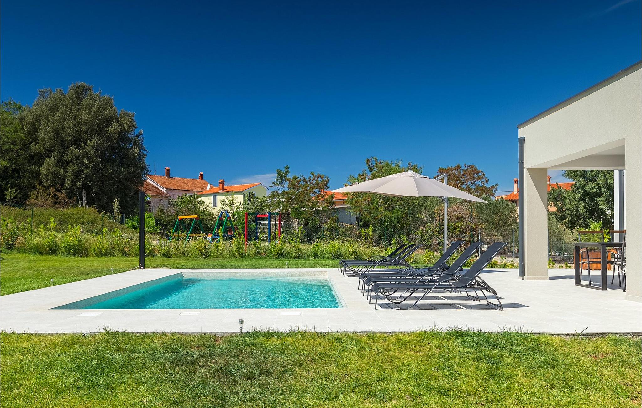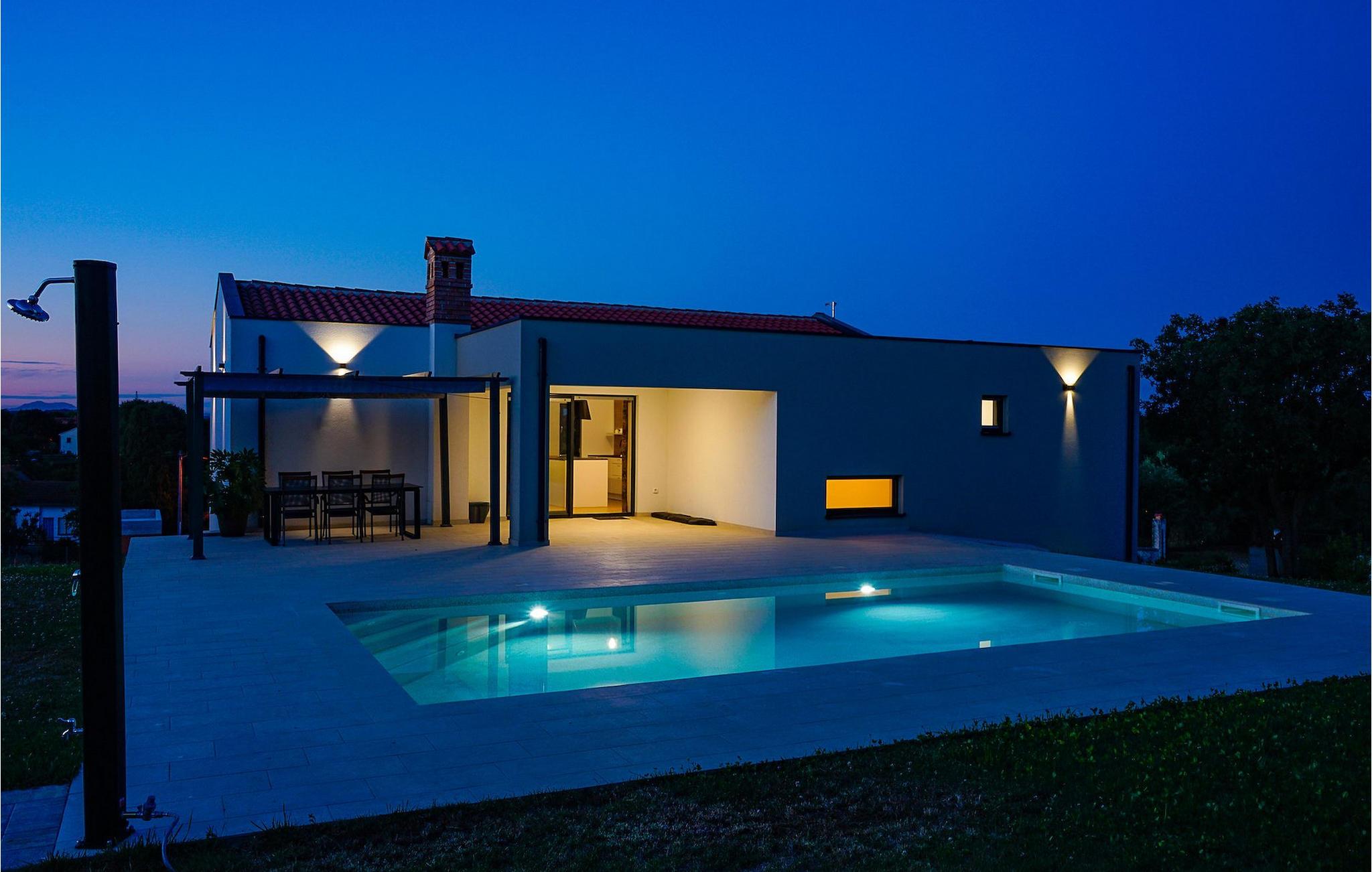 Die Villa Lia ist eine moderne Villa mit drei Schlafzimmern in Pula in der Nähe des Meeres mit privatem Pool, die Platz für bis zu sechs Personen bietet. Der Pool befindet sich im vollständig umzäunten Garten und ist von drei Seiten von schön gepflegten grünen Rasenfläche umgeben, an der Seite des Hauses stehen Liegestühlen zur verfügung. Während des Sommers ist der Pool der perfekte Ort, um sich am heißen Tagen erfrischen zu können. Auf den Liegestühlen können Sie sich entspannen und in der Sonne sonnen, während Sie ein kaltes und erfrischendes Getränk genießen. Neben dem Haus gibt es eine überdachte Terrasse mit einem Essbereich im Freien und einem Gasgrill, auf dem Sie großartige Gerichte zubereiten können. Vom Garten aus führt eine Treppe in den ersten Stock, wo Sie mit einem geräumigen, hellen und offenem Wohnbereich, einem Essbereisch und eine Küche begrüßt werden. Dort können Sie Spaß haben, ein paar Tischfüßballspiele spiele oder fernsehen, Familienessen genießen, die Sie in einer voll ausgestatteten Küche zubereitet haben, und sich während Ihres Urlaubs vollkommen entspannen. Die Innentreppen führen Sie ins Erdgeschoss, wo sich drei Schlafzimmer befinden die alle ein eigenes Bad haben. Von zwei Schlafzimmern aus haben Sie große Terrassenschiebetüren, die tagesüber vile Tageslicht bieten, direkten Zugang zum Garten. Das Erdgeschoss hat einen separaten Eingang vom Garten aus.Die Villa Lia befindet sich auserhalb der Antiken Küstenstadt Pula, die Heute einer der Haupt Turistenstädte in Kroatien ist. Die Stadt Pula wurde während des Römischen Reiches gebaut und ist Heute in der ganzen Welt für ihre Arena bekannt, ein altes Anfiteatar das während des ersten Jahrhunderts gebaut wurde. In der Stadt Pula gibt es auch viele andere Sehenswürdigkeiten wie z.B. der Augustus Tempel, das kleine Römisches Teater und die Goldene Tür. Genießen Sie die Spezialitäten die die Stadt bietet. Rund um die Stadt befinden sich viele schöne Strände, Sie haben auch die Gelegenheit einen Bootausflüg zum Nationalpark Brijuni zu machen.