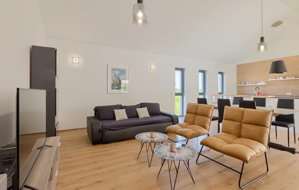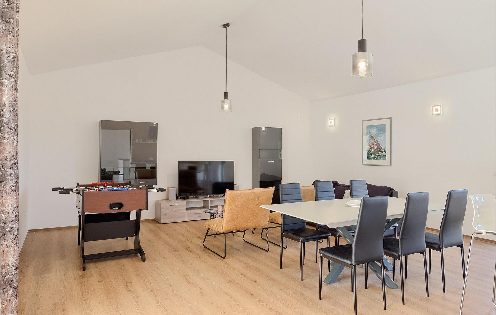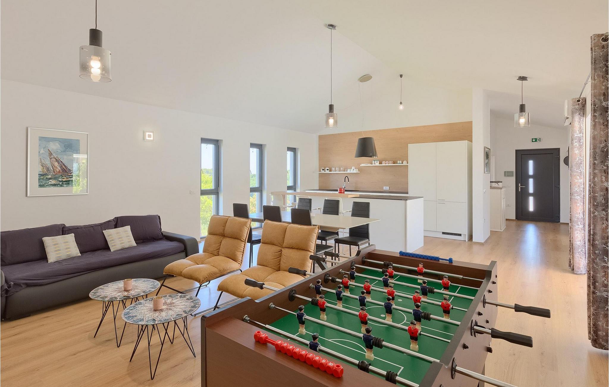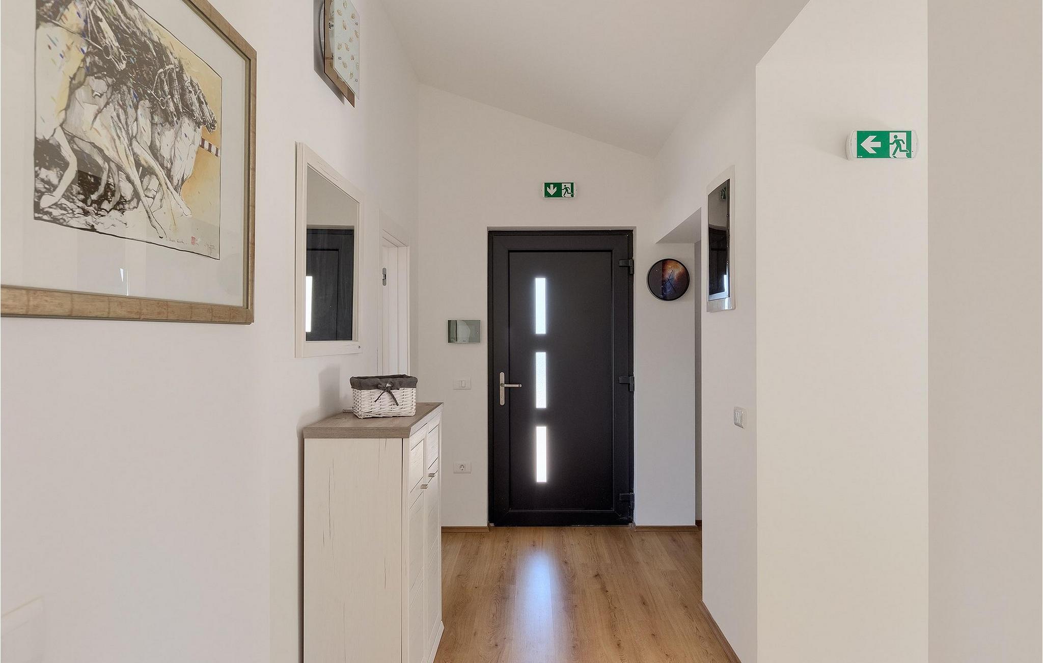 Die Villa Lia ist eine moderne Villa mit drei Schlafzimmern in Pula in der Nähe des Meeres mit privatem Pool, die Platz für bis zu sechs Personen bietet. Der Pool befindet sich im vollständig umzäunten Garten und ist von drei Seiten von schön gepflegten grünen Rasenfläche umgeben, an der Seite des Hauses stehen Liegestühlen zur verfügung. Während des Sommers ist der Pool der perfekte Ort, um sich am heißen Tagen erfrischen zu können. Auf den Liegestühlen können Sie sich entspannen und in der Sonne sonnen, während Sie ein kaltes und erfrischendes Getränk genießen. Neben dem Haus gibt es eine überdachte Terrasse mit einem Essbereich im Freien und einem Gasgrill, auf dem Sie großartige Gerichte zubereiten können. Vom Garten aus führt eine Treppe in den ersten Stock, wo Sie mit einem geräumigen, hellen und offenem Wohnbereich, einem Essbereisch und eine Küche begrüßt werden. Dort können Sie Spaß haben, ein paar Tischfüßballspiele spiele oder fernsehen, Familienessen genießen, die Sie in einer voll ausgestatteten Küche zubereitet haben, und sich während Ihres Urlaubs vollkommen entspannen. Die Innentreppen führen Sie ins Erdgeschoss, wo sich drei Schlafzimmer befinden die alle ein eigenes Bad haben. Von zwei Schlafzimmern aus haben Sie große Terrassenschiebetüren, die tagesüber vile Tageslicht bieten, direkten Zugang zum Garten. Das Erdgeschoss hat einen separaten Eingang vom Garten aus.Die Villa Lia befindet sich auserhalb der Antiken Küstenstadt Pula, die Heute einer der Haupt Turistenstädte in Kroatien ist. Die Stadt Pula wurde während des Römischen Reiches gebaut und ist Heute in der ganzen Welt für ihre Arena bekannt, ein altes Anfiteatar das während des ersten Jahrhunderts gebaut wurde. In der Stadt Pula gibt es auch viele andere Sehenswürdigkeiten wie z.B. der Augustus Tempel, das kleine Römisches Teater und die Goldene Tür. Genießen Sie die Spezialitäten die die Stadt bietet. Rund um die Stadt befinden sich viele schöne Strände, Sie haben auch die Gelegenheit einen Bootausflüg zum Nationalpark Brijuni zu machen.