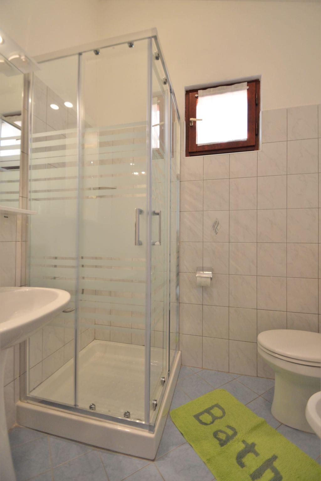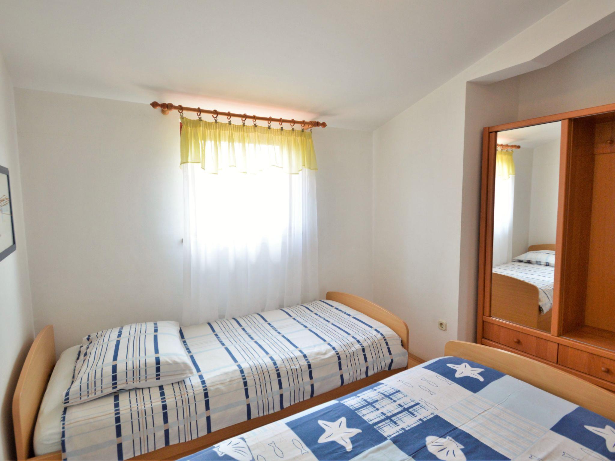 "Denise", 3-Zimmer-Wohnung 54 m2 im 1. Stock. Wohn-/Esszimmer mit 1 Diwanbett und Klimaanlage. Ausgang zur Loggia. 1 Zimmer mit 1 franz. Bett (160 cm). 1 Zimmer mit 2 Betten. Offene Küche (2 Kochplatten, Toaster, Wasserkocher, Mikrowelle, Tiefkühler, elektrische Kaffeemaschine). Dusche/WC. Klimaanlage (extra). Keine Heizmöglichkeit. Balkonmöbel, Loggia. Eingeschränkte Sicht auf das Meer. Zur Verfügung: Internet (Wireless LAN, gratis). Parkplatz (überdacht, 1 Auto). Bitte beachten: Nichtraucher-Unterkunft.