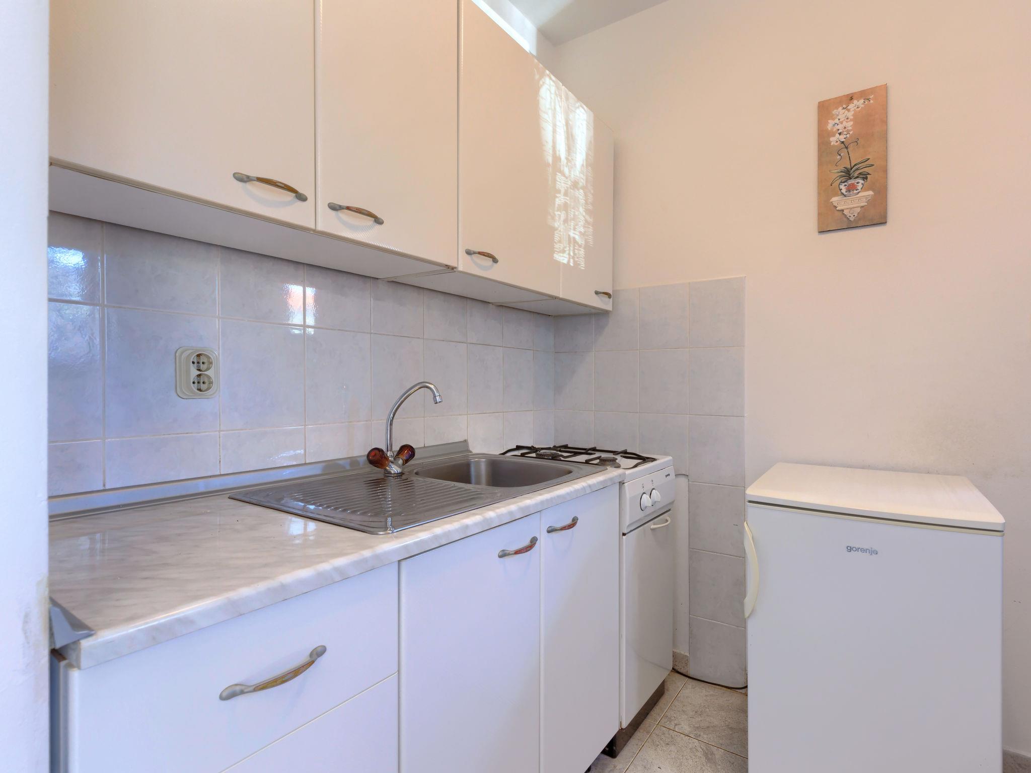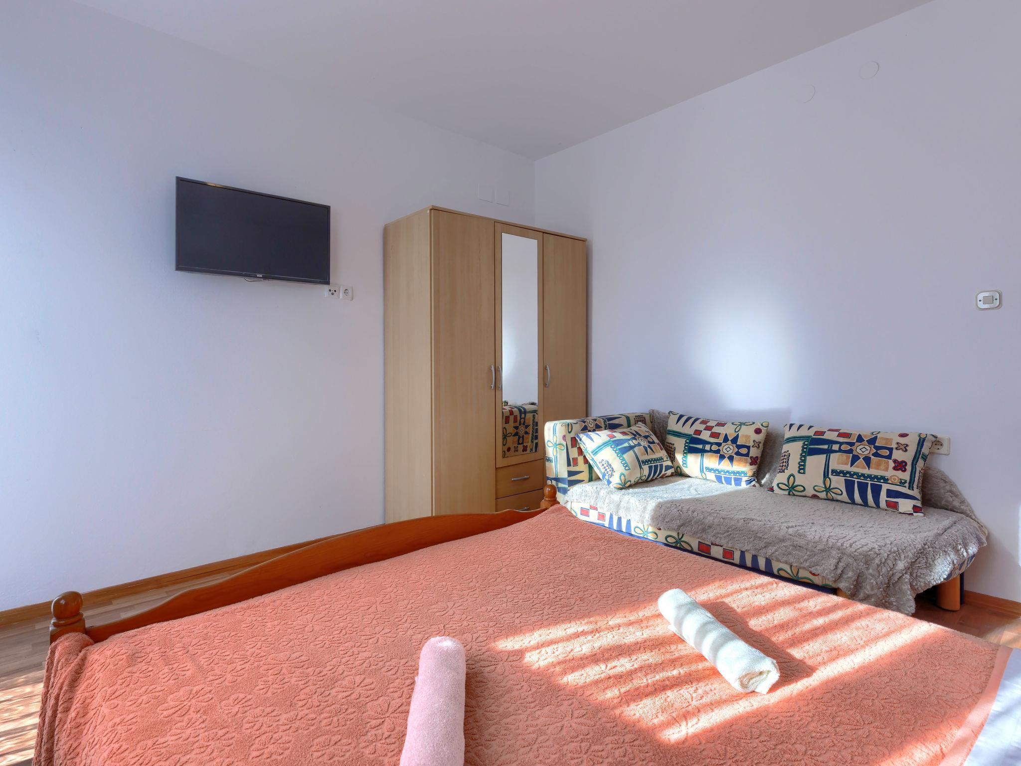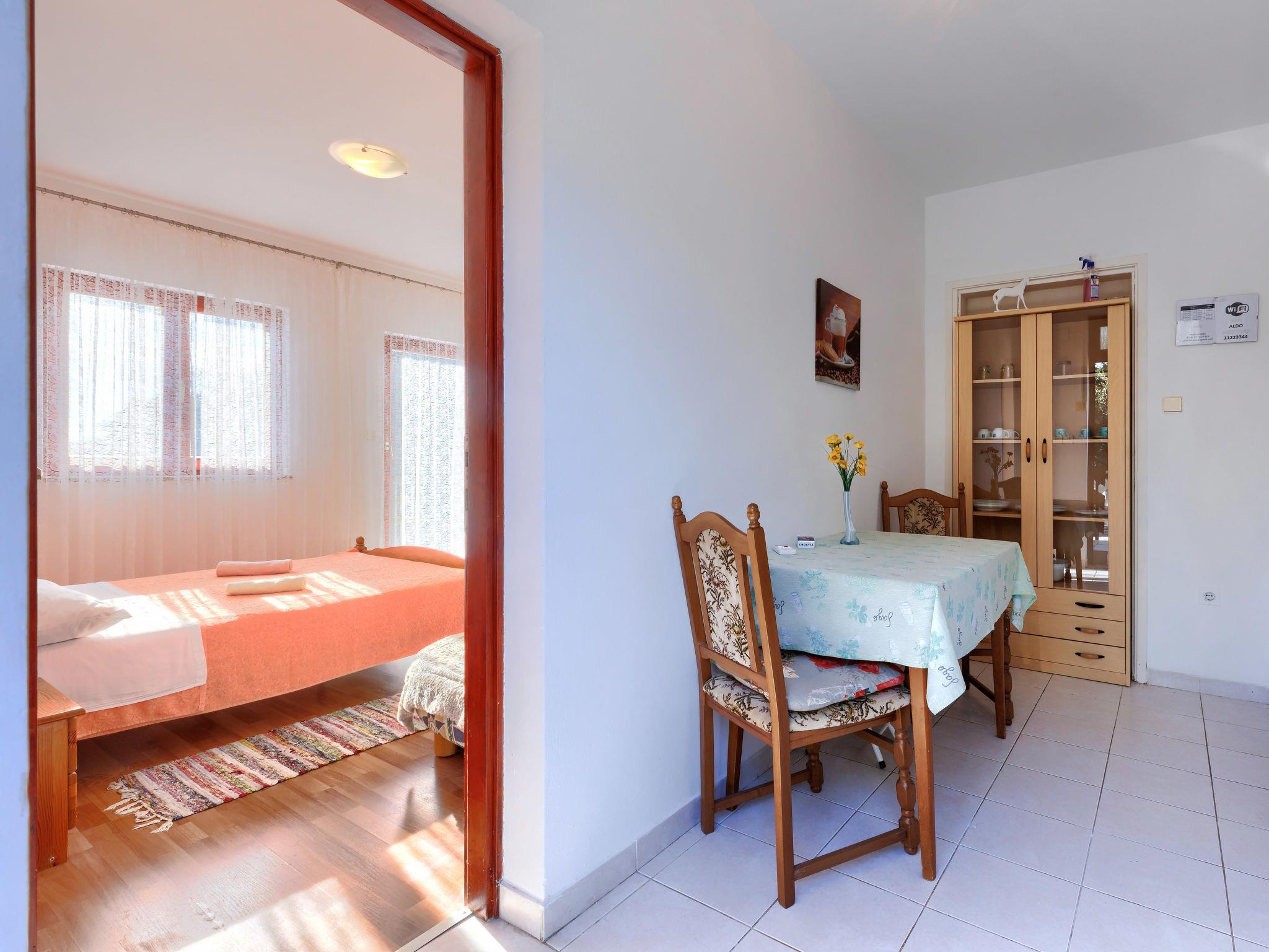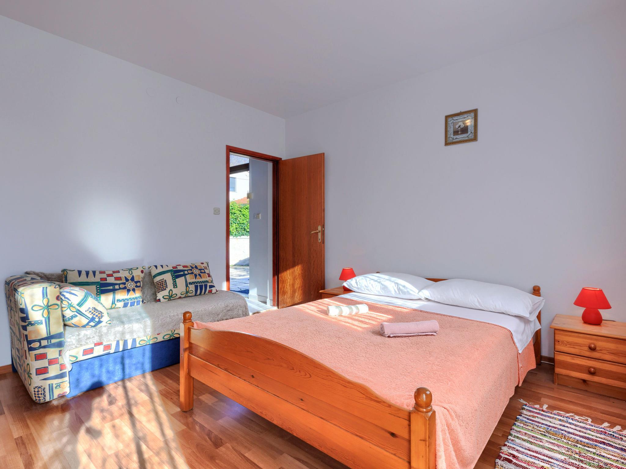 "Perkovic", 2-Zimmer-Wohnung 30 m2, im Erdgeschoss. Renoviert im Jahre 2016: Wohn-/Esszimmer mit Klimaanlage. 1 Zimmer mit 1 franz. Bett und TV. Ausgang zur Terrasse. Offene Küche (2 Flammen, Toaster, Wasserkocher, elektrische Kaffeemaschine). Dusche/WC. Klimaanlage, Warmluftheizung. Terrasse 6 m2. Terrassenmöbel. Zur Verfügung: Internet (Wireless LAN, gratis).