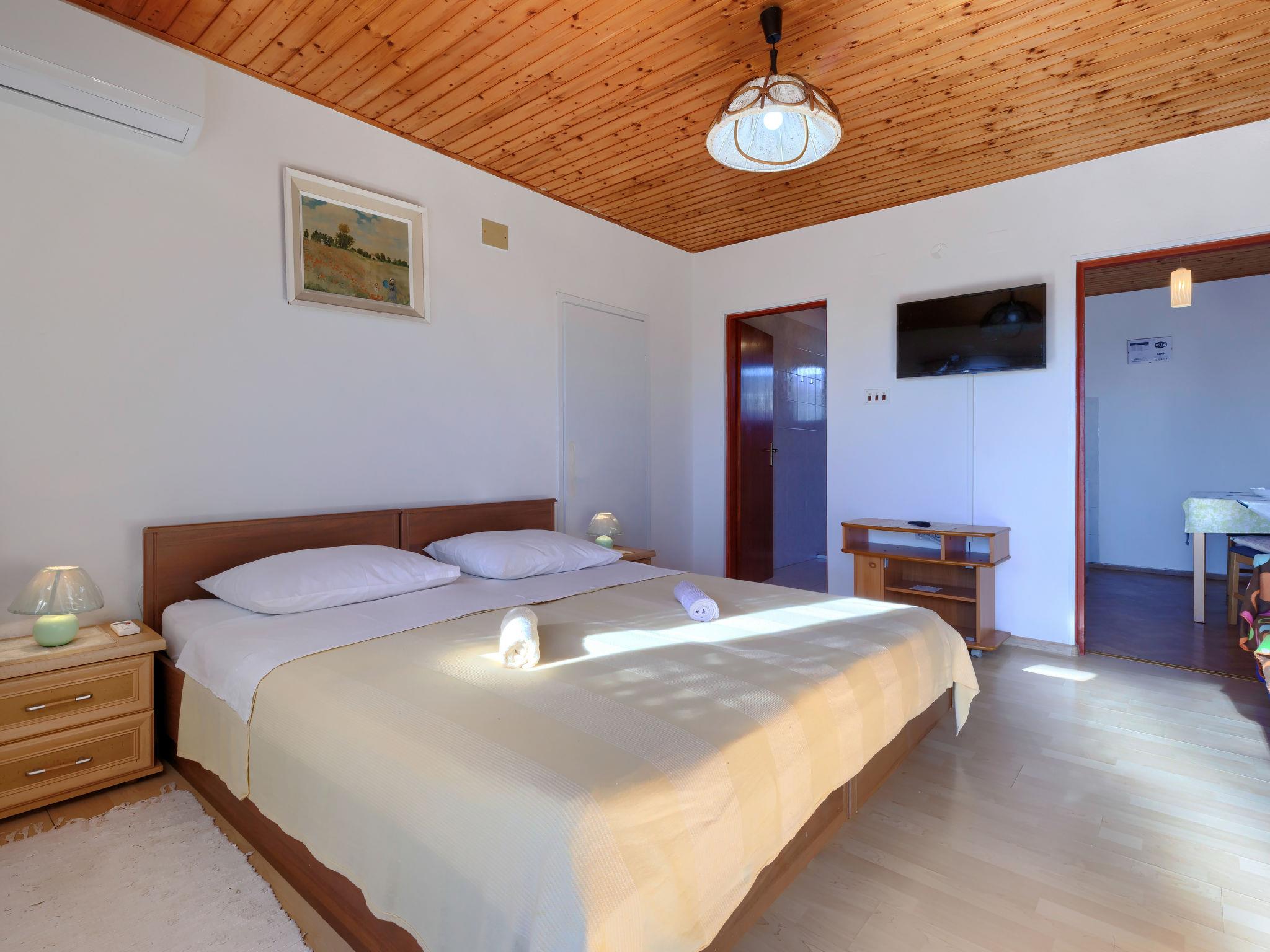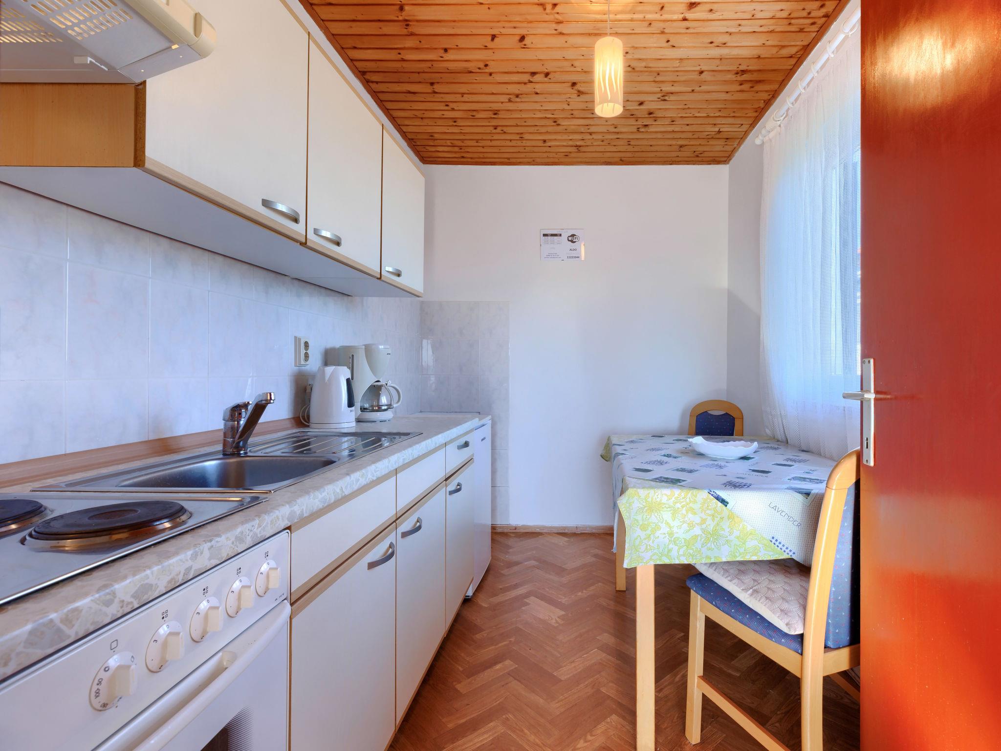 "Perkovic", 2-Zimmer-Wohnung 25 m2 im 1. Stock. Renoviert im Jahre 2016: Wohn-/Esszimmer. 1 Zimmer mit 2 Betten und Klimaanlage. Ausgang zur Terrasse. Offene Küche (4 Kochplatten, Backofen, Toaster, Wasserkocher, elektrische Kaffeemaschine). Sitzbad/WC. Klimaanlage, Warmluftheizung. Terrasse 5 m2. Terrassenmöbel. Zur Verfügung: Internet (Wireless LAN, gratis).