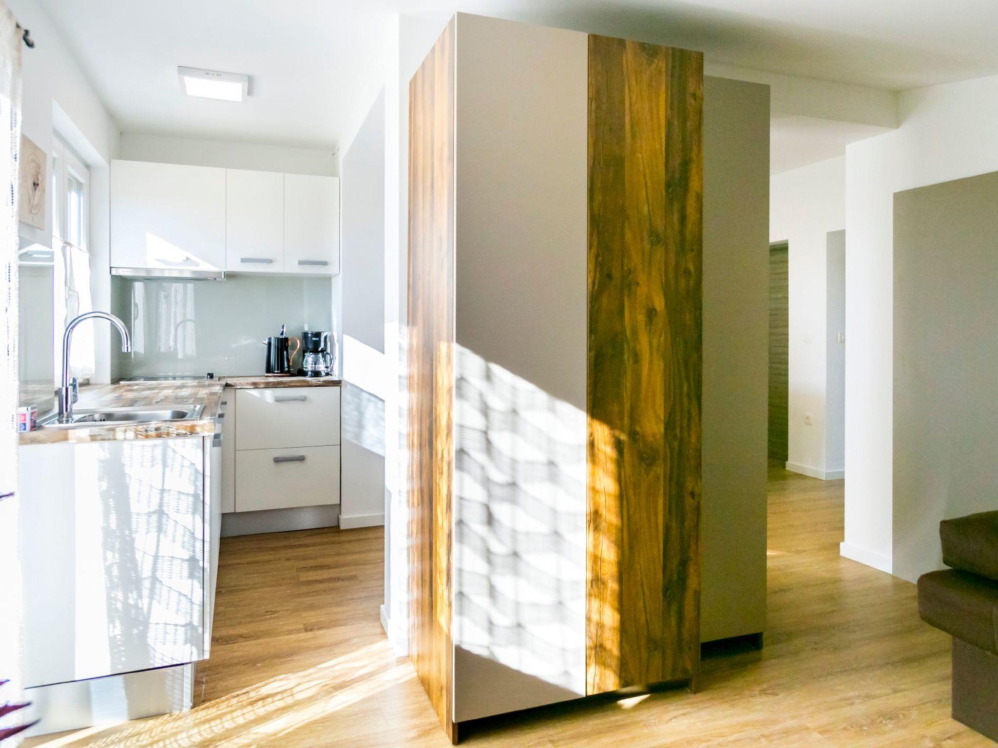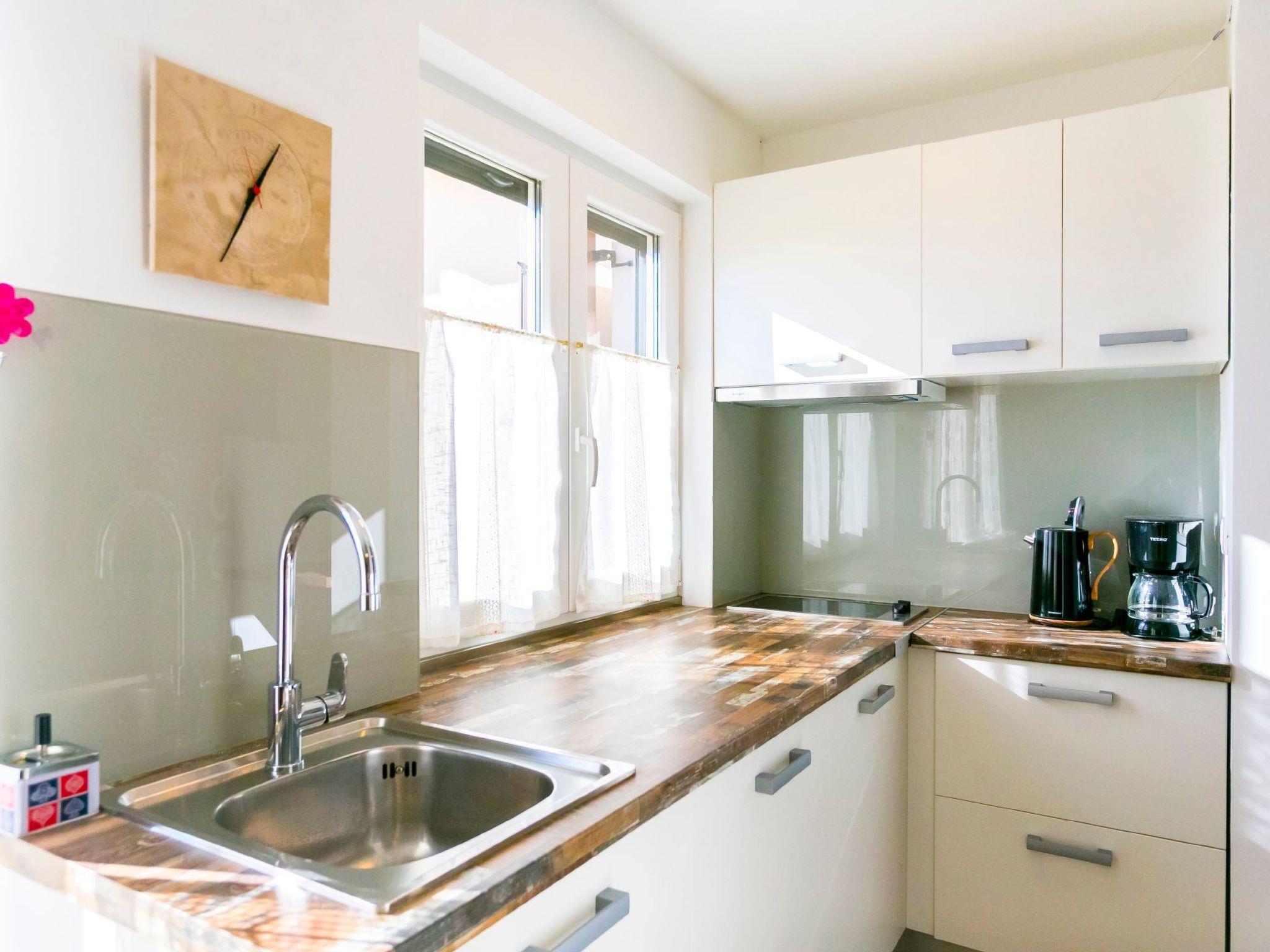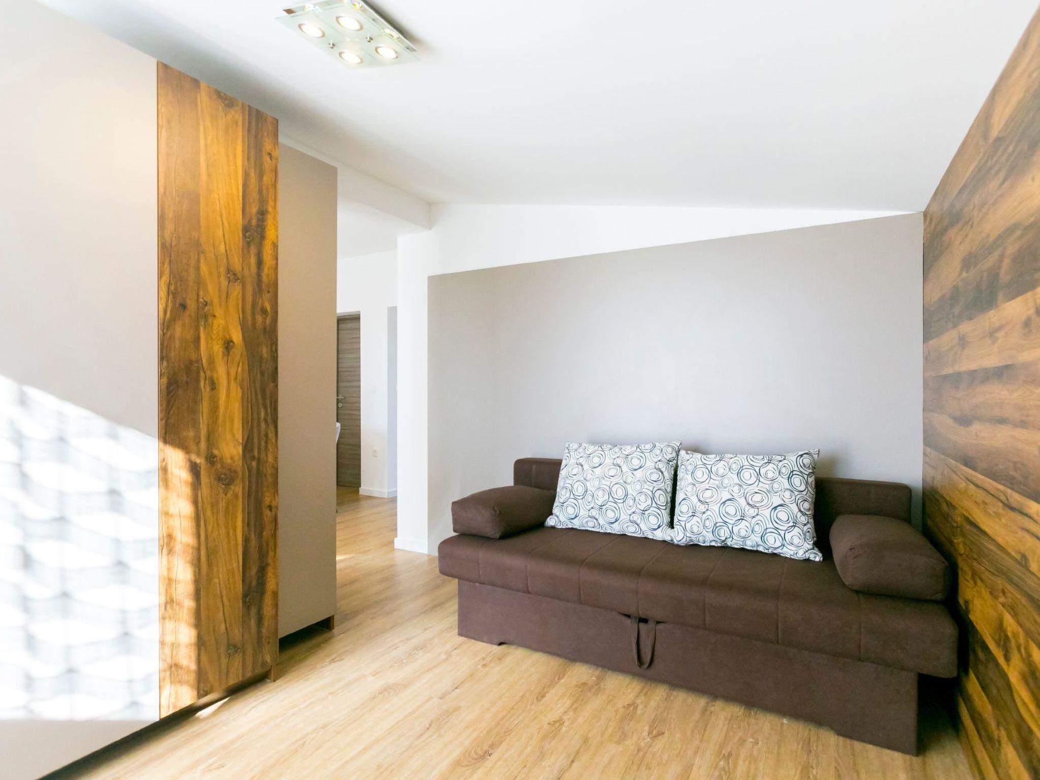 Das Innere der Wohnung ist durchdacht gestaltet, um einen komfortablen Aufenthalt zu gewährleisten. Im Wohnzimmer befindet sich ein bequemes Schlafsofa, das allen Gästen ausreichend Platz zum Ausruhen bietet. Das Schlafzimmer bietet ein gemütliches Doppelbett für eine erholsame Nachtruhe. Für Ihren Komfort ist die Wohnung mit einer Teilklimaanlage ausgestattet, die an wärmeren Tagen für ein kühles Ambiente sorgt. Die Küchenzeile ist mit den wichtigsten Geräten ausgestattet, darunter ein Kühlschrank mit Gefrierfach, ein Elektroherd und eine Filterkaffeemaschine sowie Geschirr und Besteck, so dass die Zubereitung von Mahlzeiten ein Kinderspiel ist. Außerdem haben die Gäste Zugang zu WiFi, und frische Bettwäsche und Handtücher werden bereitgestellt, um einen komfortablen Aufenthalt zu gewährleisten.