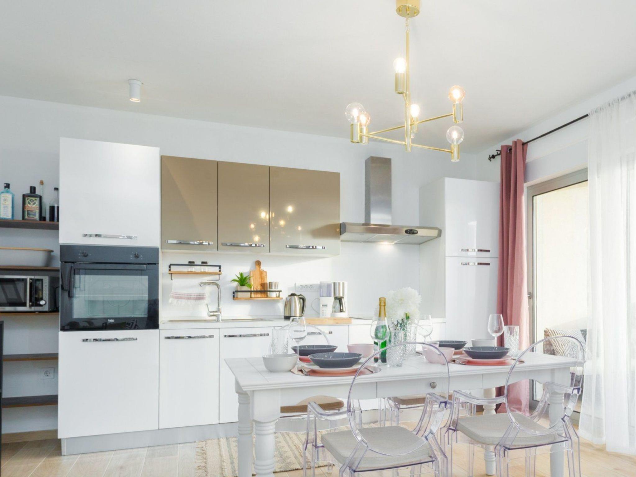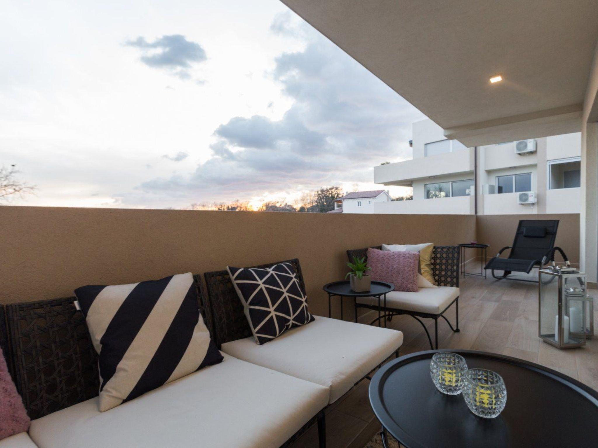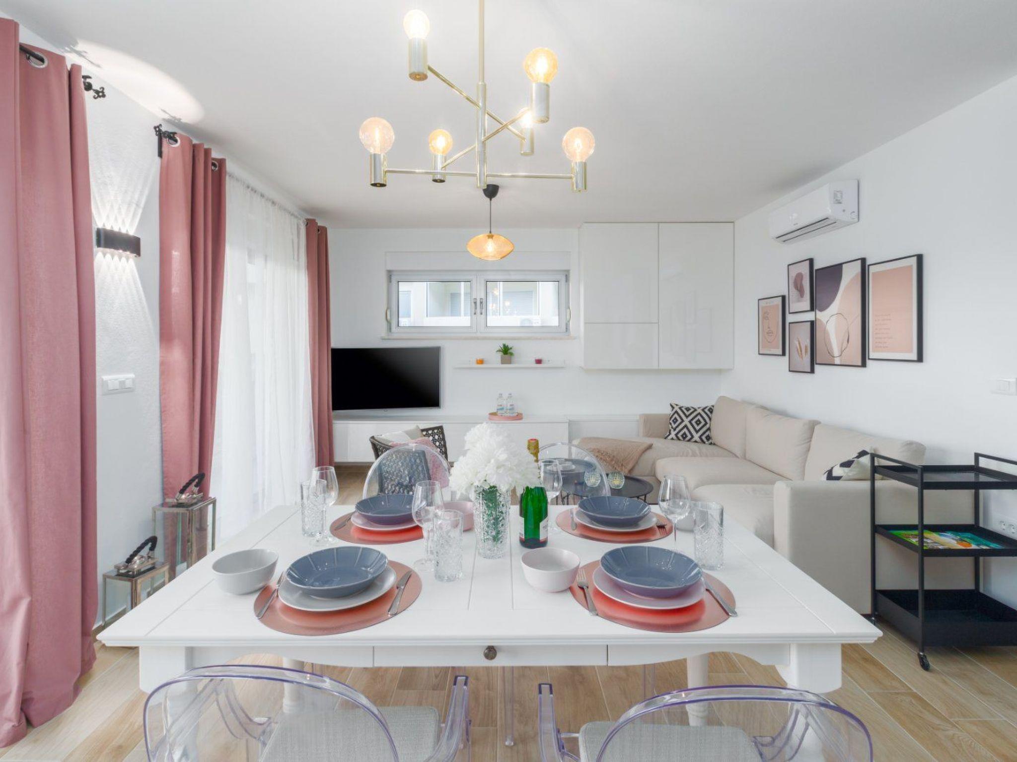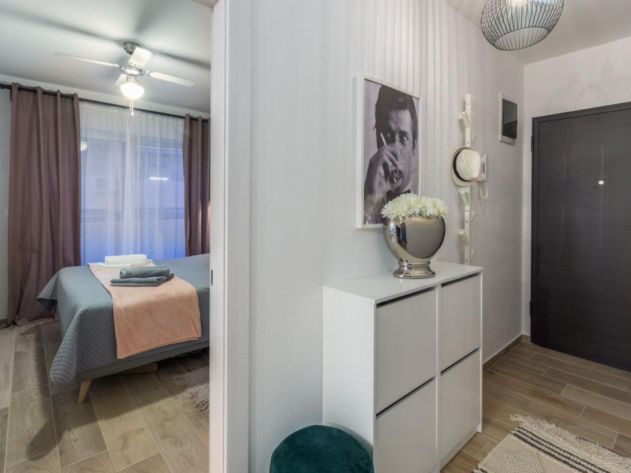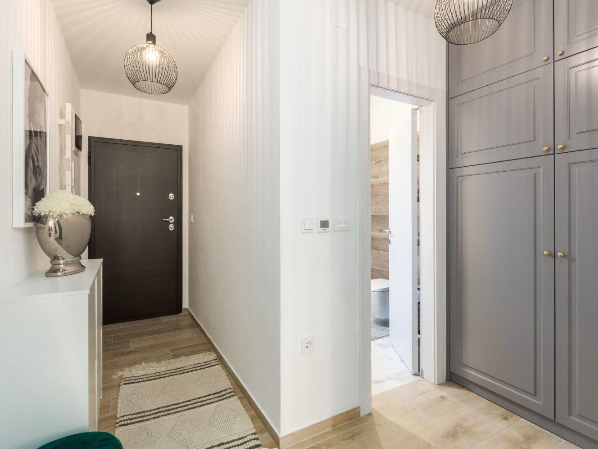 Das 54 m² große Apartment befindet sich im 1. Stock des Hauses und bietet Platz für 2 bis 4 Personen (Familien mit Kindern). Es hat klimatisiertes Wohnzimmer mit Schlafmöglichkeit, eingerichtete Küche, ein Schlafzimmer, ein Badezimmer mit Waschmaschine und einen Balkon mit Gartenmöbeln. Die Küche hat einen Kühlschrank, Elektroherd, Backofen, Geschirrspüler, eine Filterkaffeemaschine und Wasserkocher. Die Gäste haben außerdem einen TV/SAT, frei WLAN und Parkplatz. Die Schlafzimmer hat Deckenventilator. Bettwäsche und Handtücher sind inklusive. Haustiere sind nicht erlaubt.