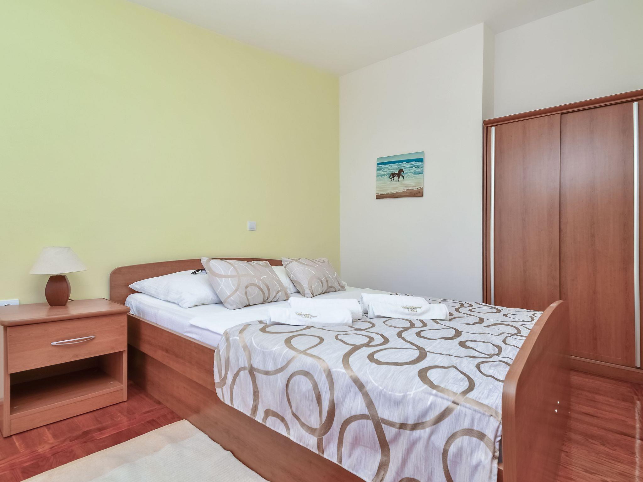 Ferienwohnung bietet Platz für 3 Gäste. Die Betten sind in Schlafzimmern, die es 1 gibt, und in Wohnzimmer, innerhalb einer Gesamtfläche von 26m2, angeordnet. Die Gäste haben einen eigenen Balkon zur Verfügung, auf der sie in warmen Sommernächten genießen können. Das Apartment bietet Meerblick. Es ist erlaubt, Speisen auf dem Gemeinschafts-Grill vorzubereiten. IM PREIS INBEGRIFFEN: Kurtaxe, Endreinigung, Parkplatz, Internet, Bügeleisen, Bügelbrett, Föhn. VERBINDLICHE ZUSÄTZLICHE KOSTEN: Aufzahlung für Kurzaufenthalte (prozentualer Zuschlag pro Nächtigungsanzahl: 30% - 1, 20% - 2, 10% - 3). UNVERBINDLICHE ZUSÄTZLICHE KOSTEN: Klimatisierung (0,50 € pro Stunde). Die Verfügbarkeit zusätzlicher Dienstleistungen in Ihrem reservierten Termin und die Preise derselben (falls nicht aufgeführt) müssen im Voraus überprüft werden. Zusätzliche Dienstleistungen die in der Zahlungsaufforderung nicht aufgeführt sind werden direkt beim Vermieter bezahlt, angenommen der Gast nutzt auch diese.