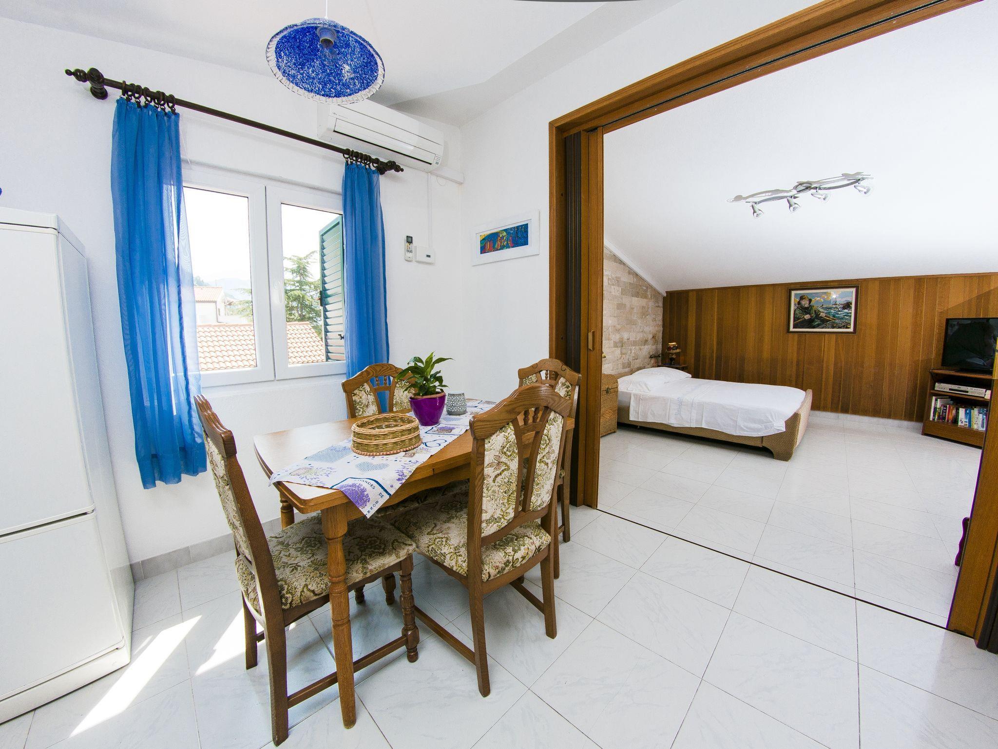 Ferienwohnung bietet Platz für 5 Gäste. Die Betten sind in Schlafzimmern, die es 2 gibt, innerhalb einer Gesamtfläche von 54m2, angeordnet. Die Gäste haben eine eigene Terrasse zur Verfügung, auf der sie in warmen Sommernächten genießen können. Das Apartment bietet Meerblick. Es ist erlaubt, Speisen auf dem Gemeinschafts-Grill vorzubereiten. IM PREIS INBEGRIFFEN: Kurtaxe, Endreinigung, Klimatisierung, Parkplatz, Garage, Internet, Kinderbett, Bügeleisen, Bügelbrett, Föhn. VERBINDLICHE ZUSÄTZLICHE KOSTEN: Aufzahlung für Kurzaufenthalte (prozentualer Zuschlag pro Nächtigungsanzahl: 30% - 1, 20% - 2, 10% - 3). Die Verfügbarkeit zusätzlicher Dienstleistungen in Ihrem reservierten Termin und die Preise derselben (falls nicht aufgeführt) müssen im Voraus überprüft werden. Zusätzliche Dienstleistungen die in der Zahlungsaufforderung nicht aufgeführt sind werden direkt beim Vermieter bezahlt, angenommen der Gast nutzt auch diese.