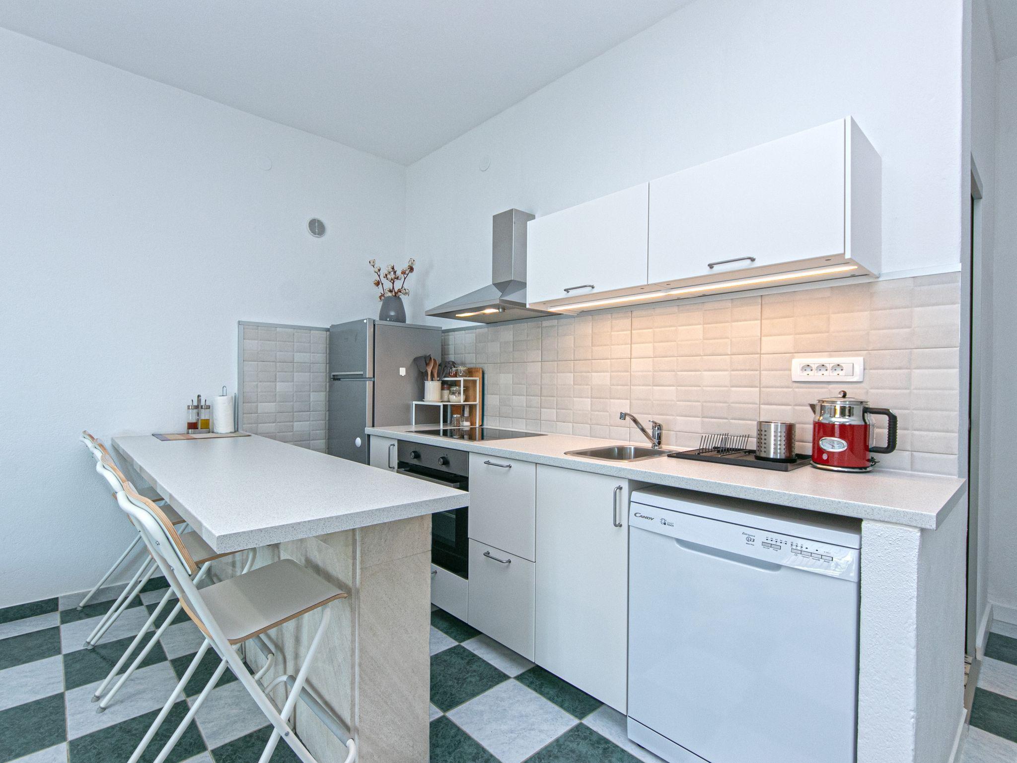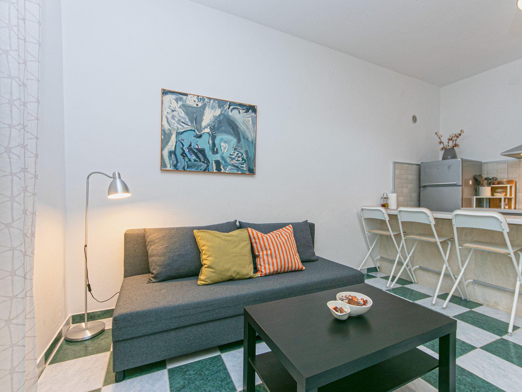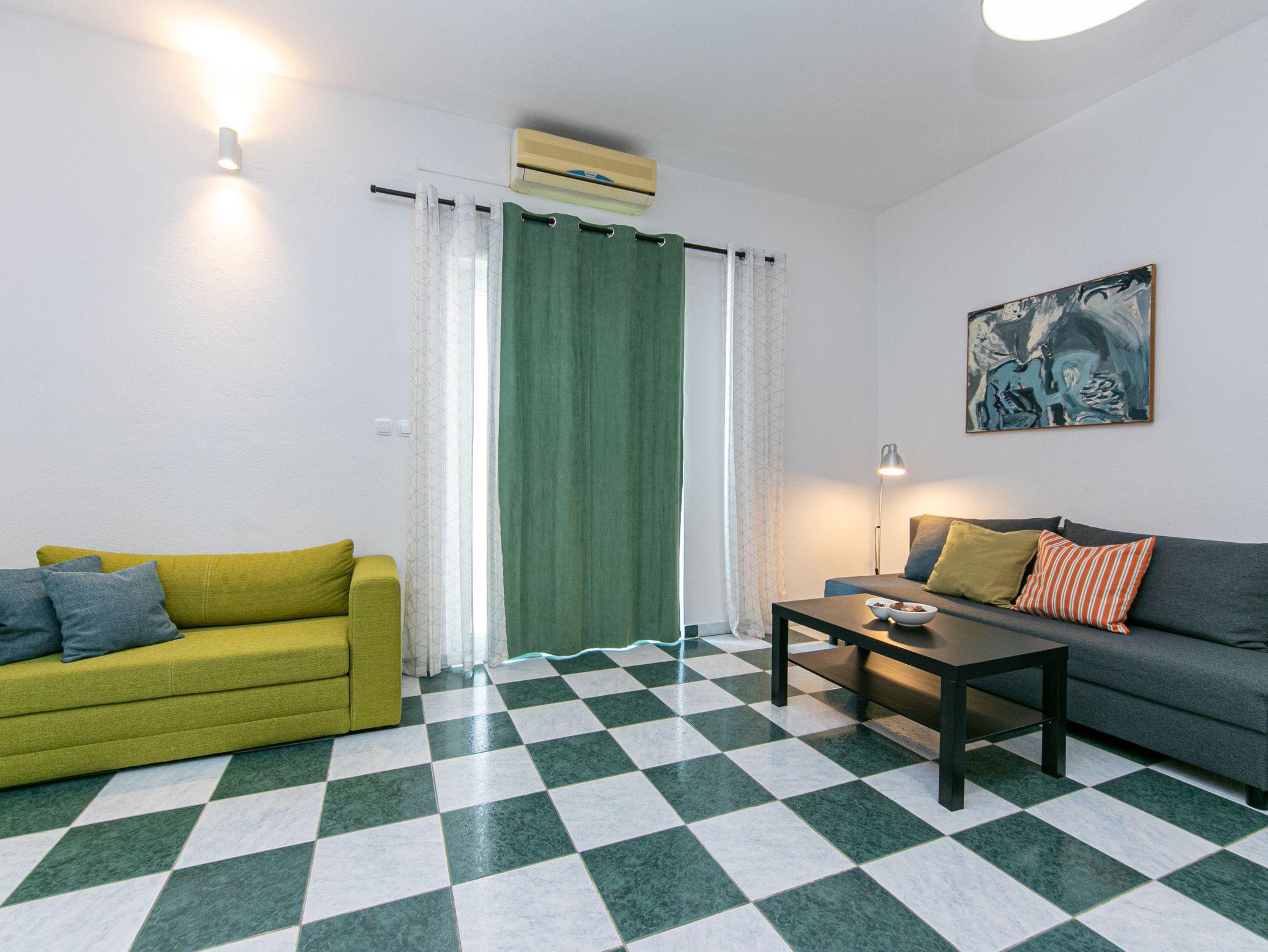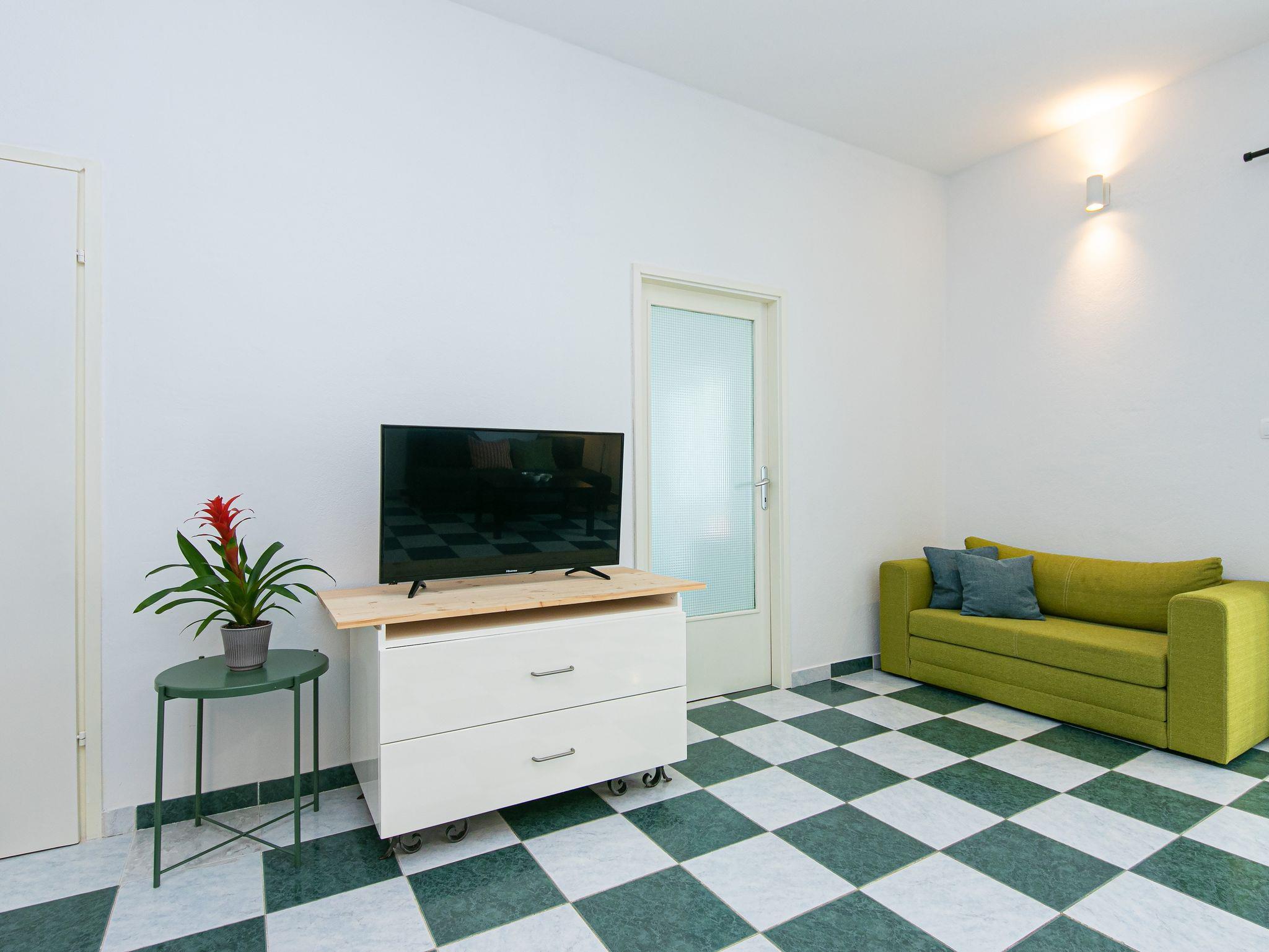 Ferienwohnung bietet Platz für 6 Gäste. Die Betten sind in Schlafzimmern, die es 2 gibt, und in Wohnzimmer, innerhalb einer Gesamtfläche von 49m2, angeordnet. Die Gäste haben eine eigene Terrasse zur Verfügung, auf der sie in warmen Sommernächten genießen können. Das Apartment bietet Meerblick. Es ist erlaubt, Speisen auf dem Gemeinschafts-Grill vorzubereiten. In der Unterkunftseinheit besteht die Möglichkeit des Mitbringens von Haustieren gegen Aufpreis. IM PREIS INBEGRIFFEN: Kurtaxe, Endreinigung, Klimatisierung, Parkplatz, Garage, Internet, Wäschewaschen, Kinderbett, Bügeleisen, Bügelbrett, Föhn, Sonnenschirm. UNVERBINDLICHE ZUSÄTZLICHE KOSTEN: Haustiere (7,00 € pro Nacht), Zusatzbett (25,00 € pro Nacht). Die Verfügbarkeit zusätzlicher Dienstleistungen in Ihrem reservierten Termin und die Preise derselben (falls nicht aufgeführt) müssen im Voraus überprüft werden. Zusätzliche Dienstleistungen die in der Zahlungsaufforderung nicht aufgeführt sind werden direkt beim Vermieter bezahlt, angenommen der Gast nutzt auch diese. Ermäßigung auf den Grundpreis: Gratistag 14=13 (bei einem Aufenthalt von 14 Tagen oder mehr erhalten Sie einen Gratistag für den Aufenthalt bis 31.12.26).
