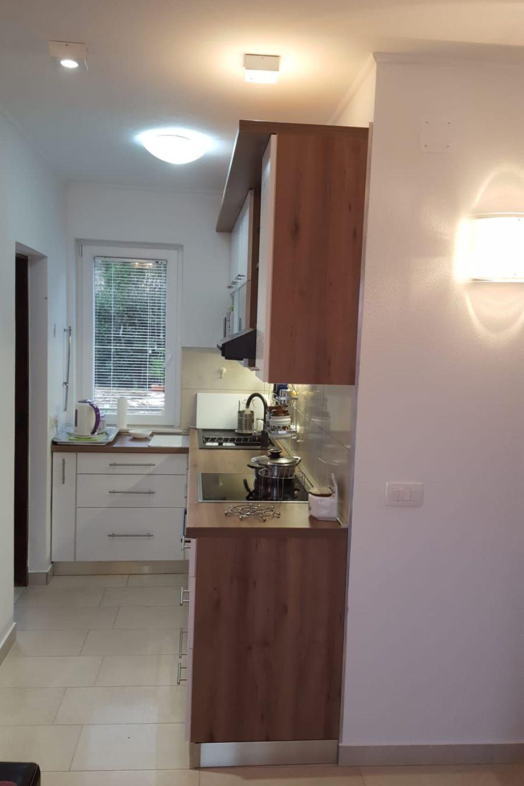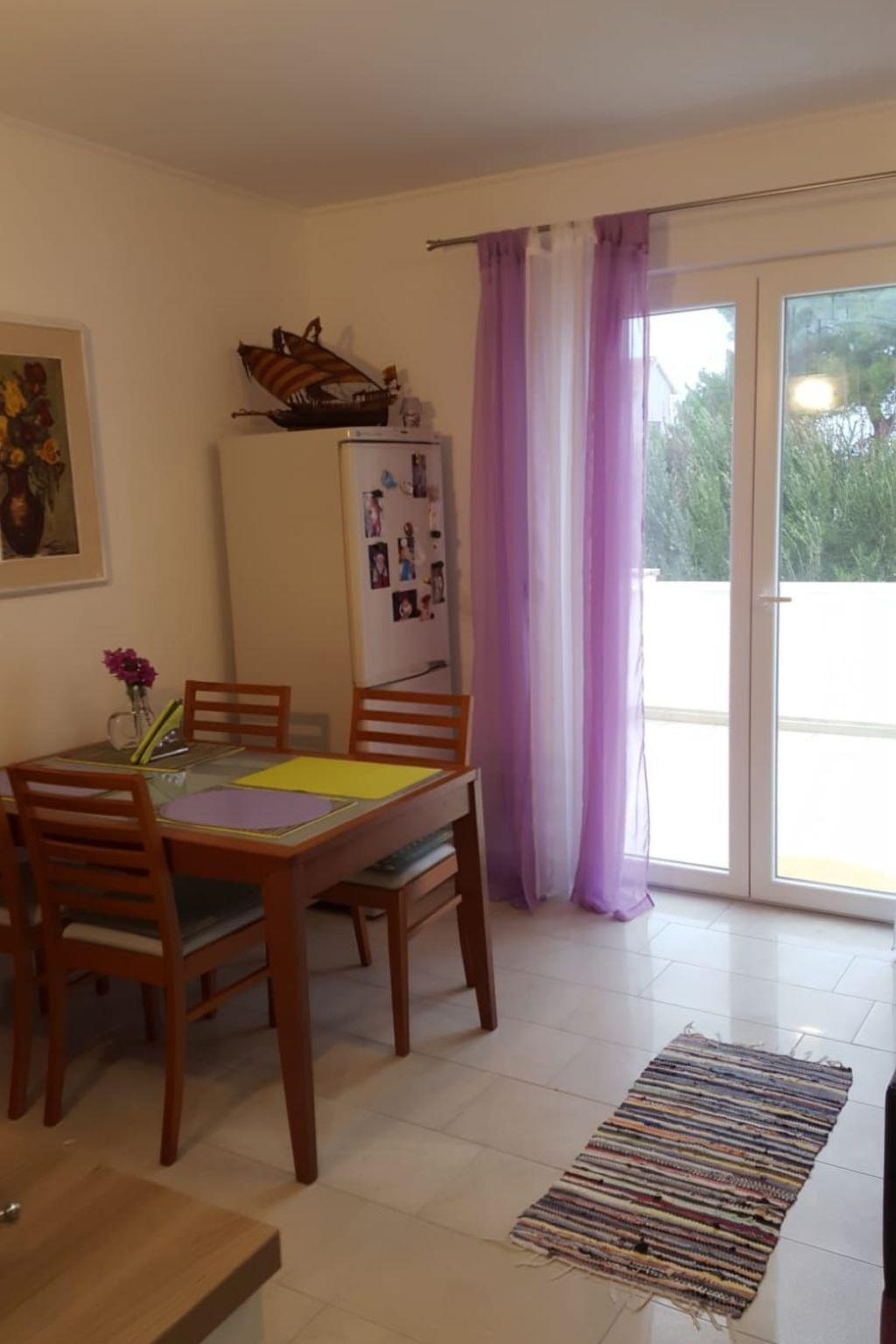 Die 50 m² große Wohnung wurde 2014 renoviert und bietet Platz für vier Personen. Sie verfügt über ein 6 m² großes Badezimmer mit Dusche, WC, Haartrockner und Waschmaschine sowie zwei Schlafzimmer. Das erste Schlafzimmer verfügt über ein Doppelbett und das zweite über ein Etagenbett für zwei Personen. Ein Kinderbett kann kostenlos zur Verfügung gestellt werden. Das Wohnzimmer mit Zugang zur Terrasse ist klimatisiert und verfügt über ein bequemes Sofa, Satellitenfernsehen, einen DVD-Player und ein Radio. Hinter der Sitzecke befindet sich ein Essplatz für vier Personen. Die Küche ist mit Herd, Backofen, Kühlschrank, Gefrierfach, Mikrowelle, Toaster, Tee- und Kaffeemaschine für die Zubereitung von Filterkaffee oder Espresso ausgestattet.