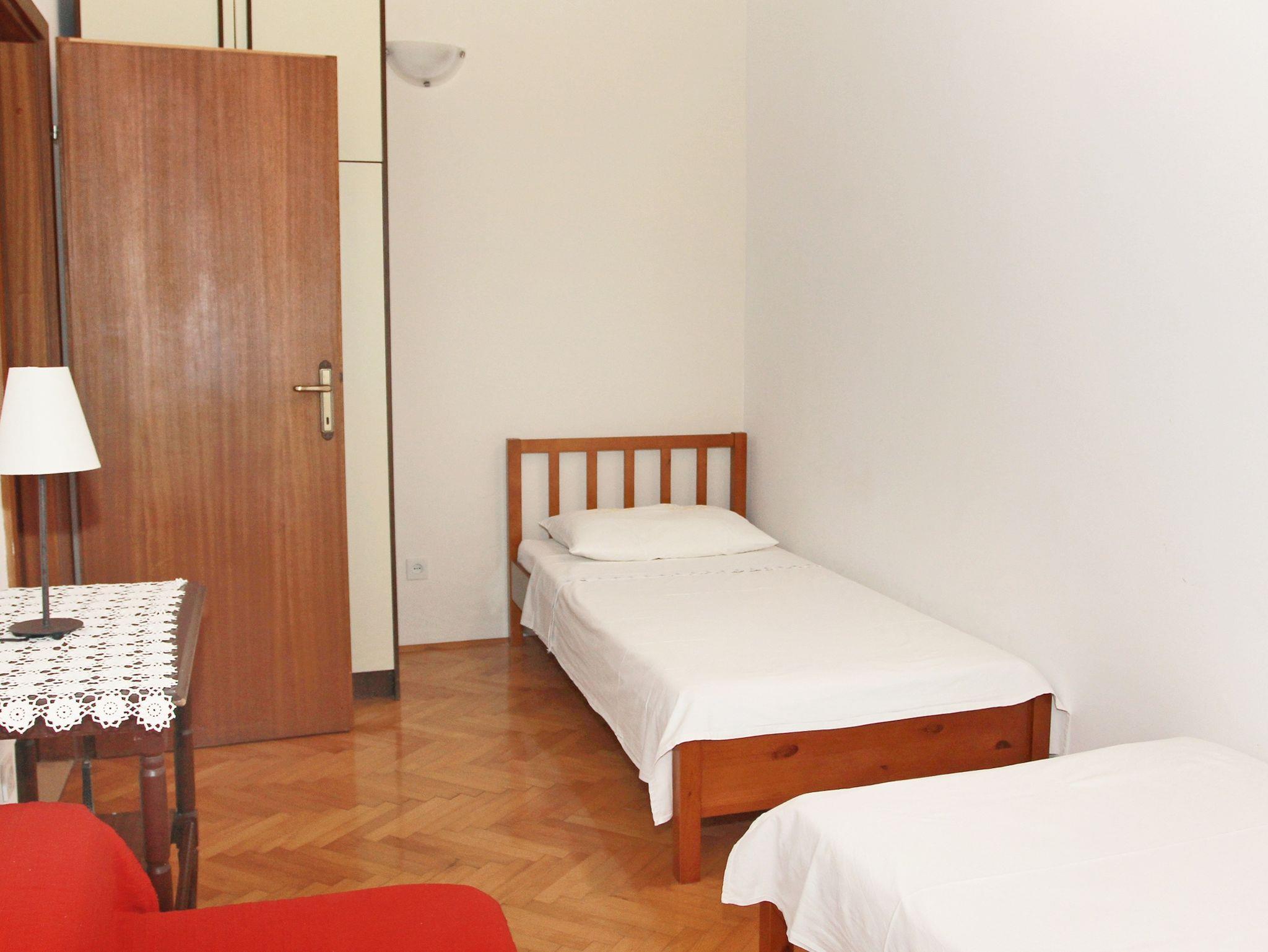 Ferienwohnung bietet Platz für 5 Gäste. Die Betten sind in Schlafzimmern, die es 3 gibt, innerhalb einer Gesamtfläche von 86m2, angeordnet. Die Gäste haben eine eigene Terrasse zur Verfügung, auf der sie in warmen Sommernächten genießen können. Das Apartment bietet Meerblick. Es ist erlaubt, Speisen auf dem Gemeinschafts-Grill vorzubereiten. IM PREIS INBEGRIFFEN: Kurtaxe, Endreinigung, Klimatisierung, Parkplatz, Internet, Kinderbett, Bügeleisen, Bügelbrett, Föhn. VERBINDLICHE ZUSÄTZLICHE KOSTEN: Aufzahlung für Kurzaufenthalte (prozentualer Zuschlag pro Nächtigungsanzahl: 30% - 1, 20% - 2, 10% - 3). Die Verfügbarkeit zusätzlicher Dienstleistungen in Ihrem reservierten Termin und die Preise derselben (falls nicht aufgeführt) müssen im Voraus überprüft werden. Zusätzliche Dienstleistungen die in der Zahlungsaufforderung nicht aufgeführt sind werden direkt beim Vermieter bezahlt, angenommen der Gast nutzt auch diese.