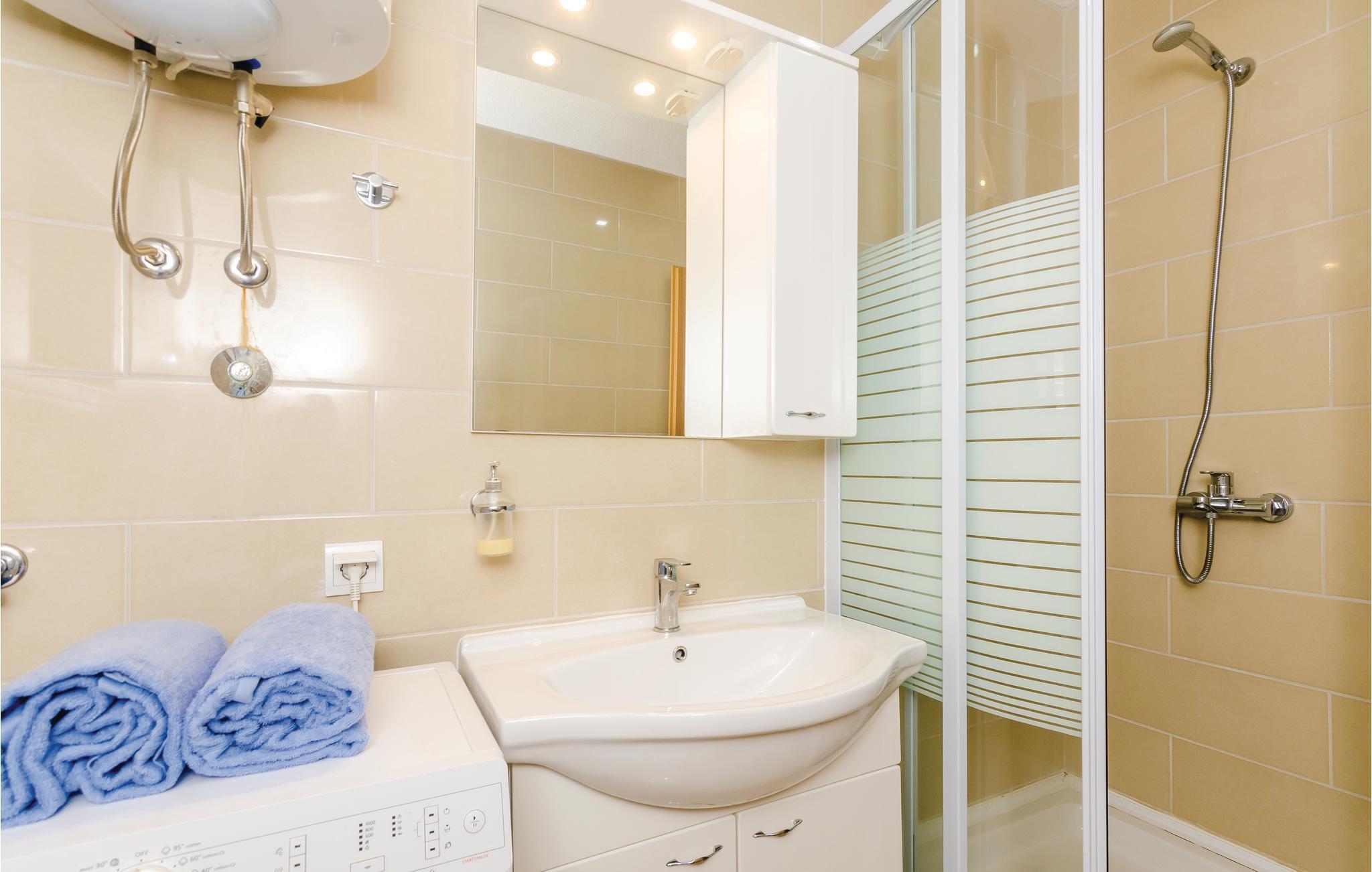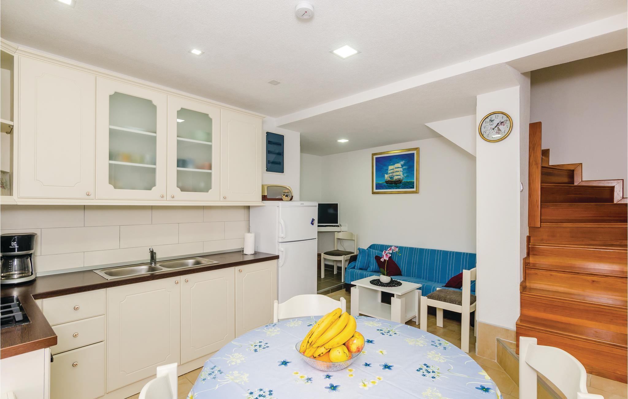 Diese einfach eingerichtete Doppelhaushälfte in Babino Polje, auf der Insel Mljet, ist der richtige Ort für einen erholsamen Urlaub. Auf seinen zwei Etagen bietet es viel Platz für eine größere Familien. Zur Verfügung stehen zwei Terrassen, die überdachte Terrasse hat einen Grill und die andere beherbergt den Swimmingpool. Erleben Sie die Schönheit der unberührten Natur Nationalparks Mljet auf der Insel. Zur Insel Mljet kommen Sie mit der Fähre von Prapratno auf der Halbinsel Peljesac. Eine schnelle Überfahrt ist auch von Dubrovnik möglich. Zwischen dem Haus und der Poolterrasse verläuft die Zufahrt zum Nachbarhaus.