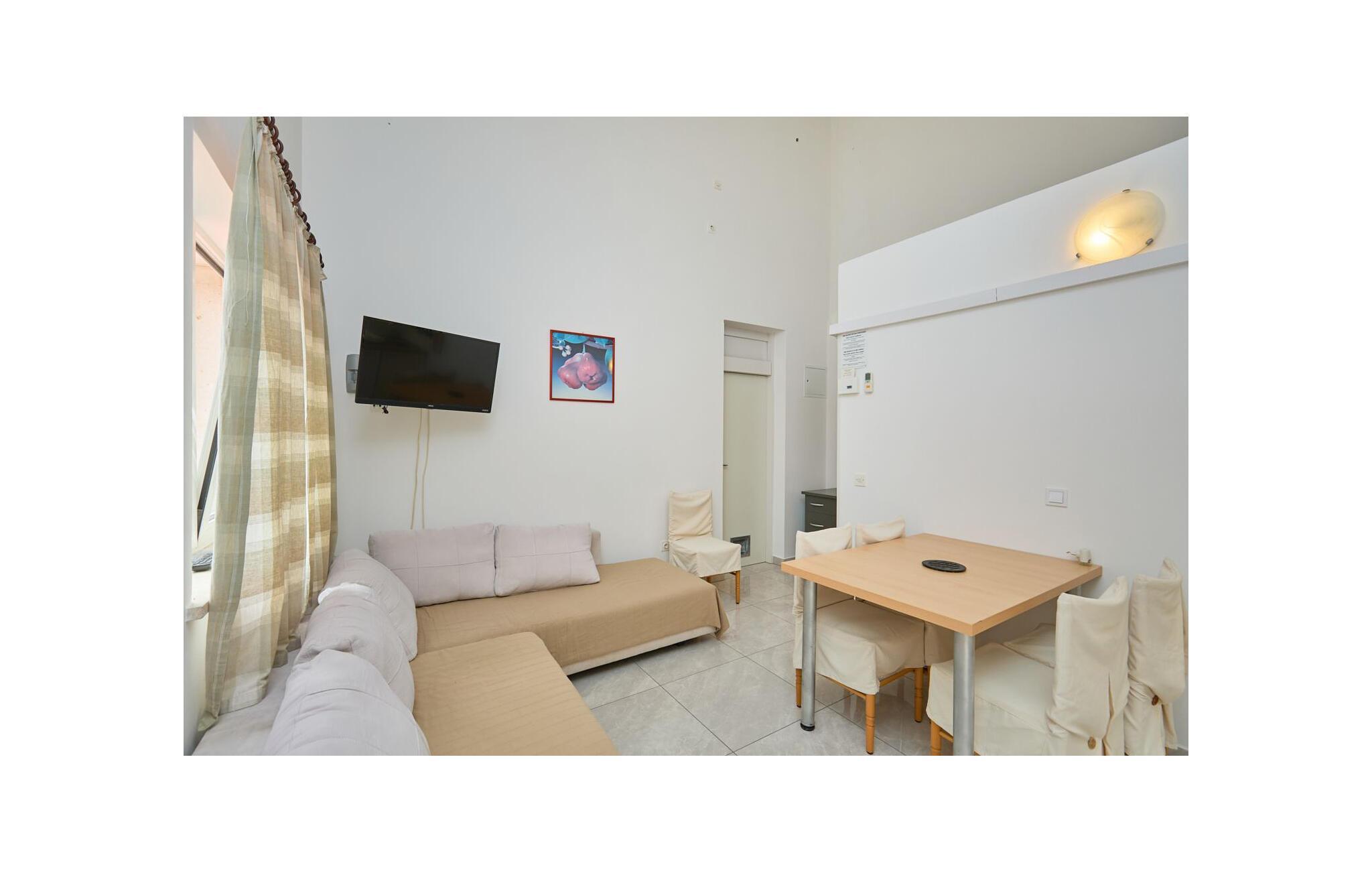 Kommen Sie in diese schöne Ferienunterkunft, um von hier aus einen wunderbaren Mittelmeer-Urlaub zu erleben. Die Wohnung hat ein Schlafzimmer und ein Wohnzimmer mit Klappcouch zum Schlafen. Sie haben einen Balkon, von der aus Sie das Meer sehen können. Genießen Sie Ihren morgendlichen Kaffee und den wunderbaren Ausblick oder erfreuen Sie sich am Abend des farbenprächtigen Schauspiels der Sonnenuntergänge. Die Terrasse, die Sie von der Küche aus erreichen, bietet ein schattiges Plätzchen mit grüner Belaubung.