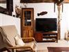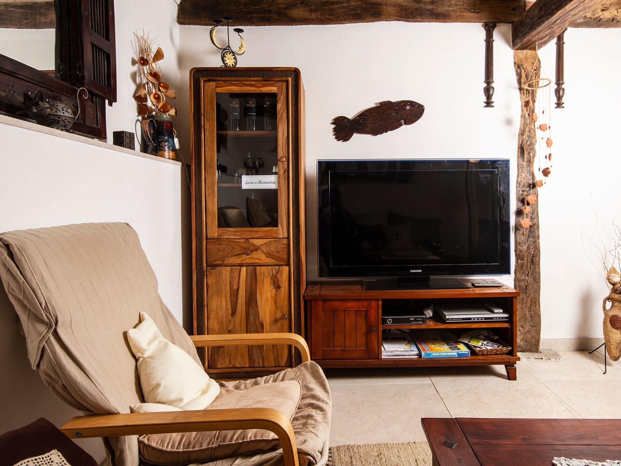 – Wohnzimmer mit Kaminofen, Smart-TV und Stereoanlage