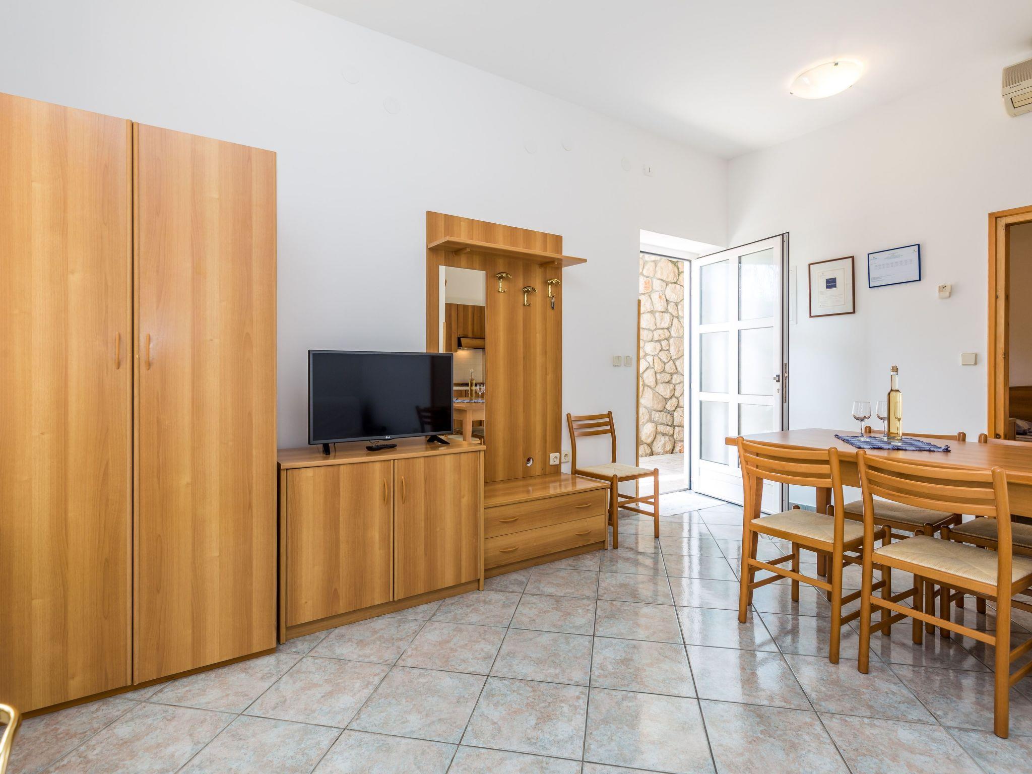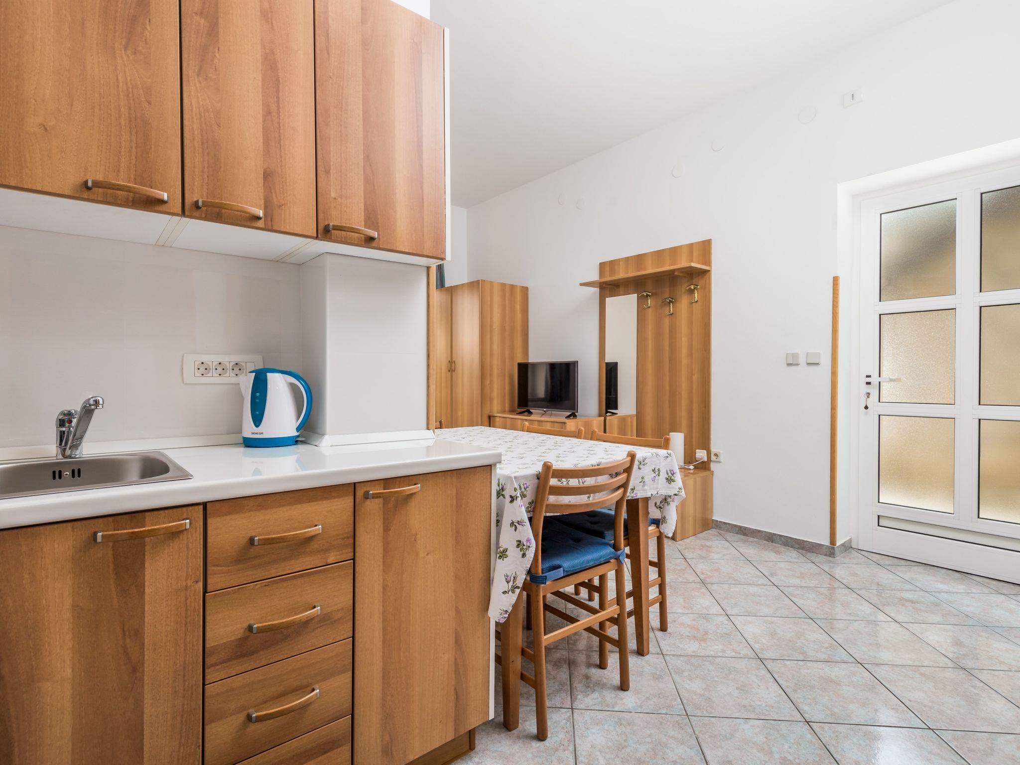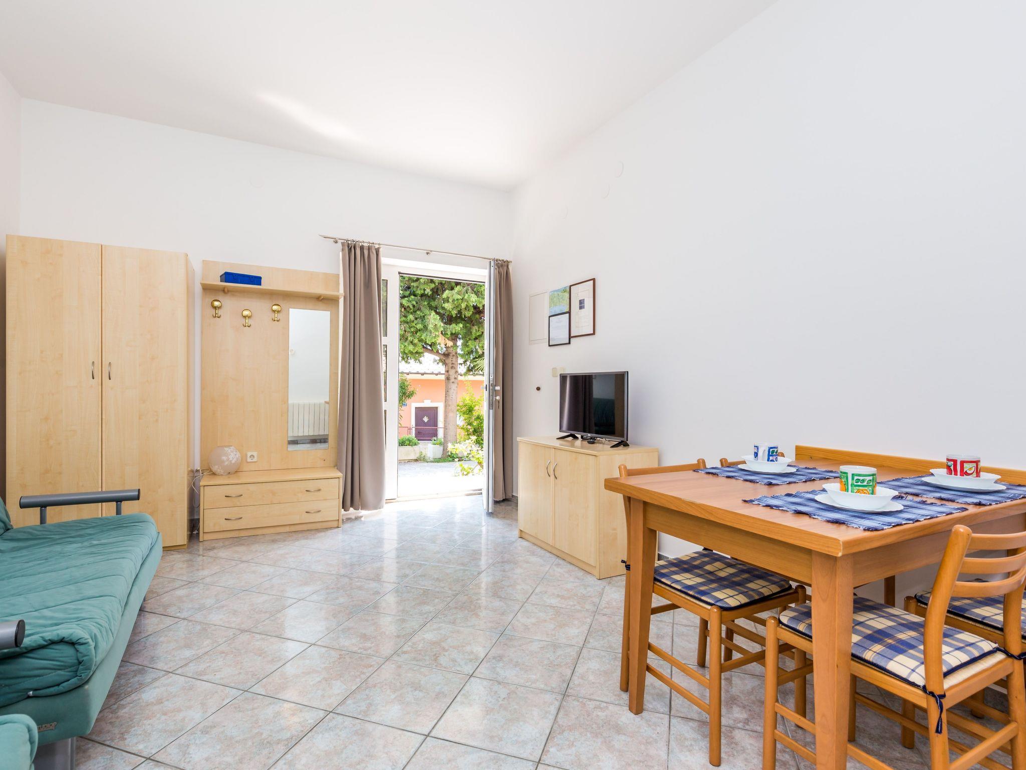 Vor der Wohnung steht eine kleine Terrasse mit Tisch zur Verfügung.