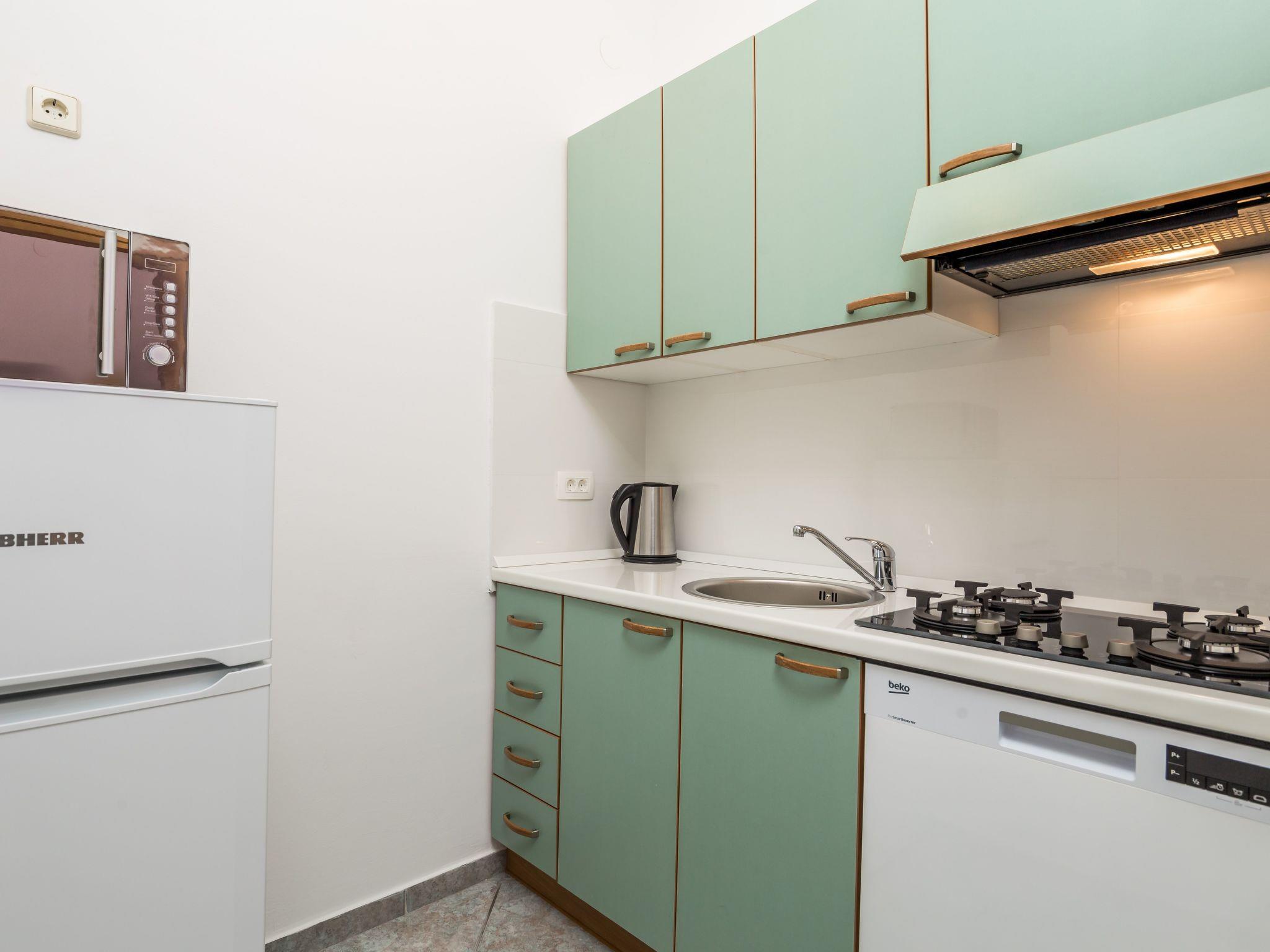Die Ferienwohnung liegt im Erdgeschoss und bietet eine Wohnfläche von 36m2. Sie verfügt über ein Schlafzimmer mit einem Doppelbett sowie drei Zusatzbetten im Wohnzimmer. Im Wohnbereich steht auch ein Esstisch mit Stühlen bereit. Die Küche ist komplett ausgestattet mit Gasherd, Herd, Kaffeemaschine, Kühlschrank, Mikrowelle und Toaster. Das Badezimmer ist mit einer Wanne eingerichtet.