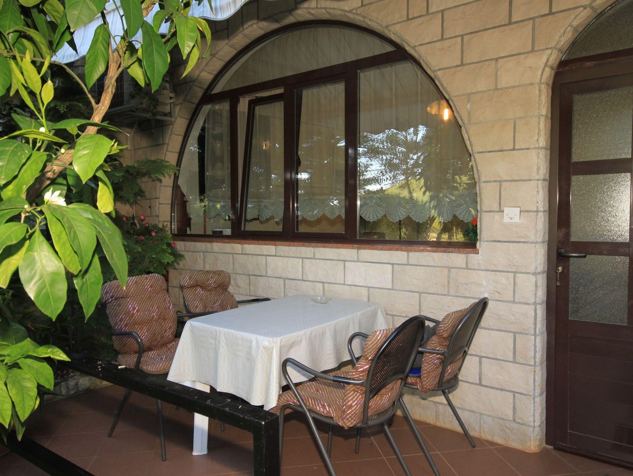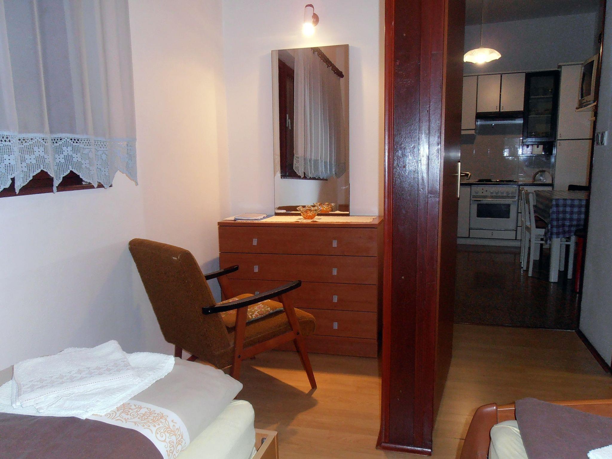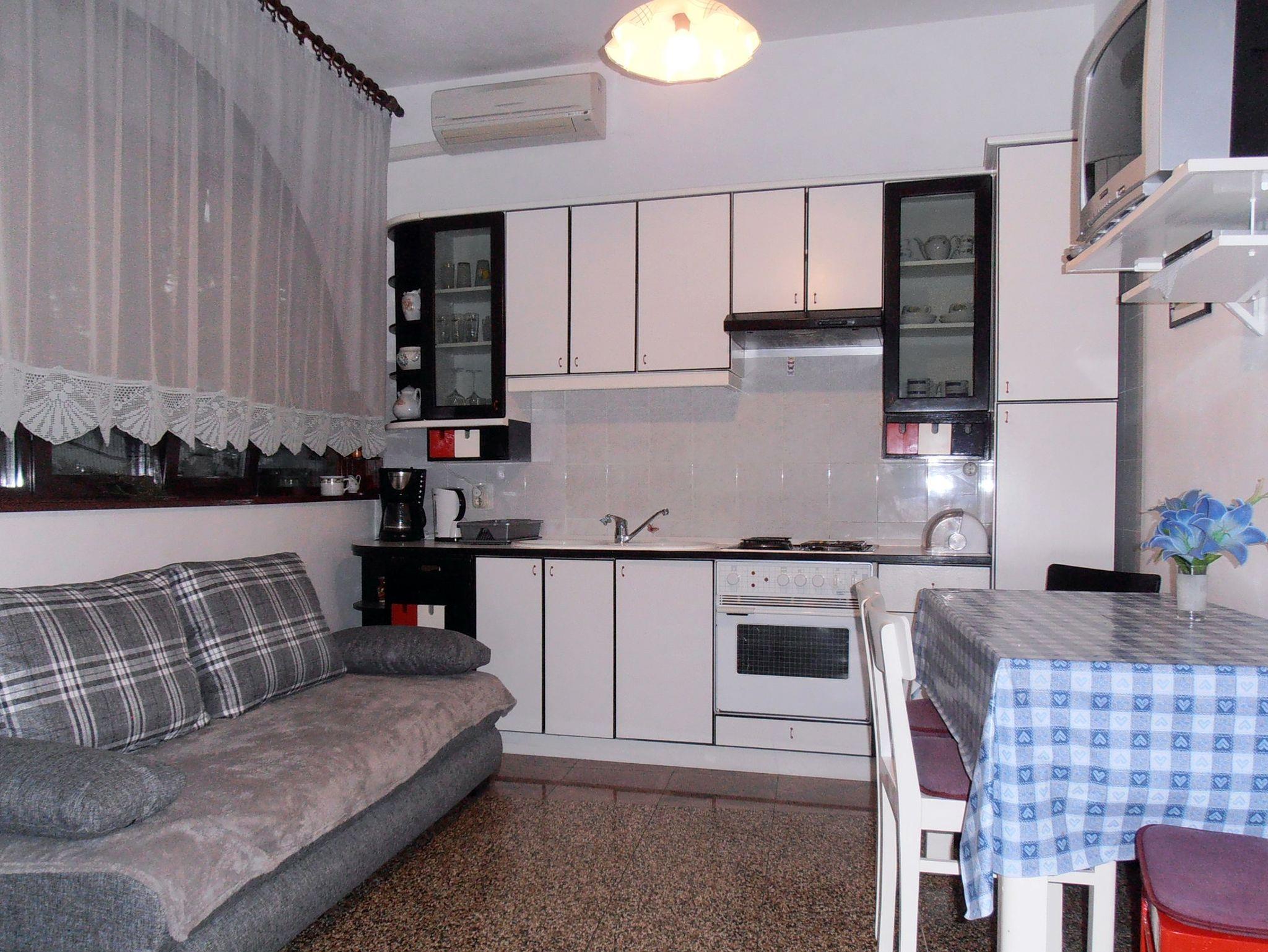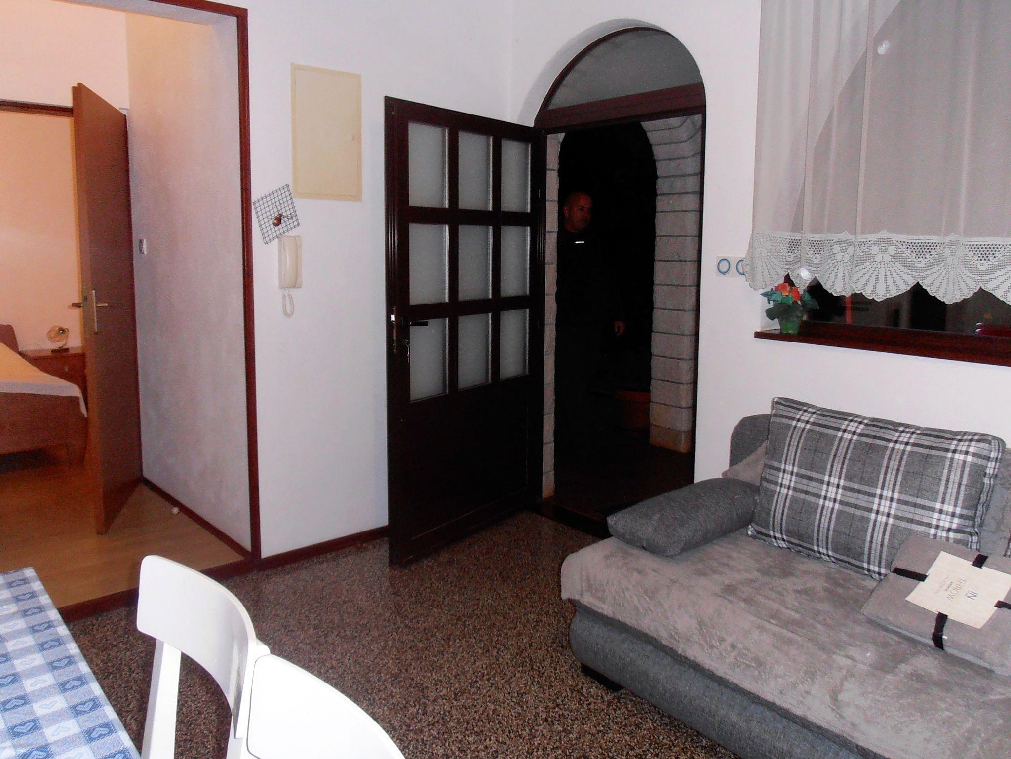 Ferienwohnung bietet Platz für 4 Gäste. Die Betten sind in Schlafzimmern, die es 1 gibt, und in Esszimmer, innerhalb einer Gesamtfläche von 32m2, angeordnet. Die Gäste haben eine eigene Terrasse zur Verfügung, auf der sie in warmen Sommernächten genießen können. Das Apartment bietet Meerblick. Es ist erlaubt, Speisen auf dem Gemeinschafts-Grill vorzubereiten. In der Unterkunftseinheit besteht die Möglichkeit des Mitbringens von Haustieren gegen Aufpreis. IM PREIS INBEGRIFFEN: Kurtaxe, Endreinigung, Klimatisierung, Parkplatz, Internet, Bügeleisen, Bügelbrett, Föhn. VERBINDLICHE ZUSÄTZLICHE KOSTEN: Aufzahlung für Kurzaufenthalte (prozentualer Zuschlag pro Nächtigungsanzahl: 30% - 1, 20% - 2, 10% - 3). UNVERBINDLICHE ZUSÄTZLICHE KOSTEN: Wäschewaschen (7,00 € Waschen), Haustiere (6,00 € pro Nacht), Zusatzbett (10,00 € pro Nacht). Die Verfügbarkeit zusätzlicher Dienstleistungen in Ihrem reservierten Termin und die Preise derselben (falls nicht aufgeführt) müssen im Voraus überprüft werden. Zusätzliche Dienstleistungen die in der Zahlungsaufforderung nicht aufgeführt sind werden direkt beim Vermieter bezahlt, angenommen der Gast nutzt auch diese.