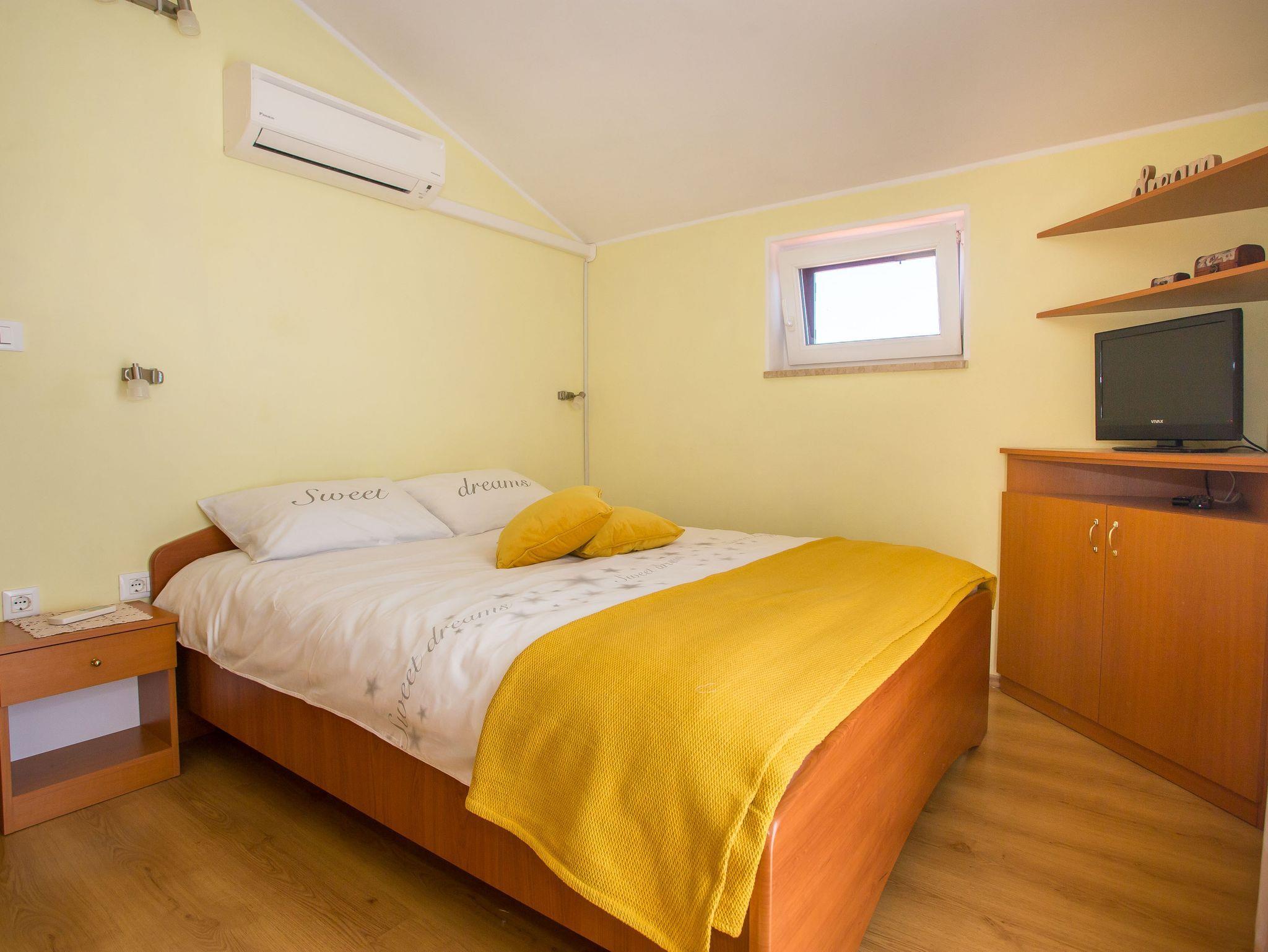 Haus bietet Platz für 5 Gäste. Die Betten sind in Schlafzimmern, die es 3 gibt, innerhalb einer Gesamtfläche von 61m2, angeordnet. Die Gäste haben eine eigene Terrasse zur Verfügung, auf der sie in warmen Sommernächten genießen können. Das Haus bietet Meerblick. Für vollen Genuss und Entspannung gibt es einen privaten Grill für Gäste dieser Unterkunft. Während ihres Aufenthalts können sich Gäste im privaten Schwimmbad entspannen. Räume der gebuchten Unterkunftseinheit werden nicht in eine Ganze verbunden. IM PREIS INBEGRIFFEN: Kurtaxe, Endreinigung, Klimatisierung, Pool, Parkplatz, Internet, Wäschewaschen, Bügeleisen, Bügelbrett, Föhn. Die Verfügbarkeit zusätzlicher Dienstleistungen in Ihrem reservierten Termin und die Preise derselben (falls nicht aufgeführt) müssen im Voraus überprüft werden. Zusätzliche Dienstleistungen die in der Zahlungsaufforderung nicht aufgeführt sind werden direkt beim Vermieter bezahlt, angenommen der Gast nutzt auch diese.